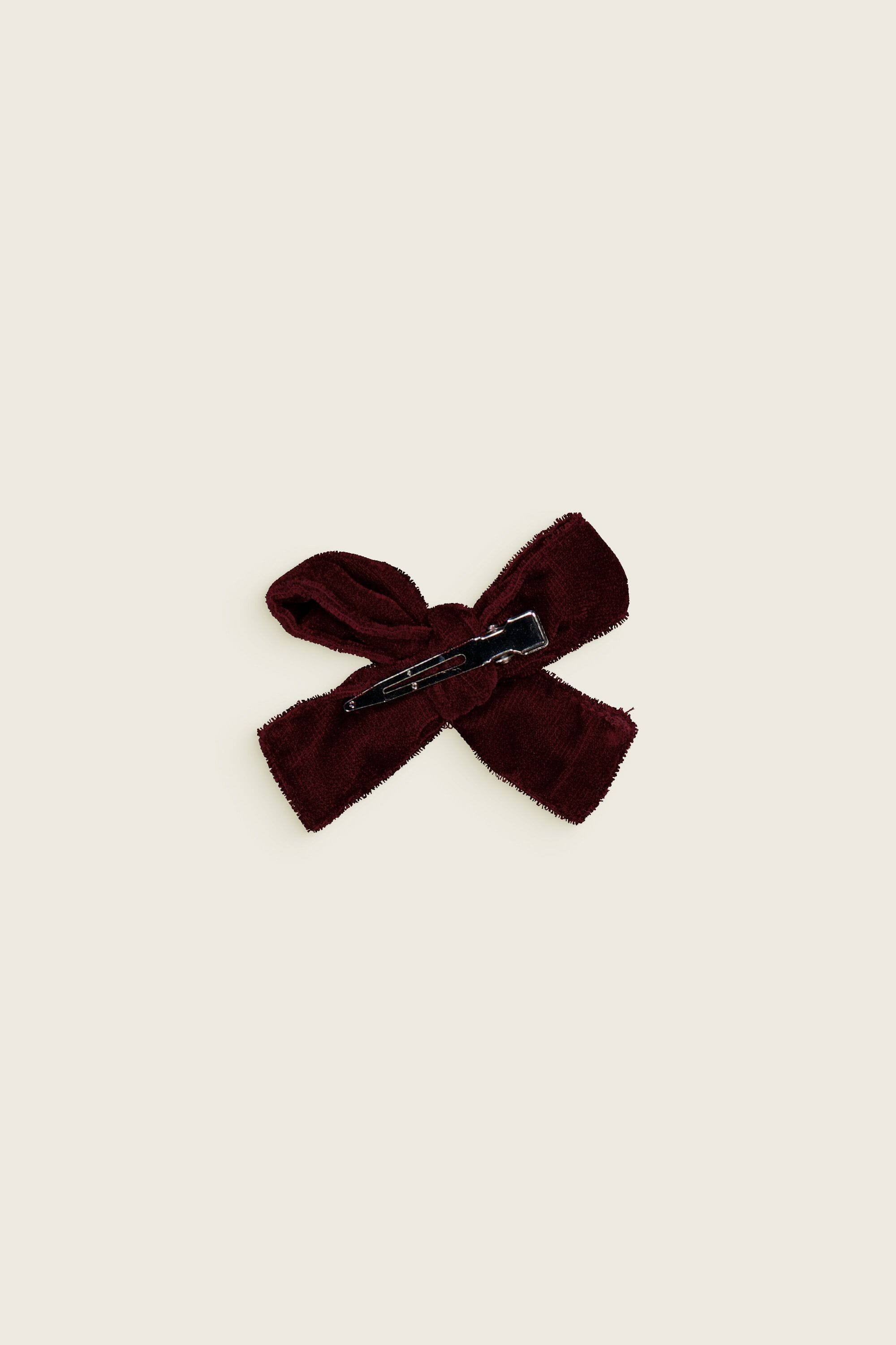 This hair clip is available in our exclusive Darling, Amor, Sweet Heart & Lovely block prints, in Blue or Blush color, in Burgundy velvet and in Black burn out velvet.