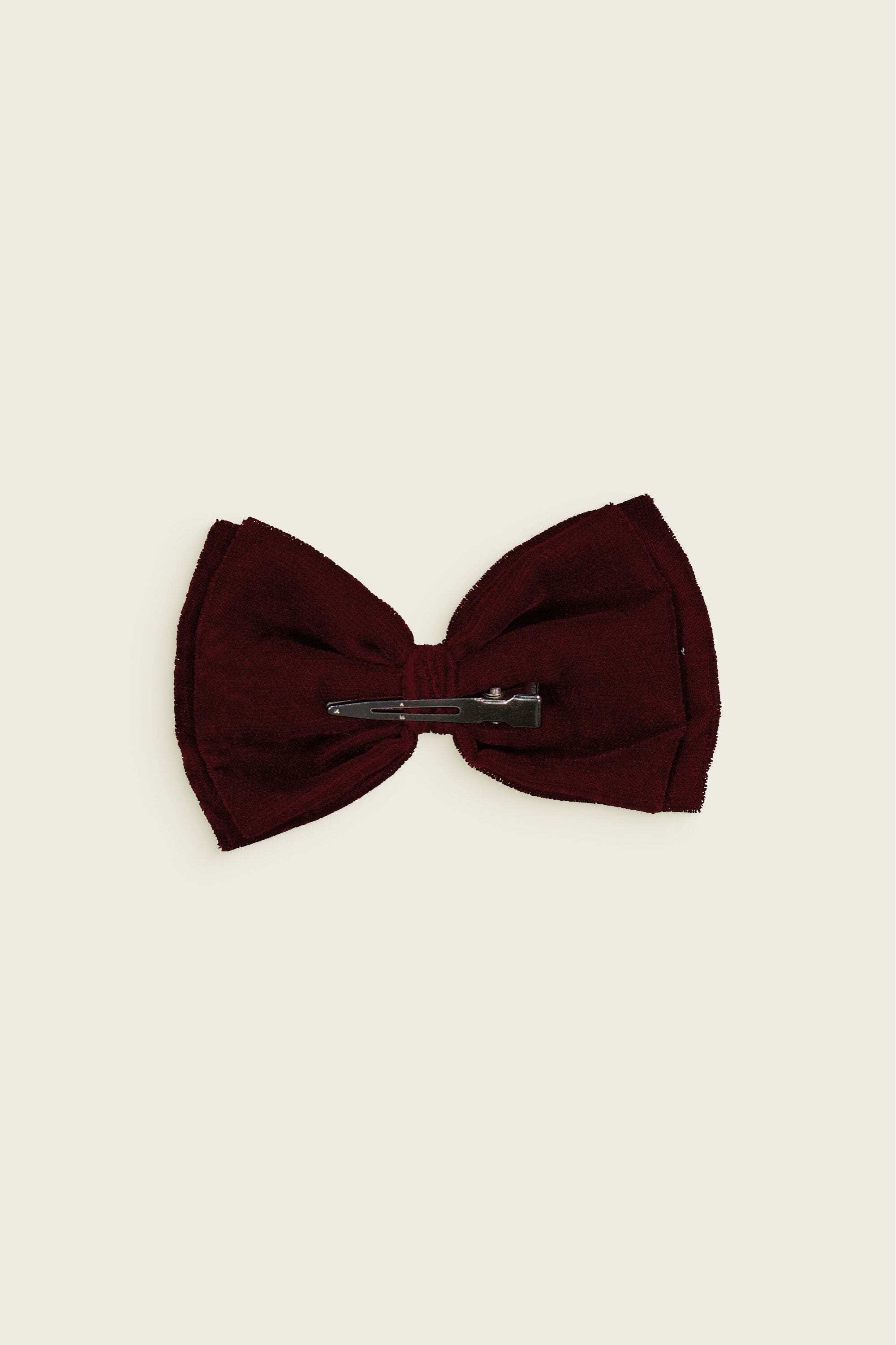 This hair clip is available in our exclusive Darling, Amor, Sweet Heart & Lovely block prints, in Blue or Blush color, in Burgundy velvet and in Black burn out velvet.
