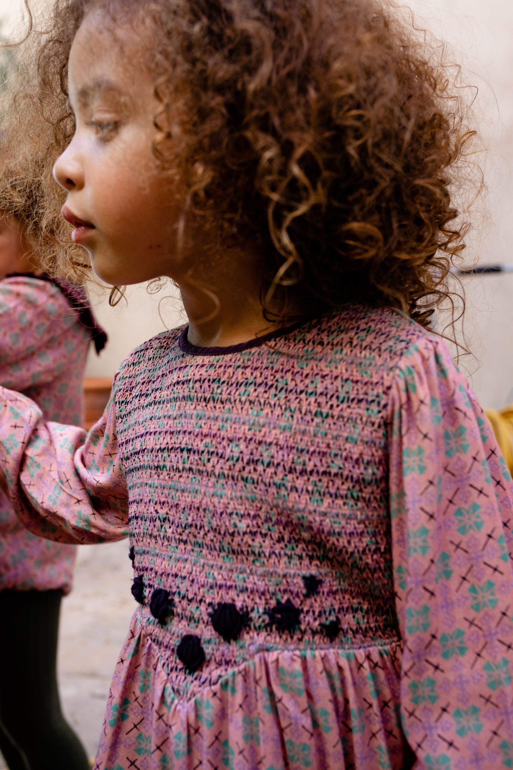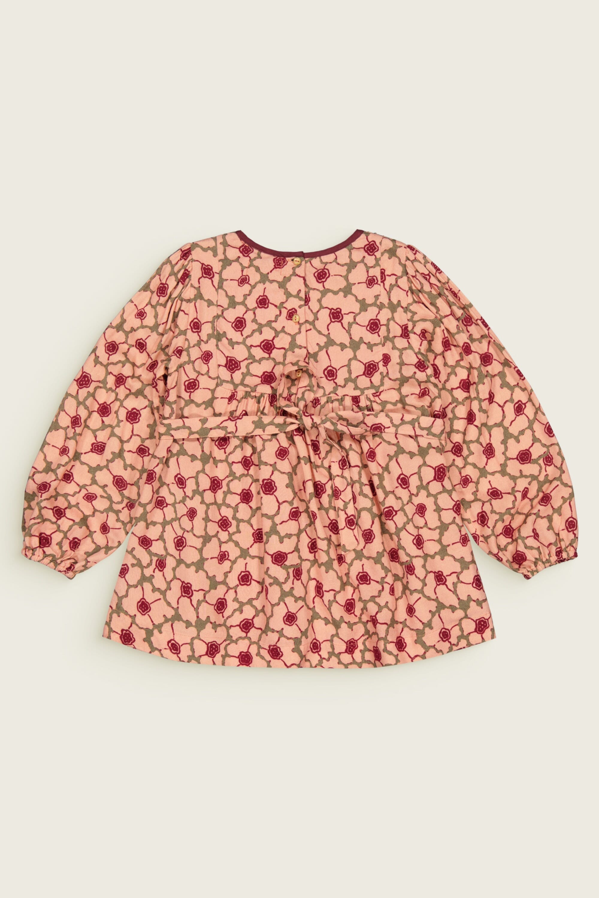 - Blouse/Short dress, 100% ECOVERO® Viscose, Blockprint, Plain and contrasted lining in organic cotton voile, Fully smocked on the front, Hand embroideries, Long elasticated sleeves, Belt and golden buttons at the back.