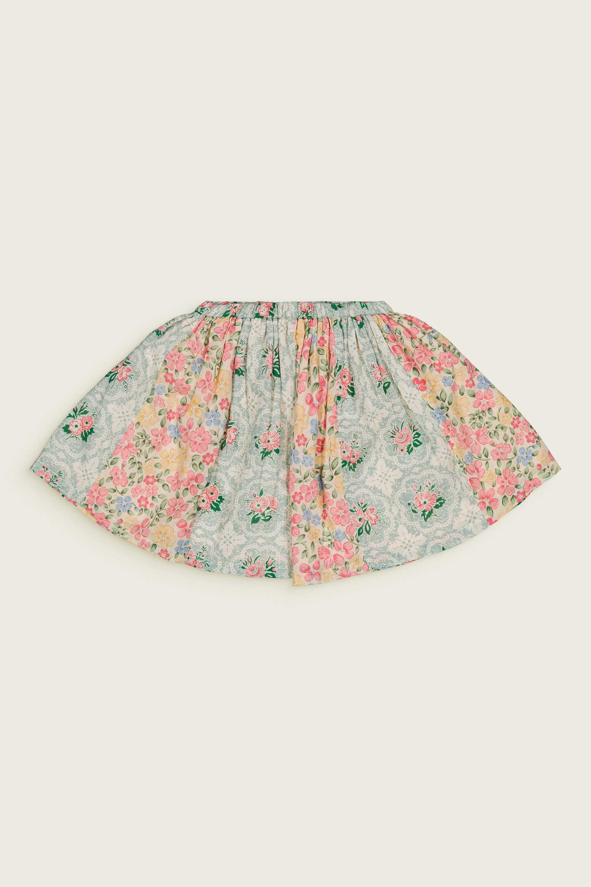 - Skirt, 100% organic cotton, Plain lining in organic cotton, Double block print, Elasticated at the waist.