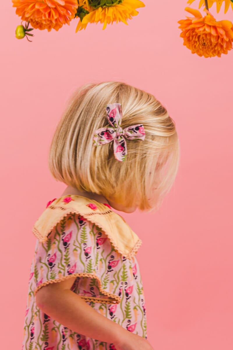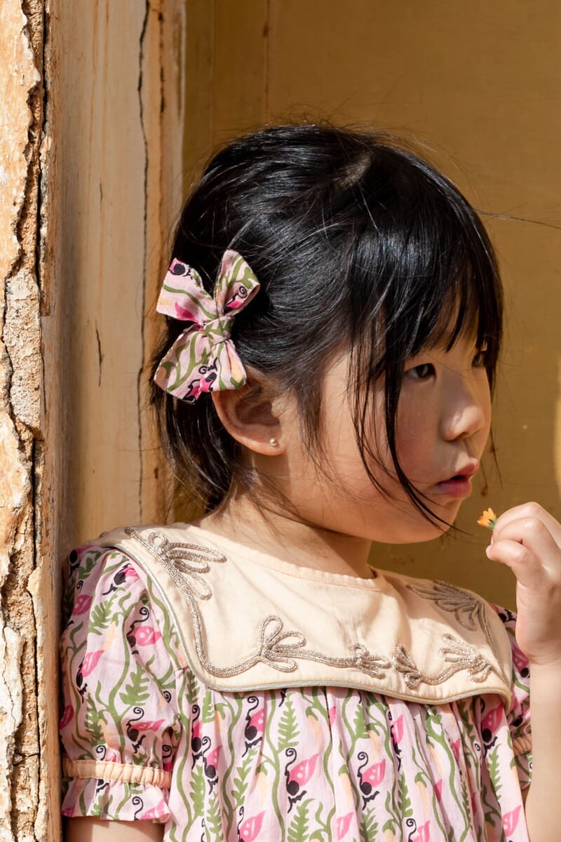 This hair clip is available in our Coquelicot, Butterfly, Cheow Lan, Paramo and Rëtba prints. Extraordinary prints made by hand using the blockprinting technique. Each color is printed separately with a different stamp.