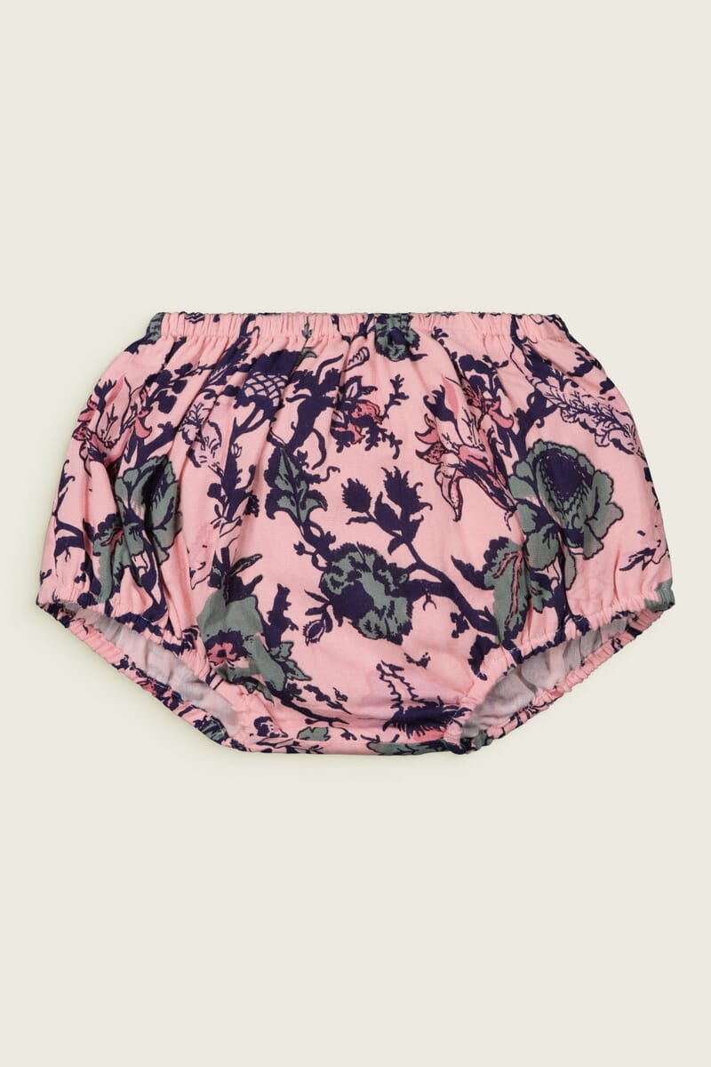 This bloomer is available in our Pink Garden, Fox, Woodland Flowers and Deer exclusive block prints. Extraordinary prints made by hand using the block printing technique. Each color is printed separately with a different stamp.