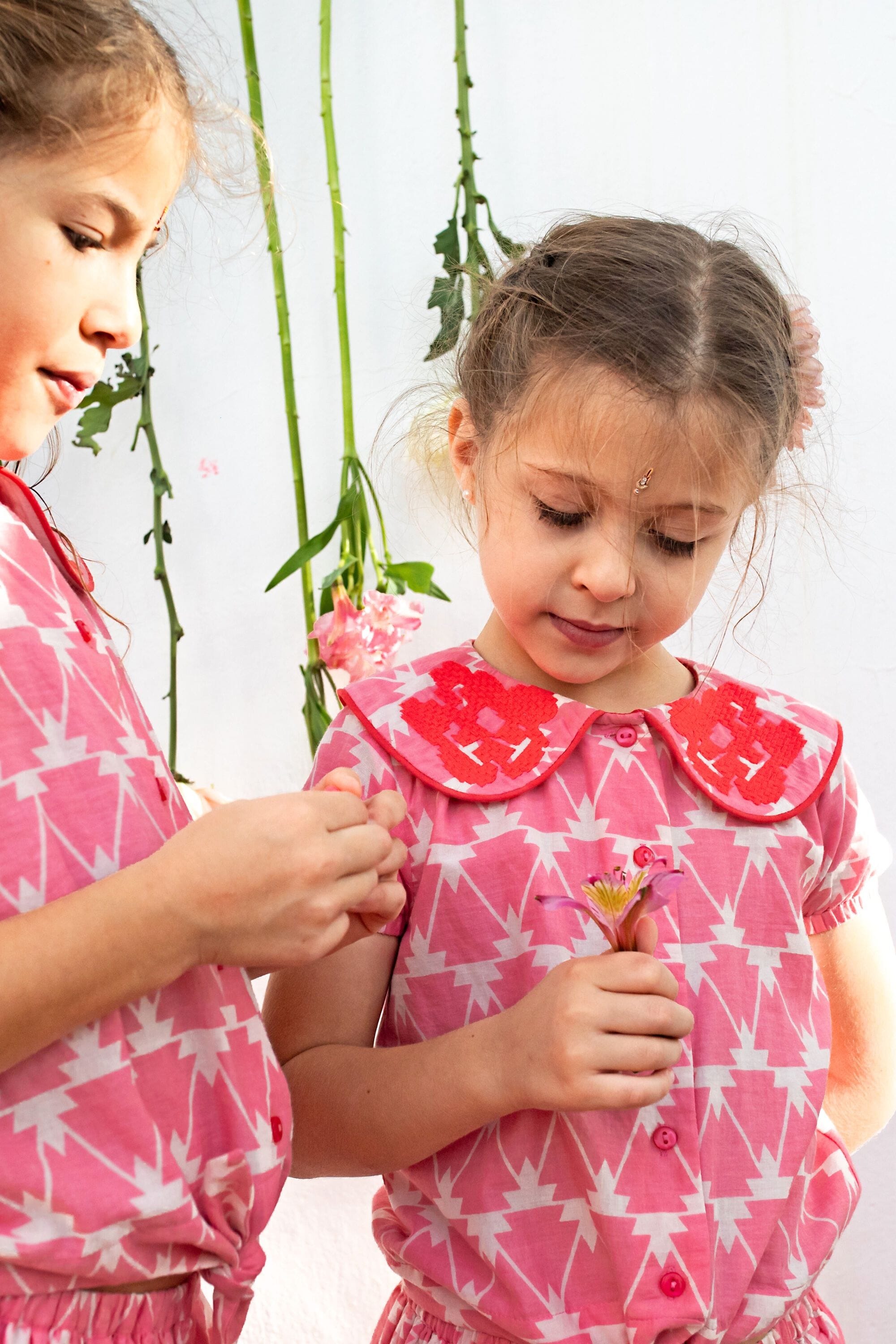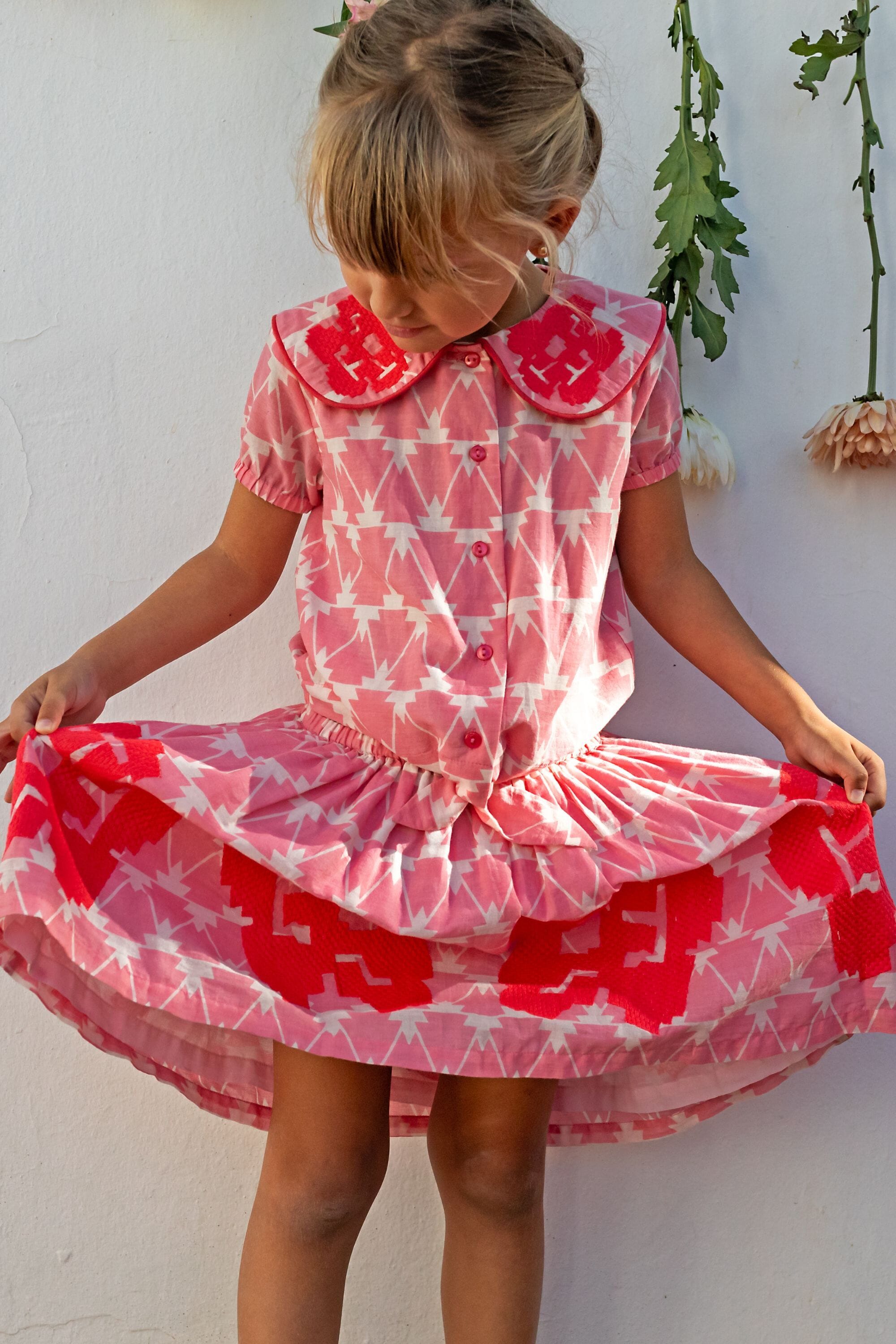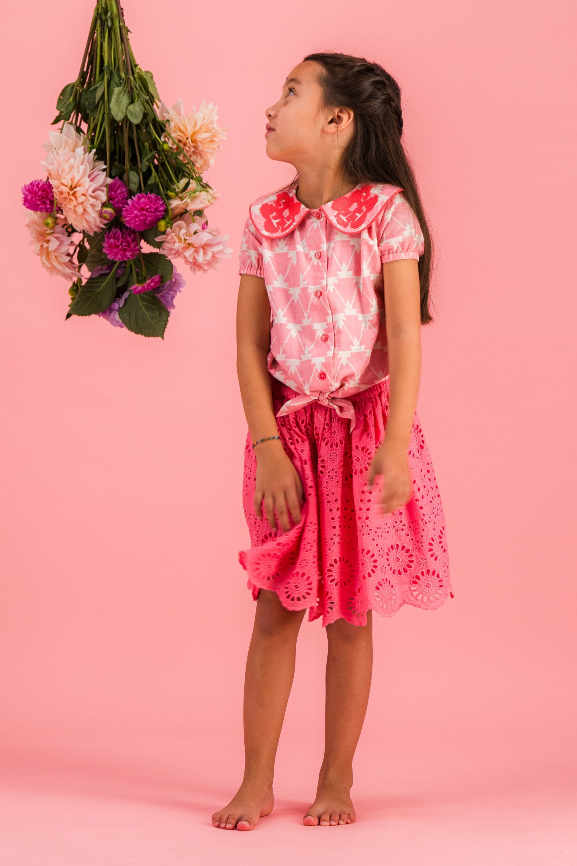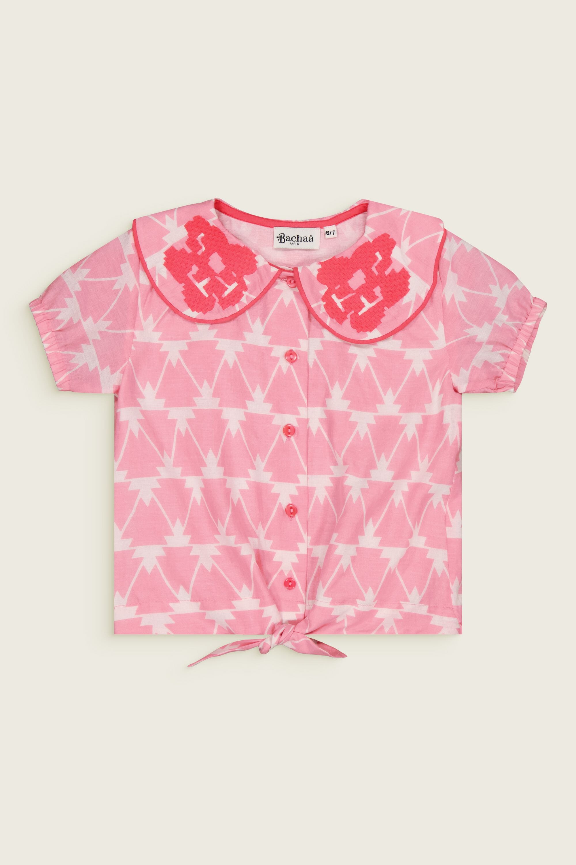 An organic cotton blouse with a magnificent collar decorated with embroidery and contrasting piping.