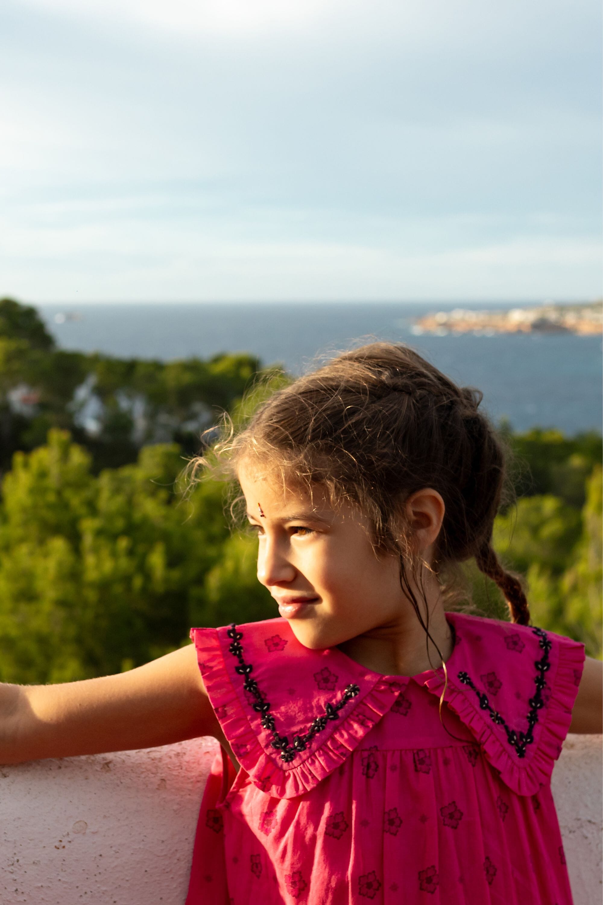 A sleeveless nightdress in 100% organic cotton with hand embroidery on the collar.