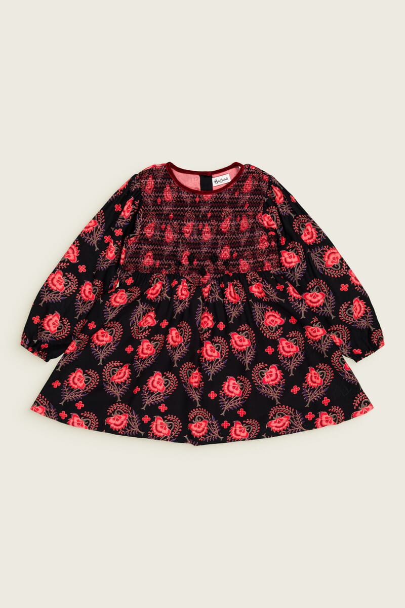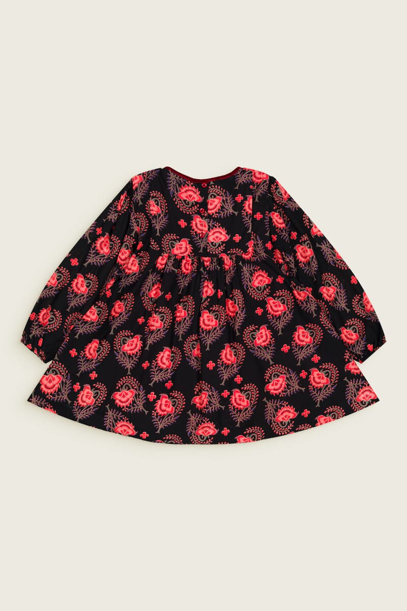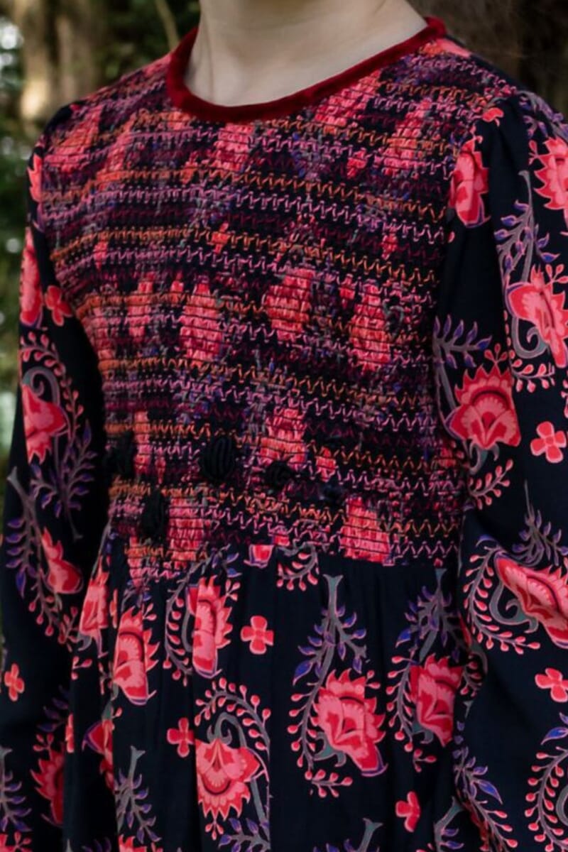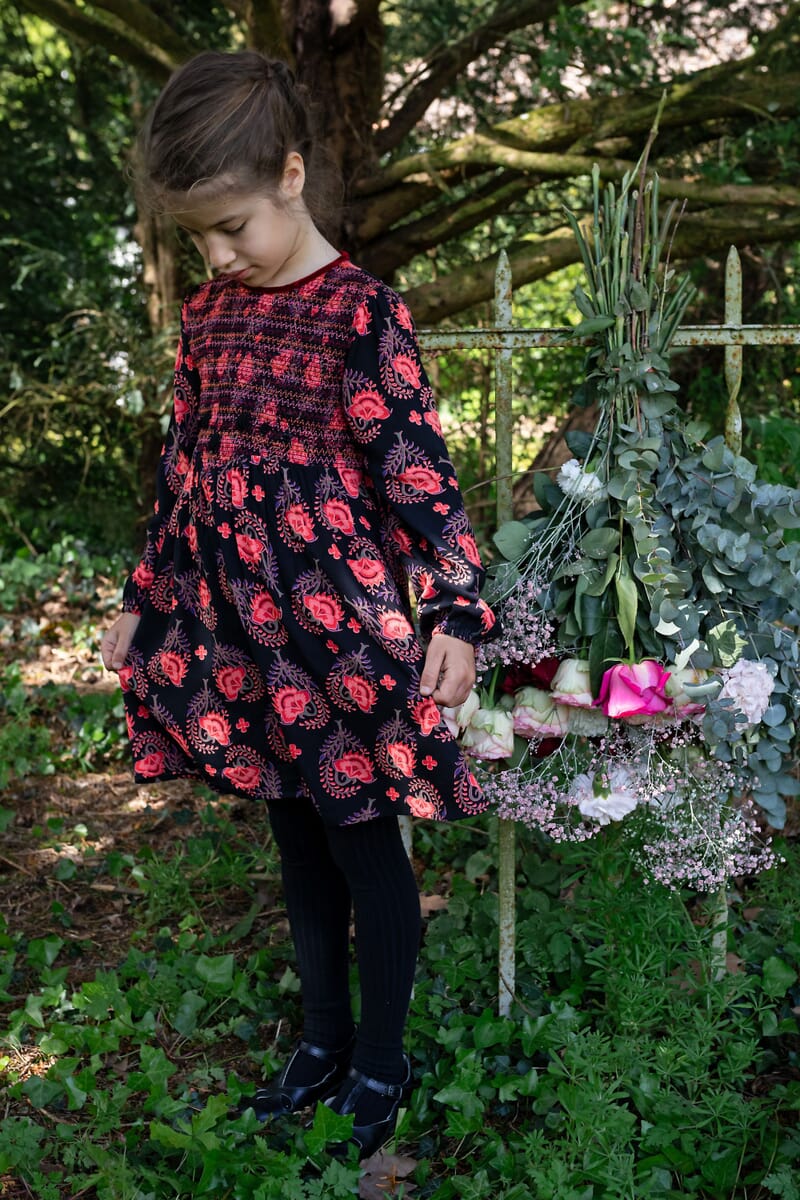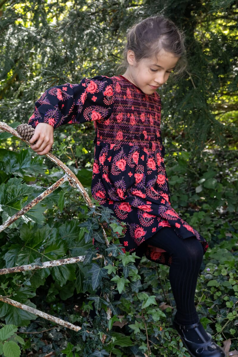 - Dress, 100% ECOVERO® Viscose, Block print, Plain lining in organic cotton voile, Fully smocked on the front, Hand embroidery, Long elasticated sleeves, Contrasted buttons at the back.