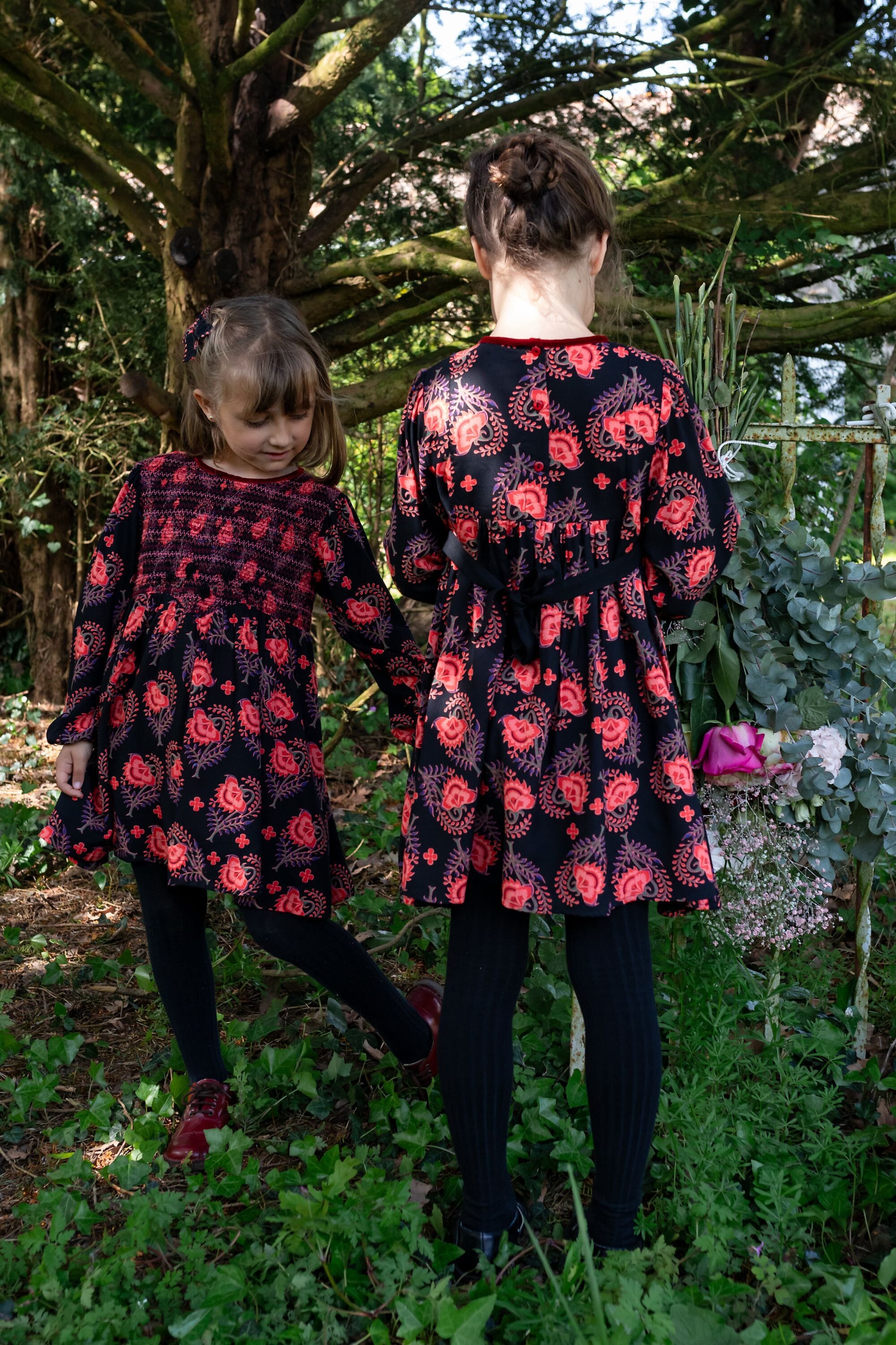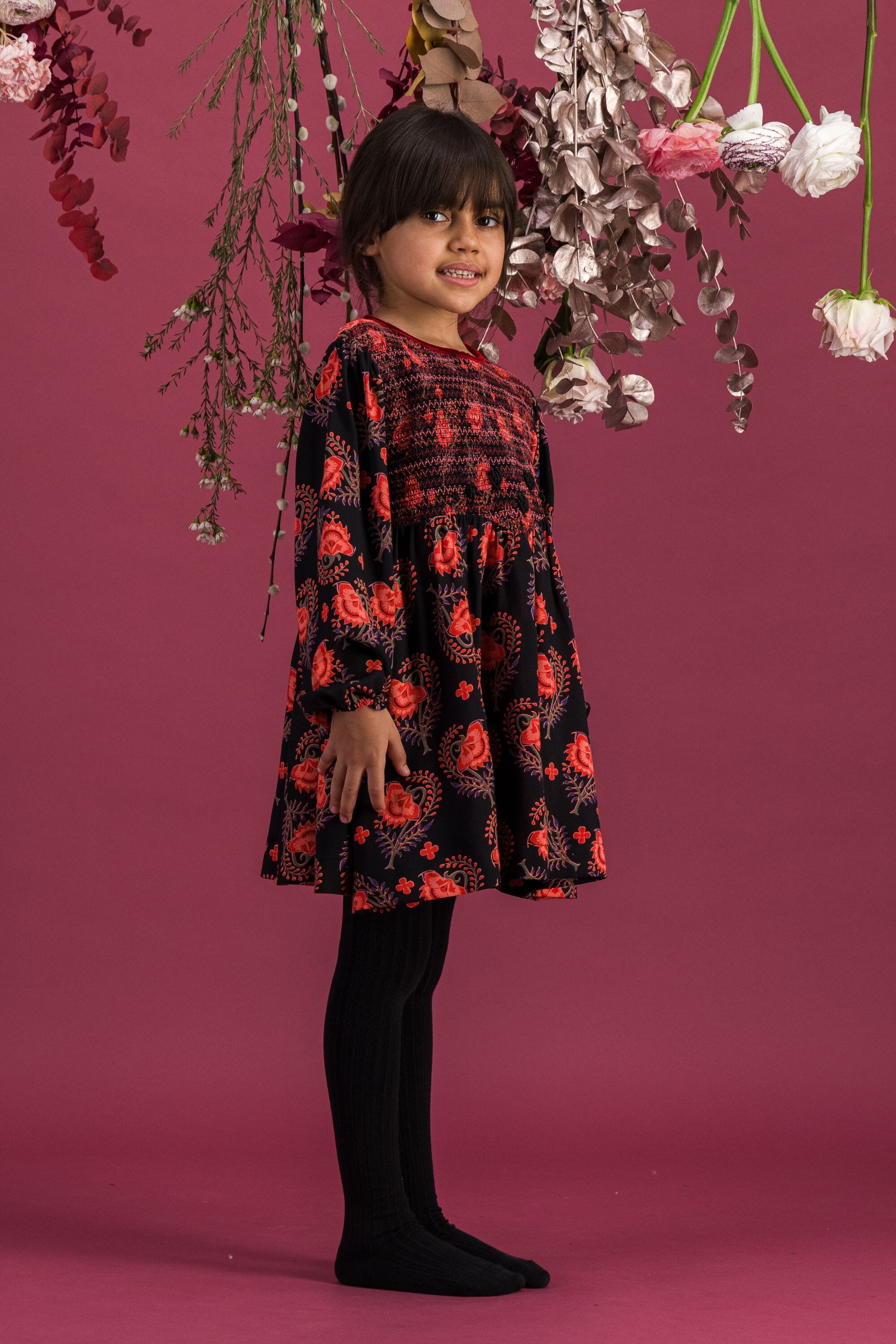 A dress in ECOVERO® Viscose fully smocked on the front with floral hand embroidery.