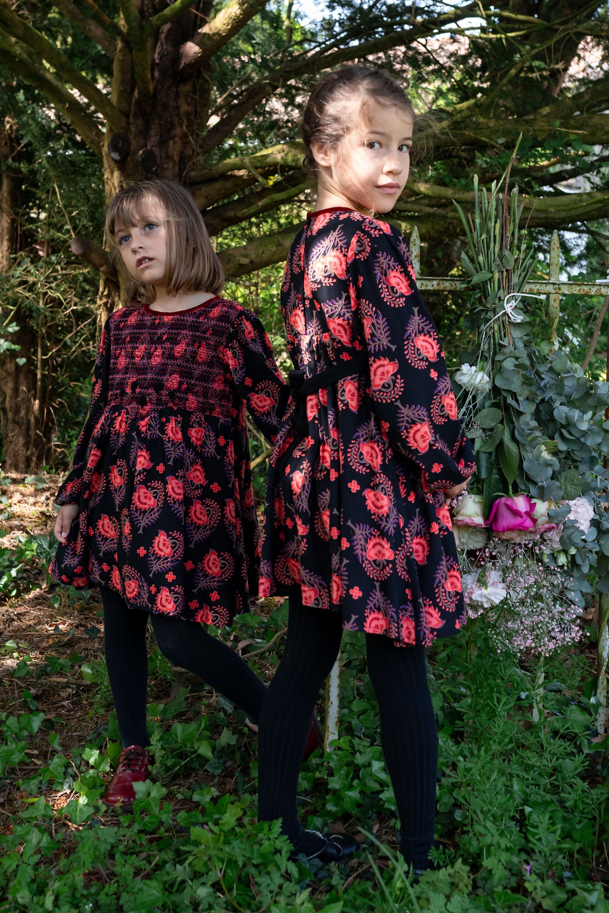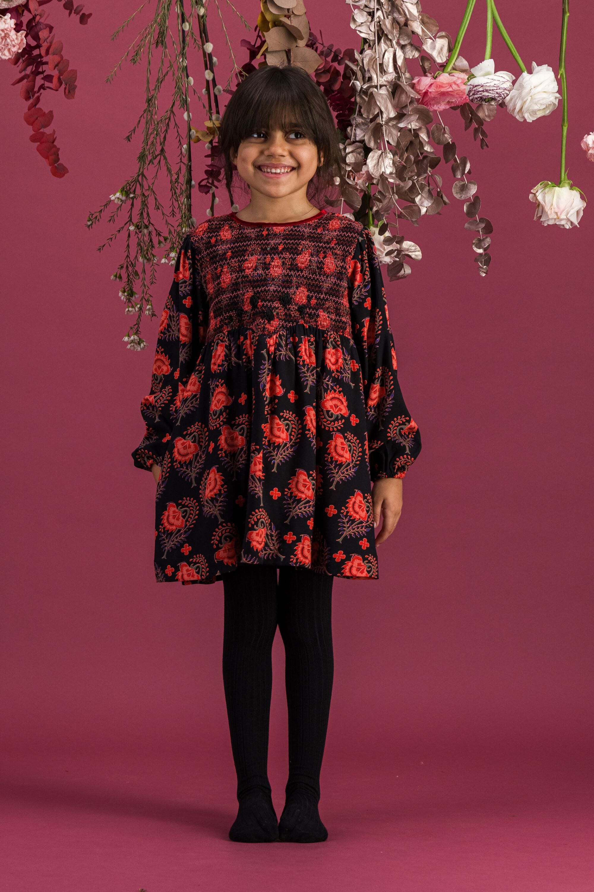 - Dress, 100% ECOVERO® Viscose, Block print, Plain lining in organic cotton voile, Fully smocked on the front, Hand embroidery, Long elasticated sleeves, Contrasted buttons at the back.
