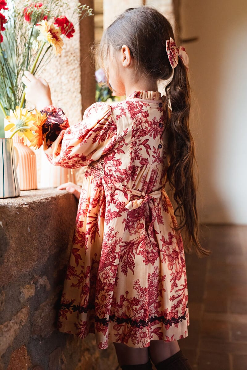 A tied belt at the back allows the dress to be adjusted to fit your child’s body shape.