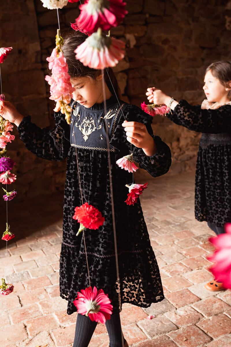 A tied belt at the back allows the dress to be adjusted to fit your child’s body shape.