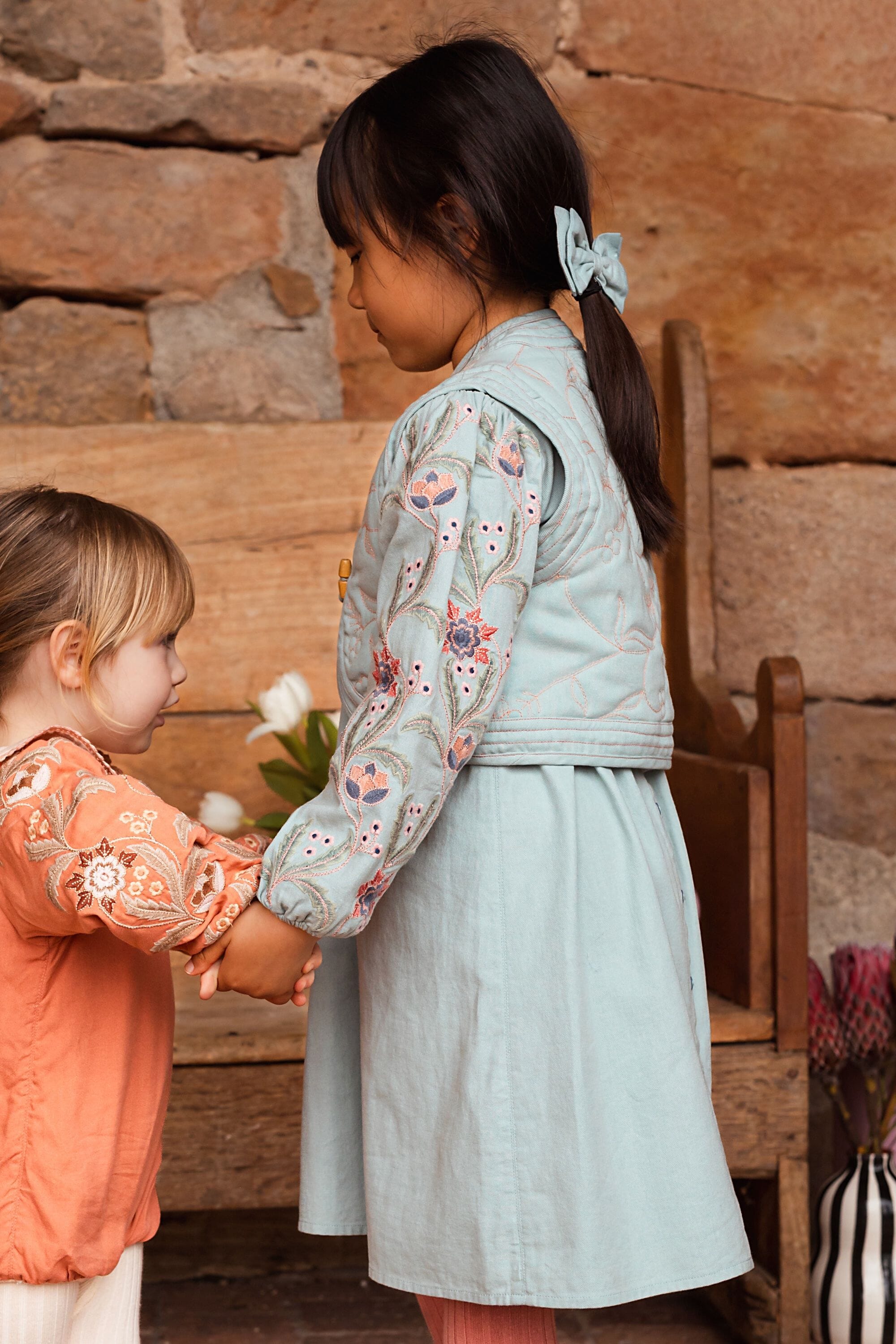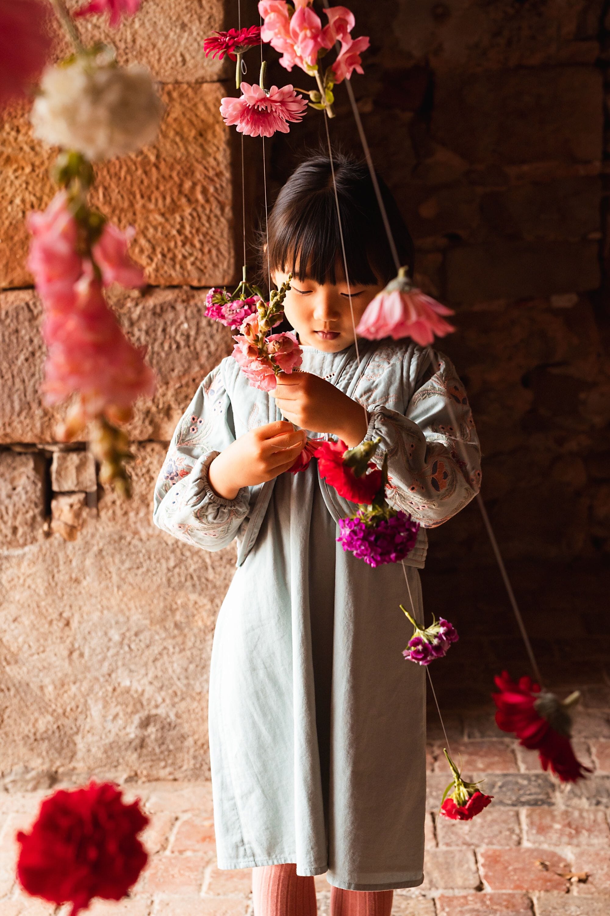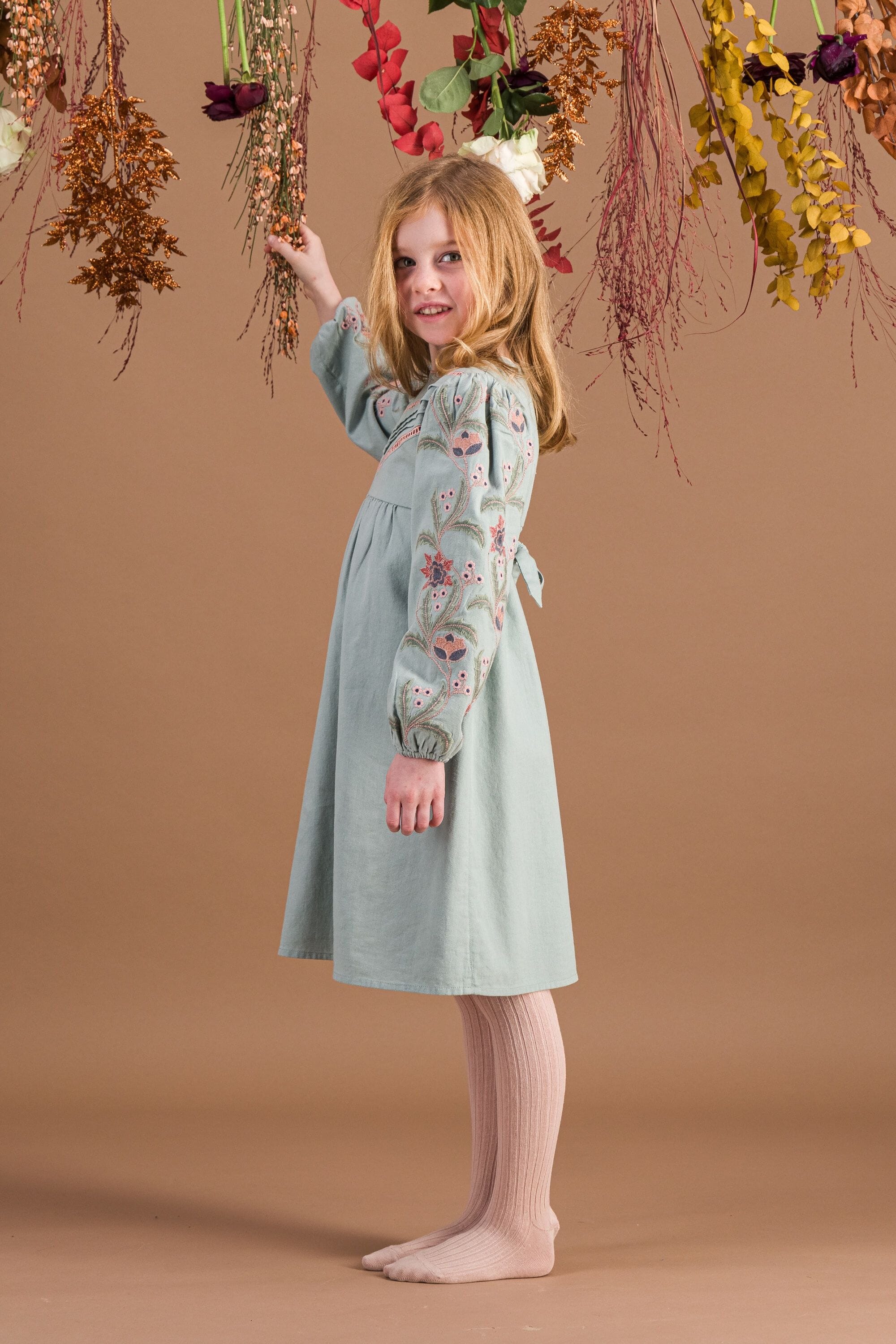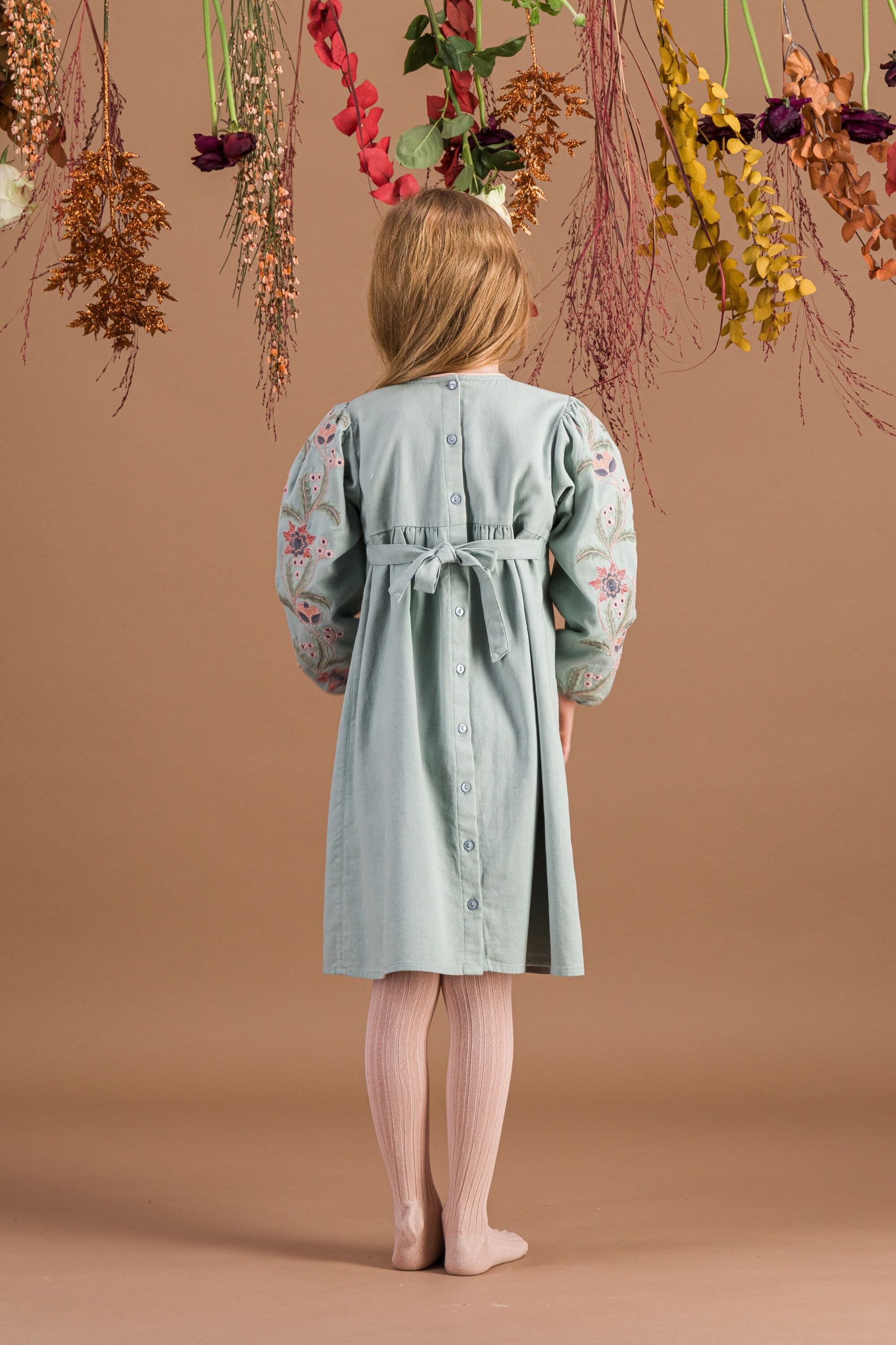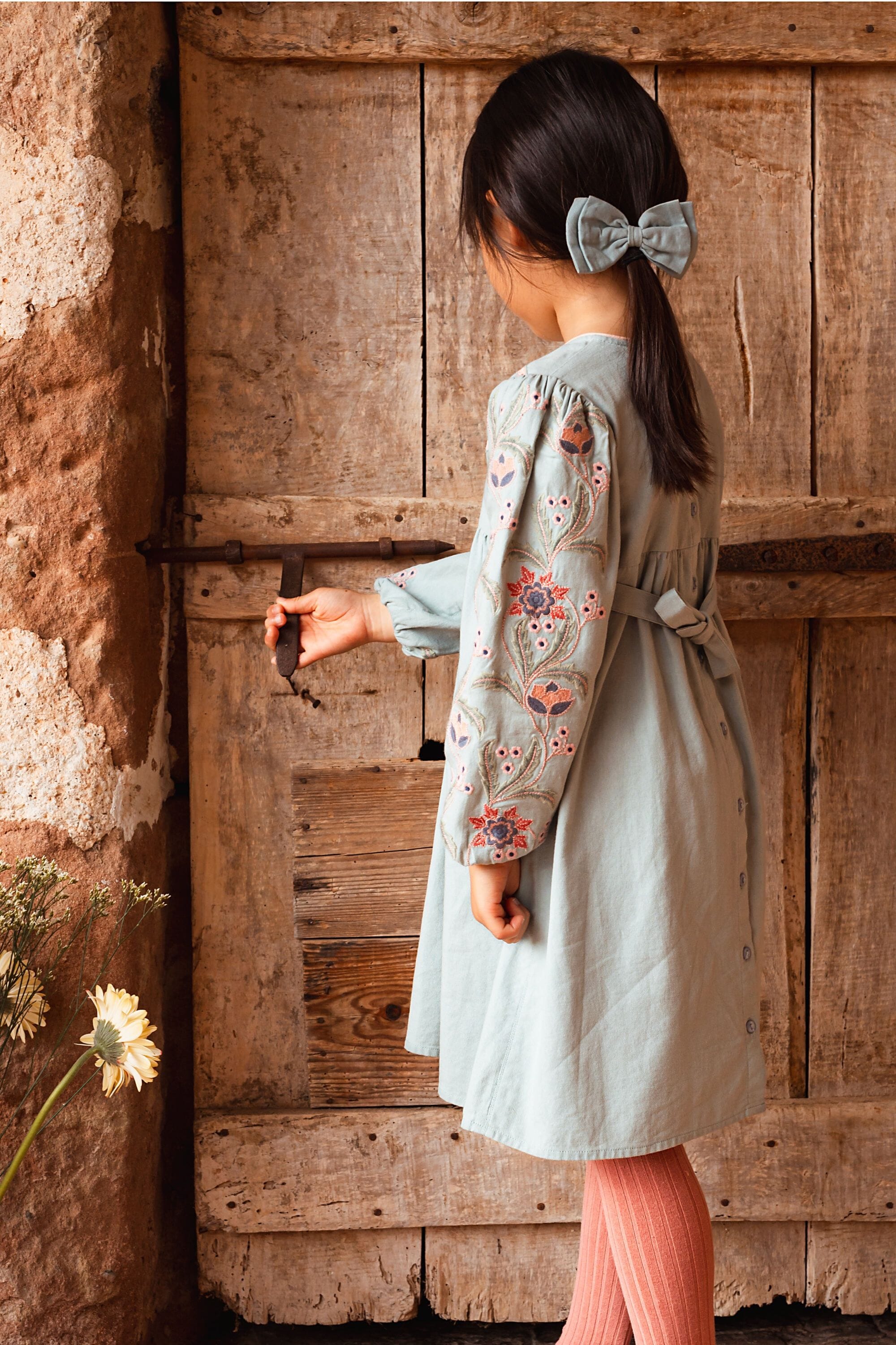 A tied belt at the back allows the dress to be adjusted to fit your child’s body shape.
