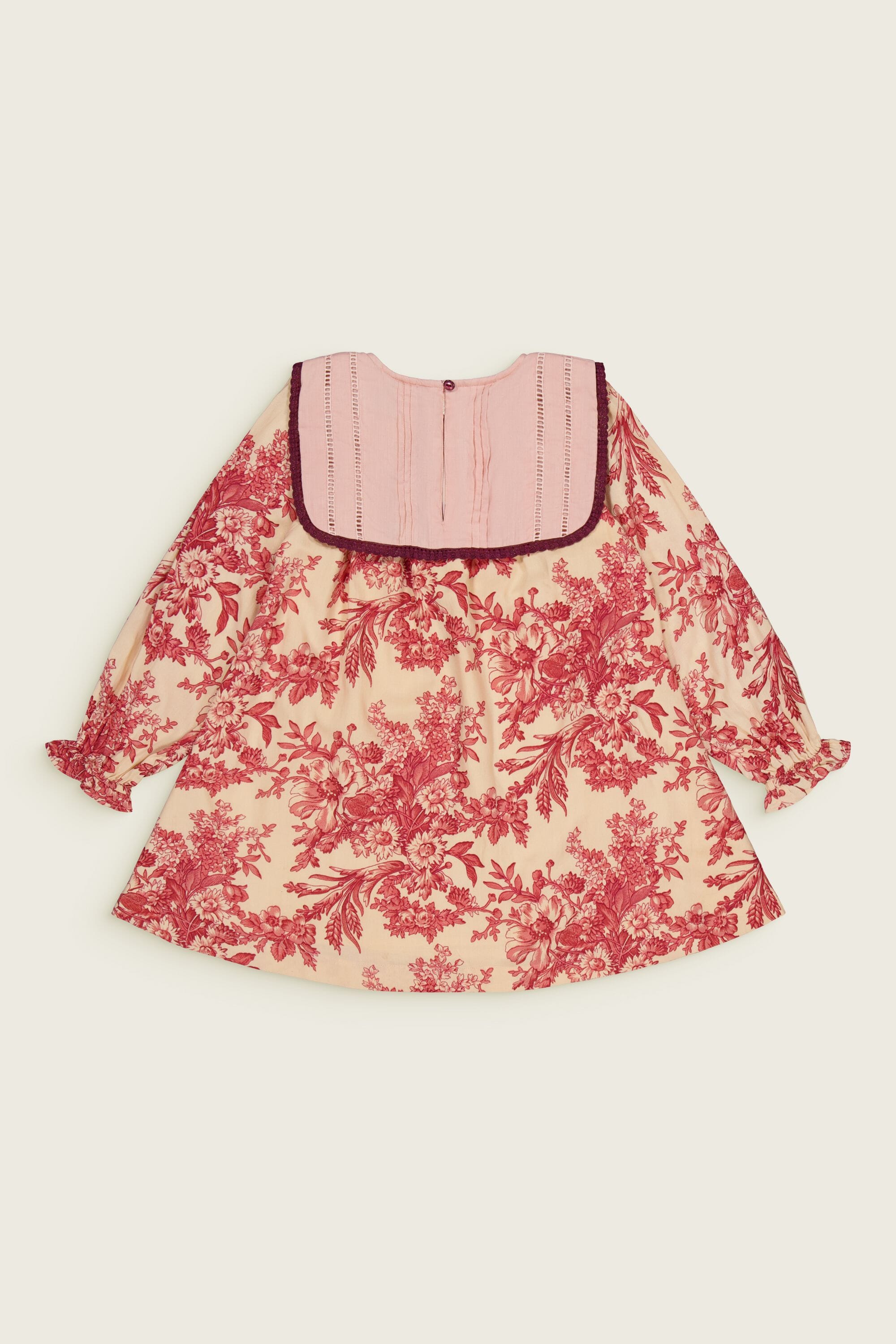 - Dress, 100% ECOVERO® Viscose, Block print, Plain lining in organic cotton voile, Hand embroidery, pintucks and ladder lace on the collar, Contrasting collar, Gathers at the front and back, One buttoned drop at the back, Tone-on-tone button.