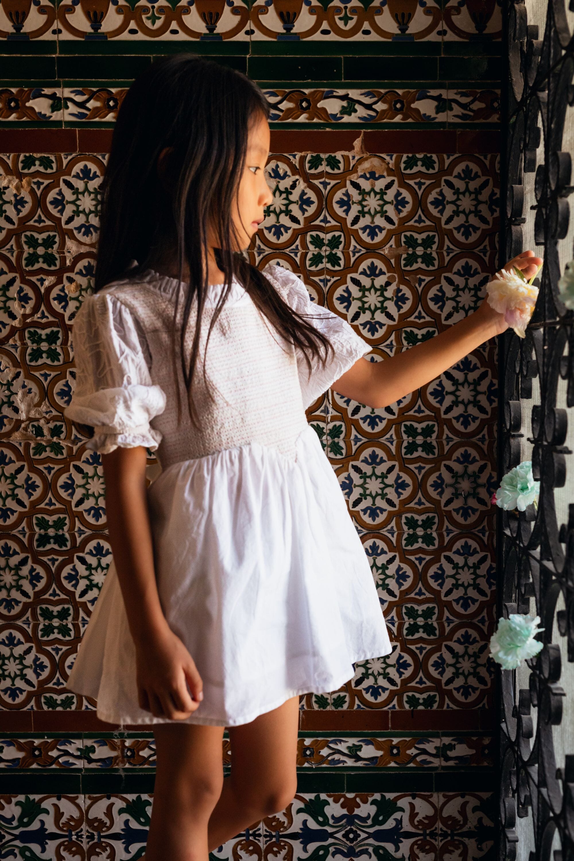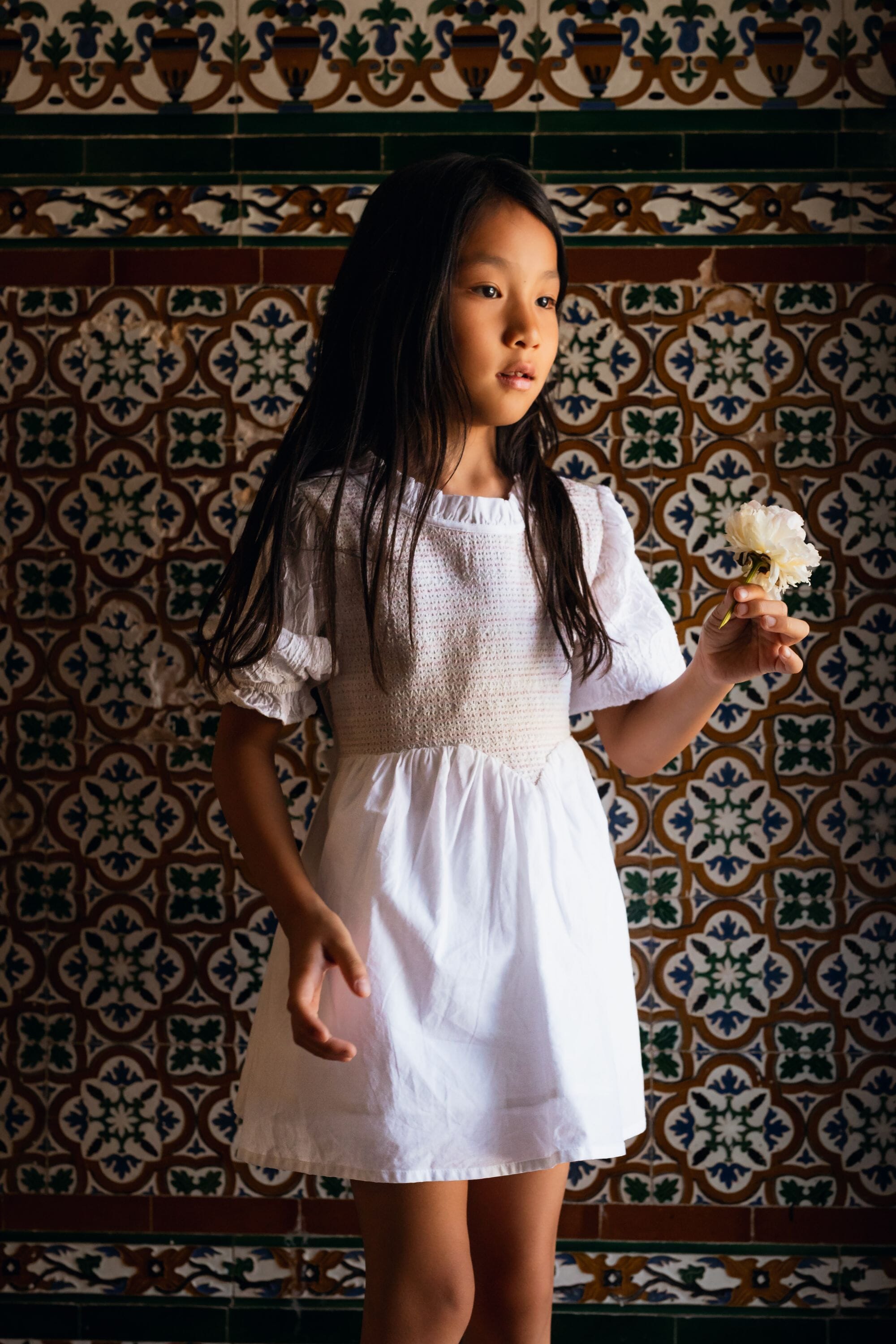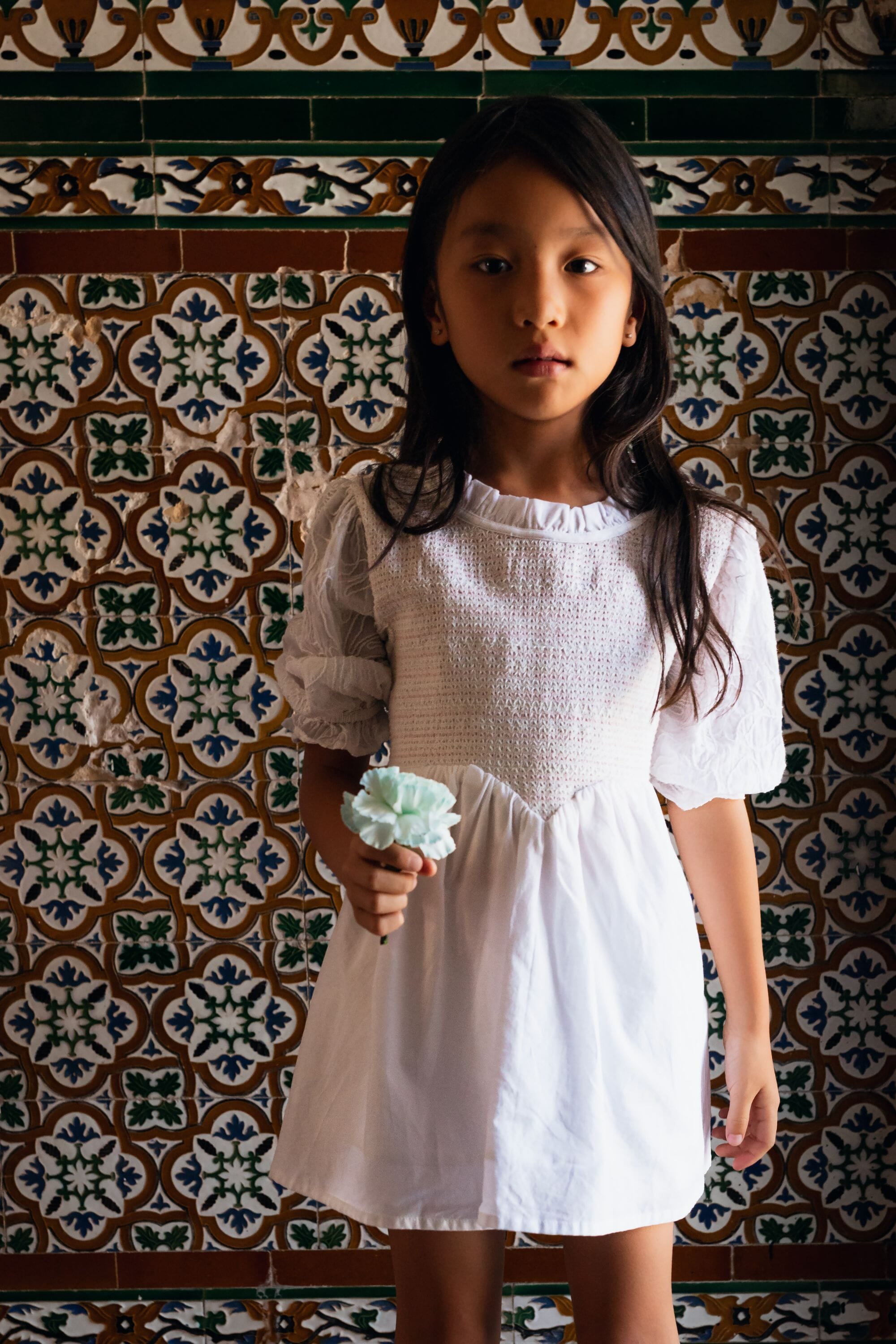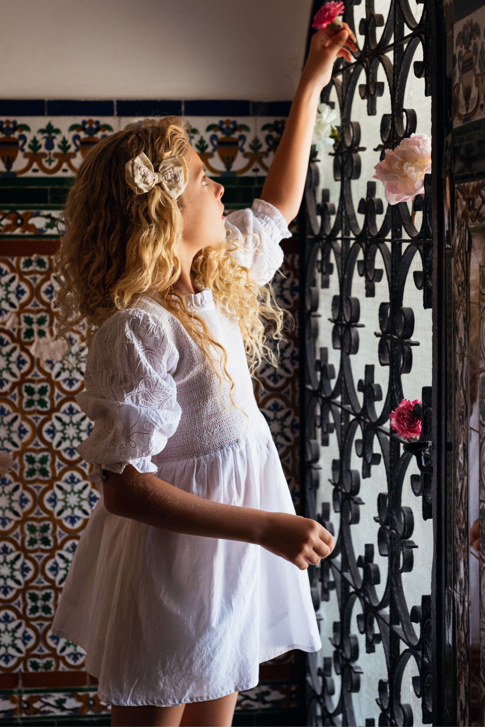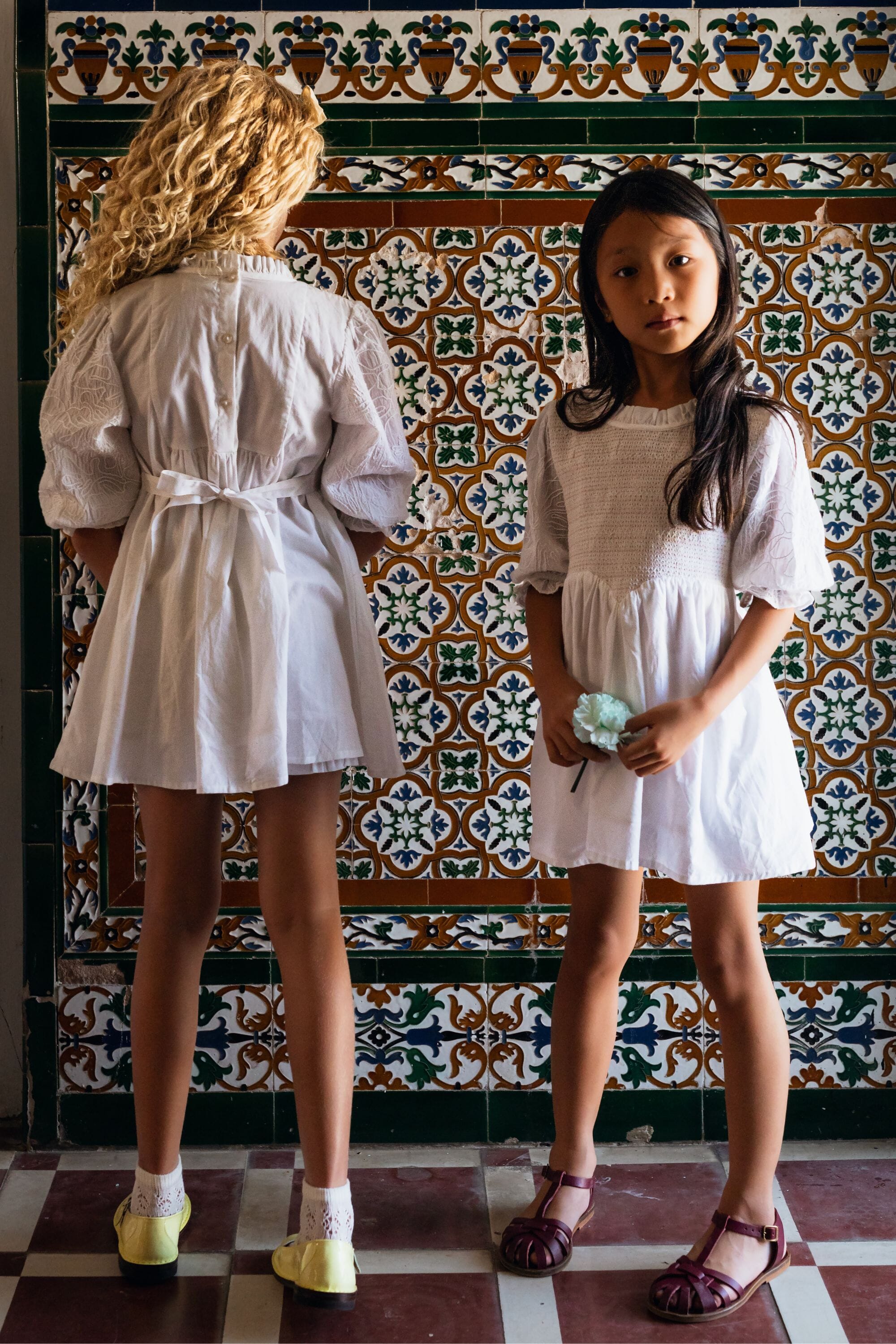 A tied belt at the back allows the dress to be adjusted to fit your child’s body shape.