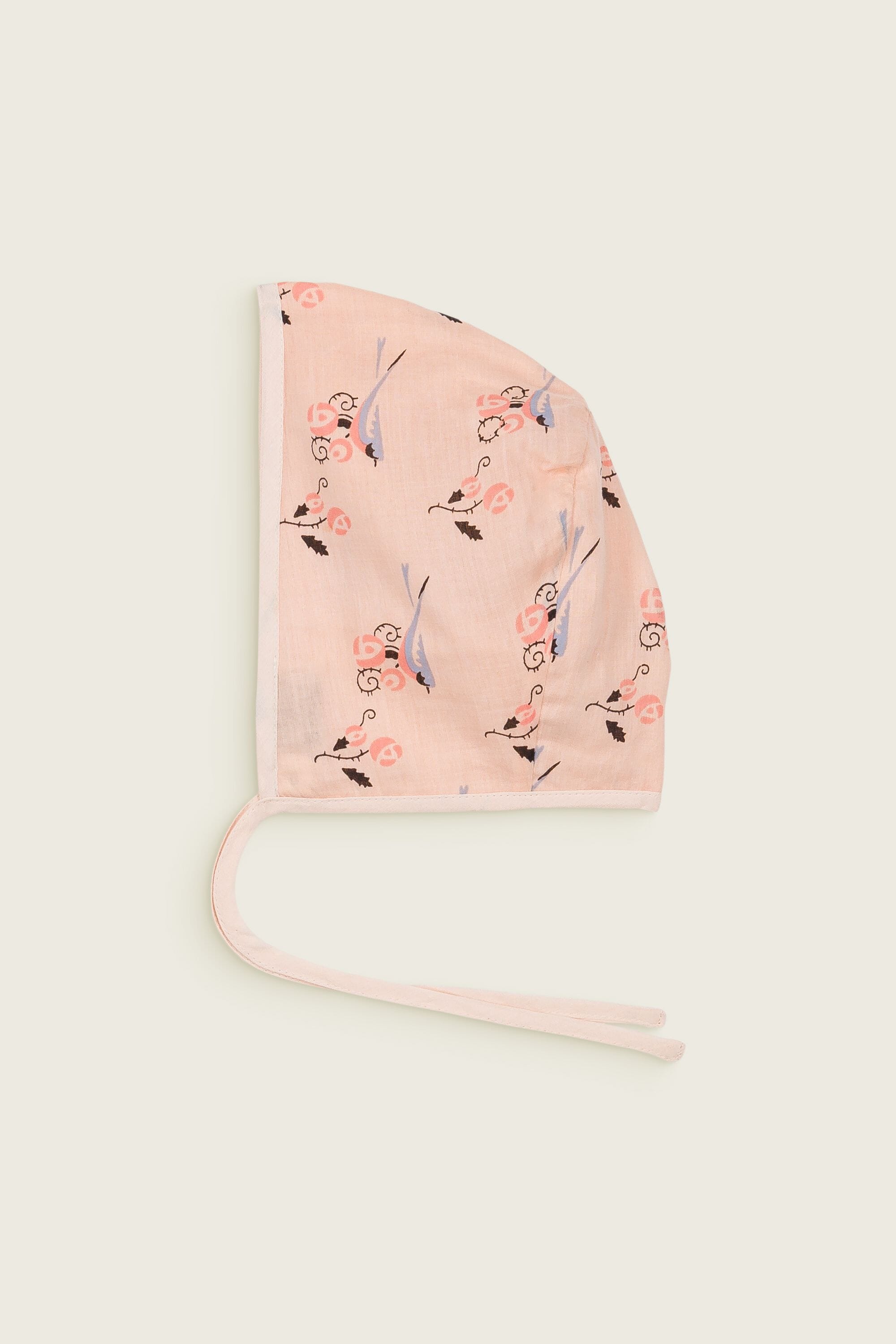 Bonnet, 100% organic cotton, Plain lining in organic cotton voile, Block print, Tie closure.