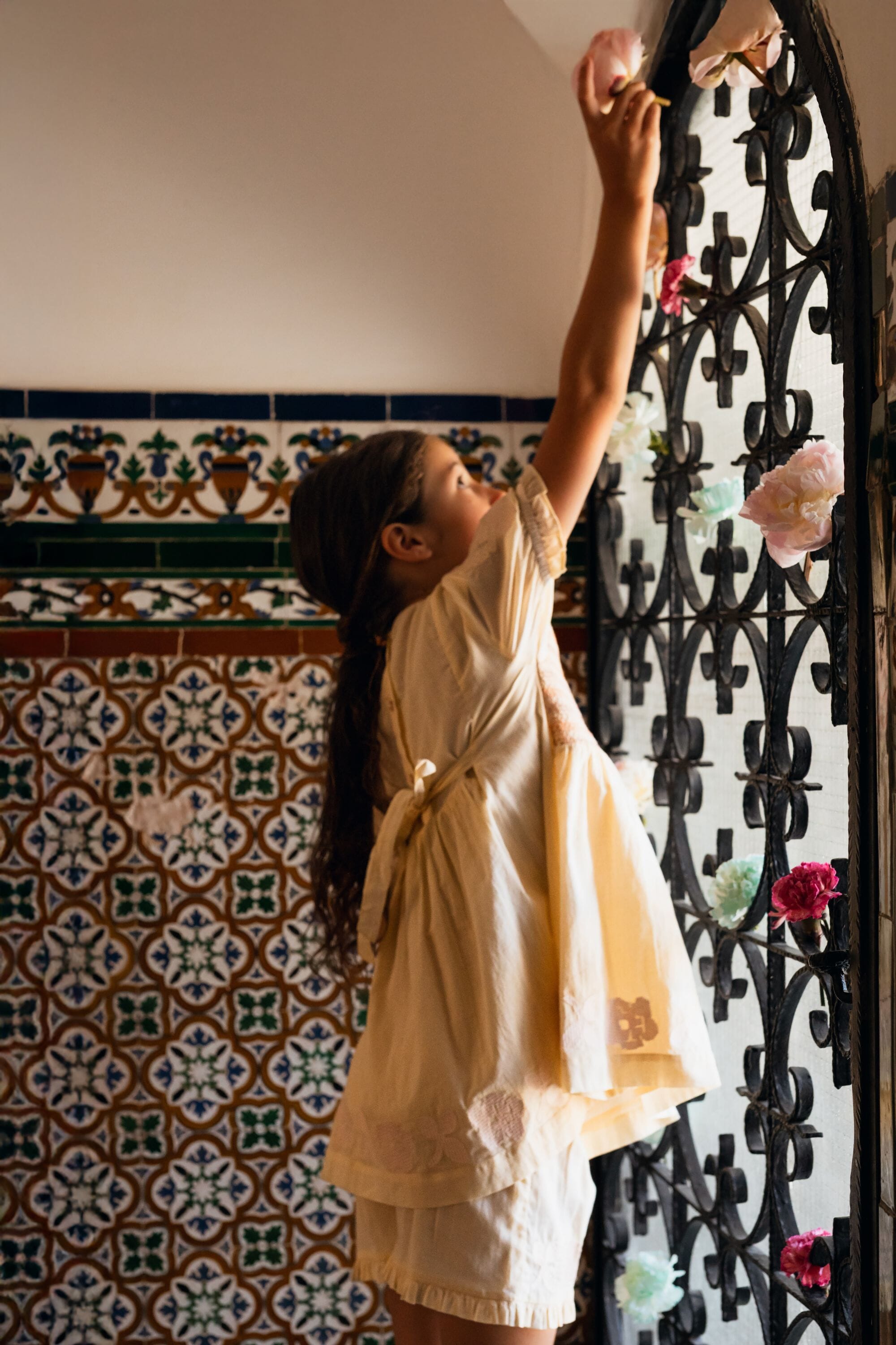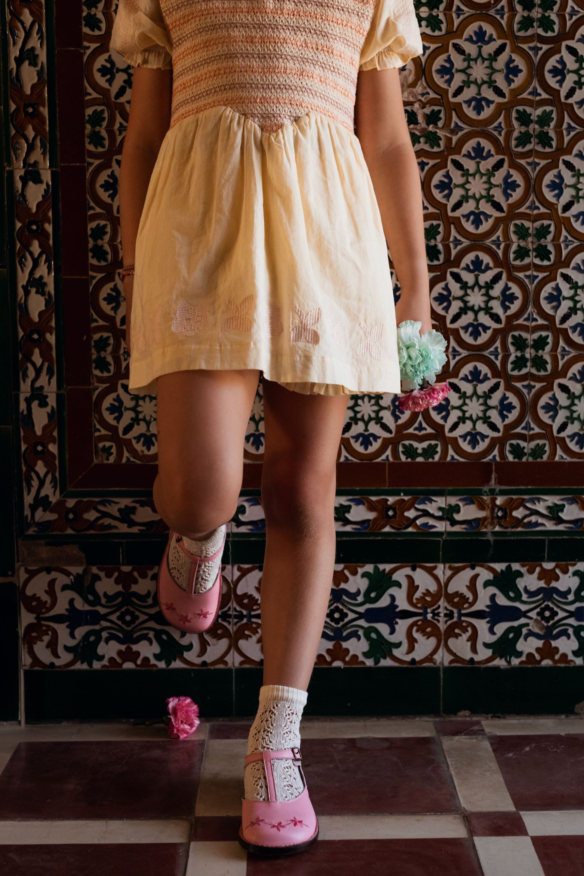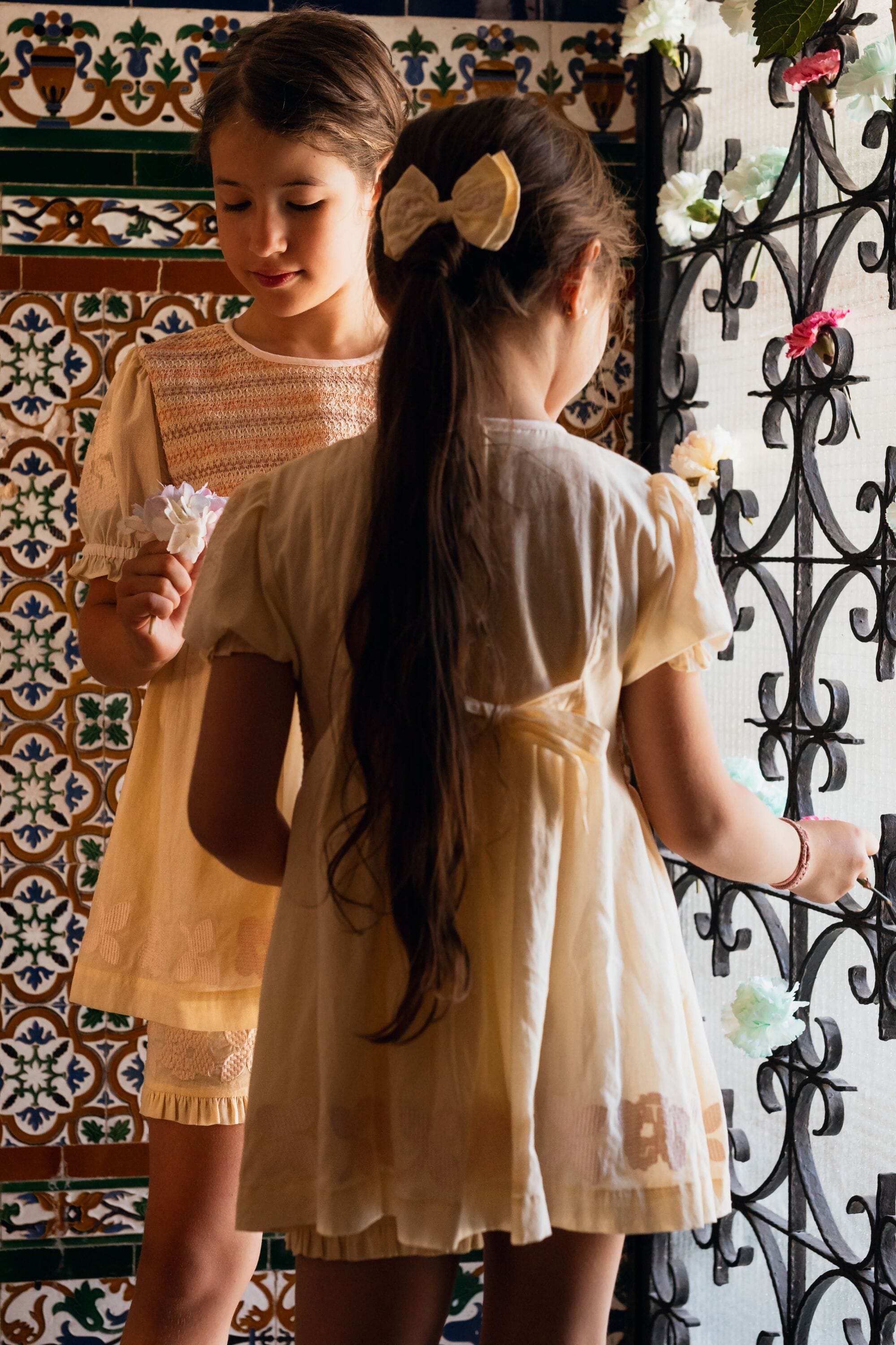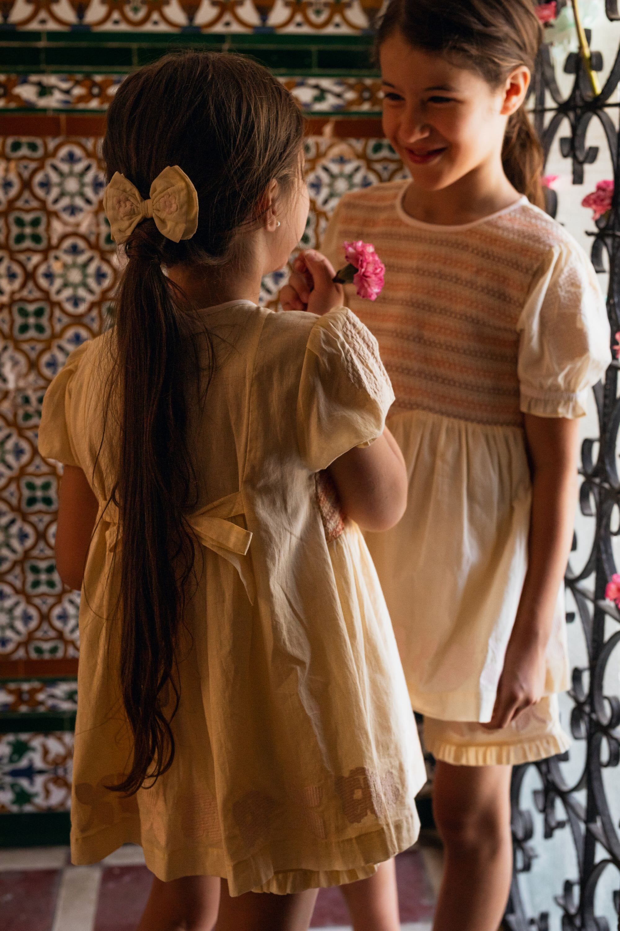 A tied belt at the back allows the dress to be adjusted to fit your child’s body shape.