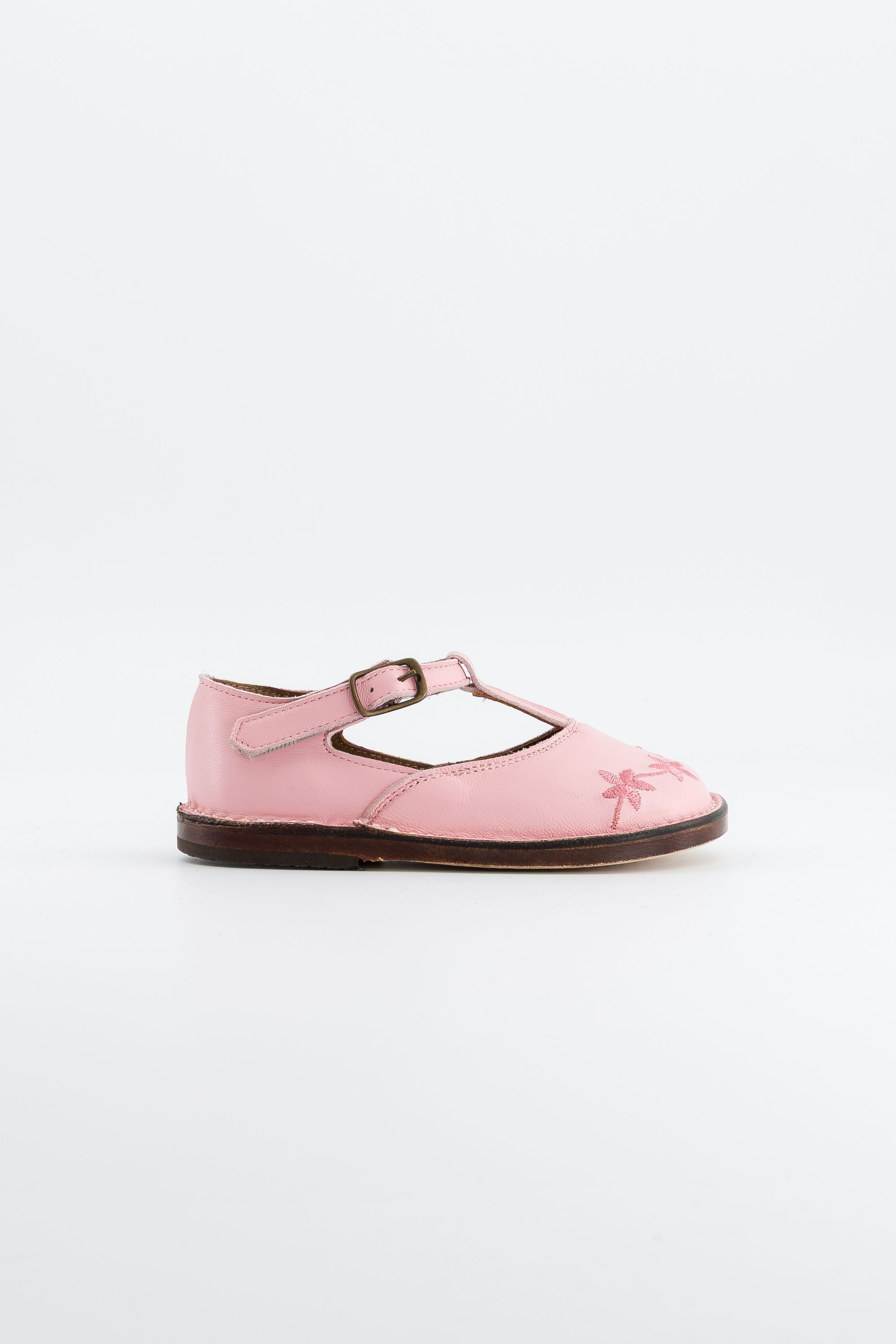 - Upper in leather, Lining in leather, Sole in natural rubber, Embroidery, Velcro strap.