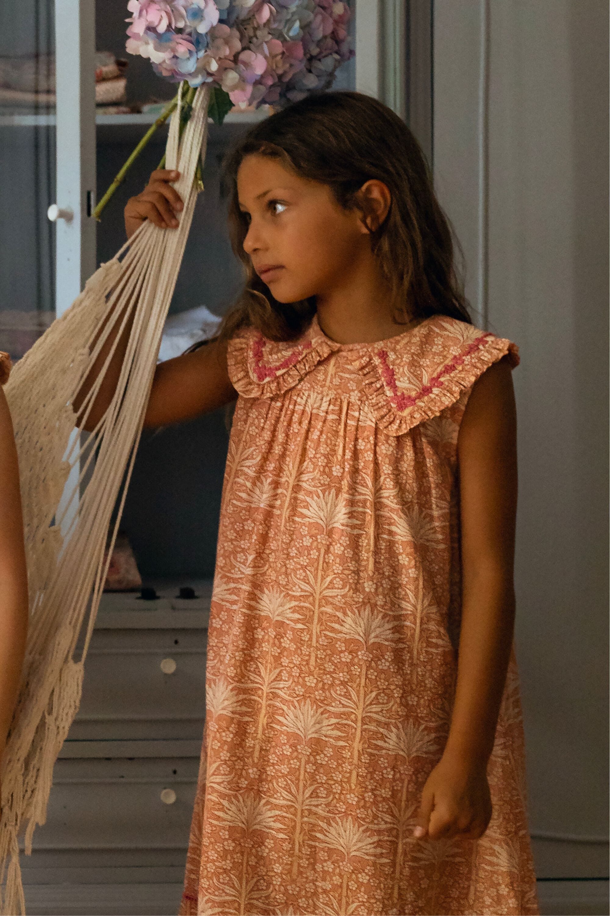 A sleeveless nightdress in 100% organic cotton with hand embroidery on the collar.