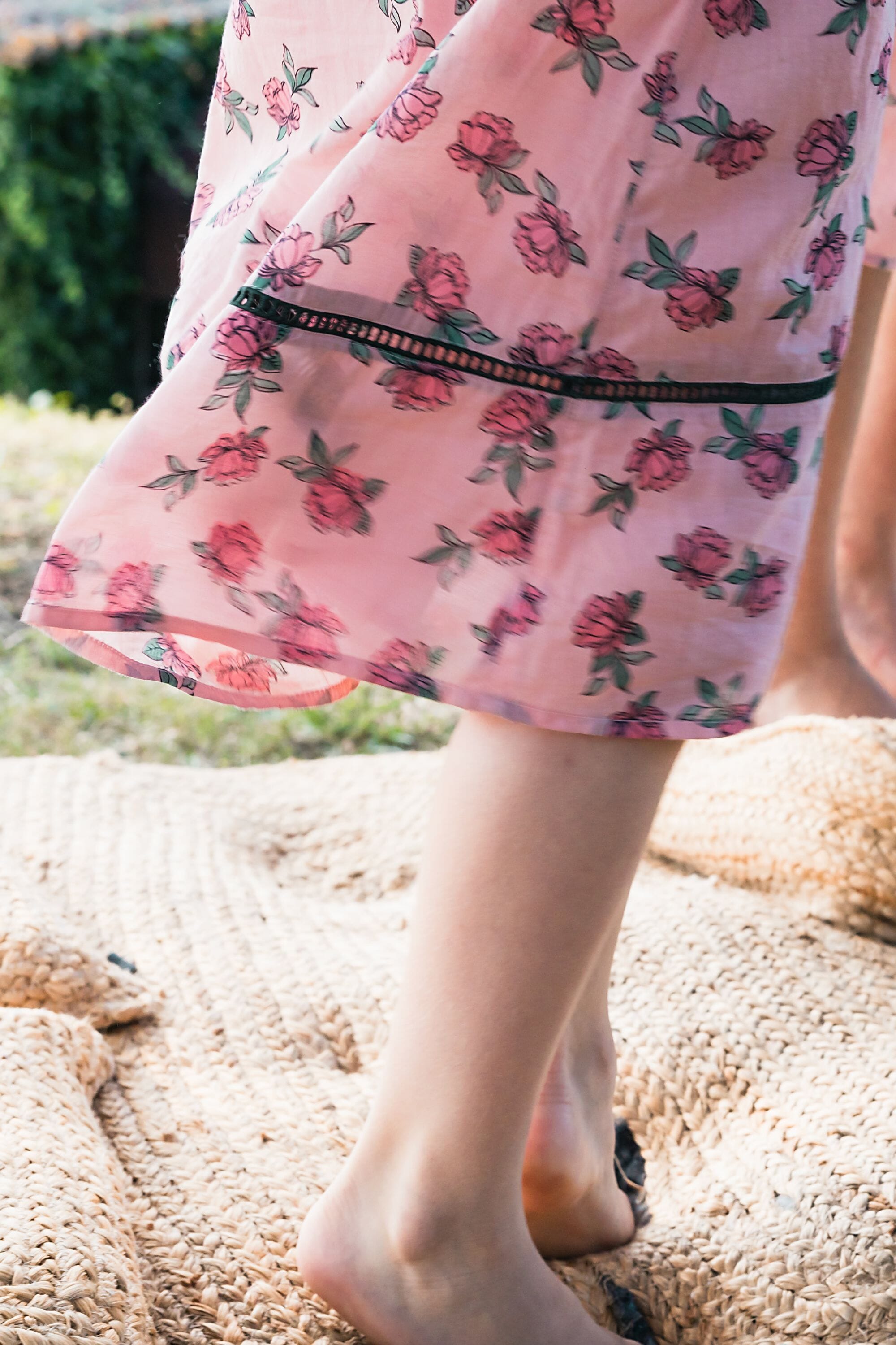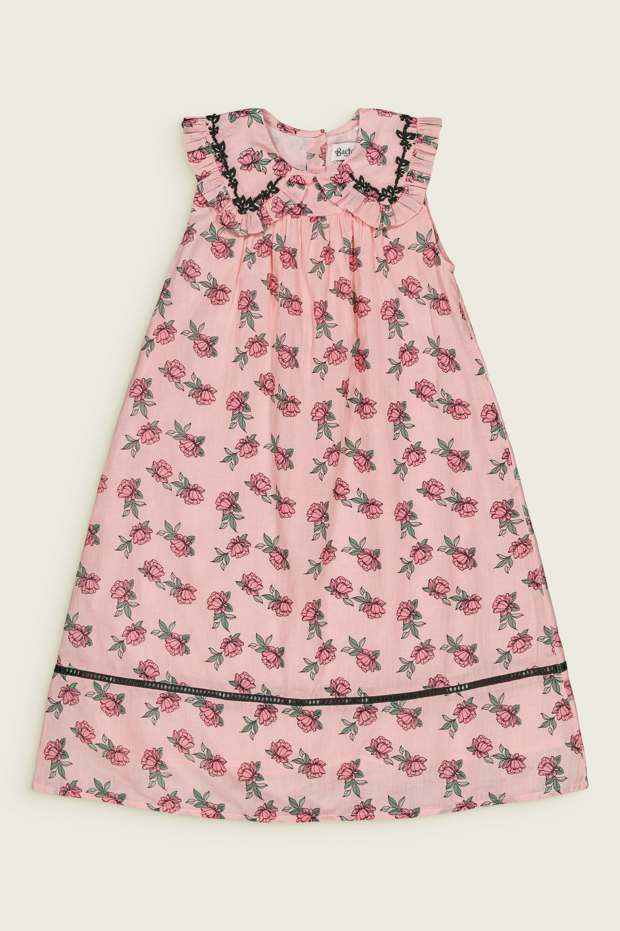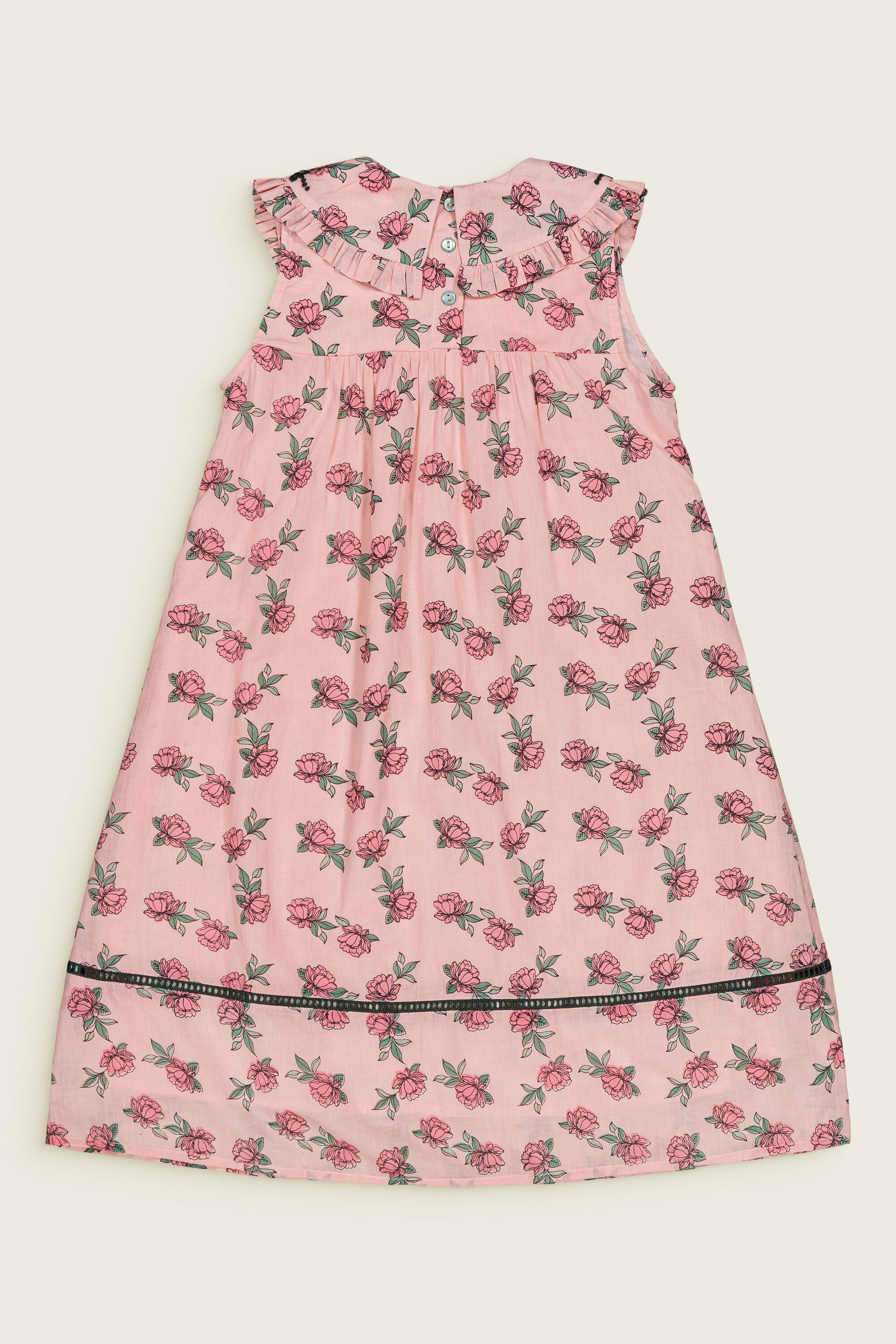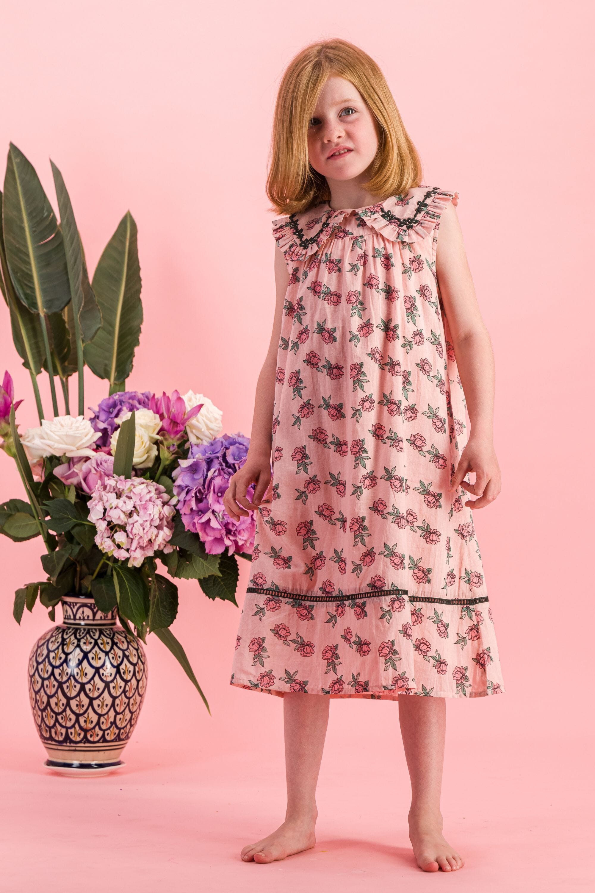 - Sleeveless nightdress, 100% organic cotton, Plain lining in organic cotton voile, Block print, Hand embroidery on the collar, Ladder lace at the bottom of the sleeves and on the front, Gathers on the front and back, Contrasted buttons.