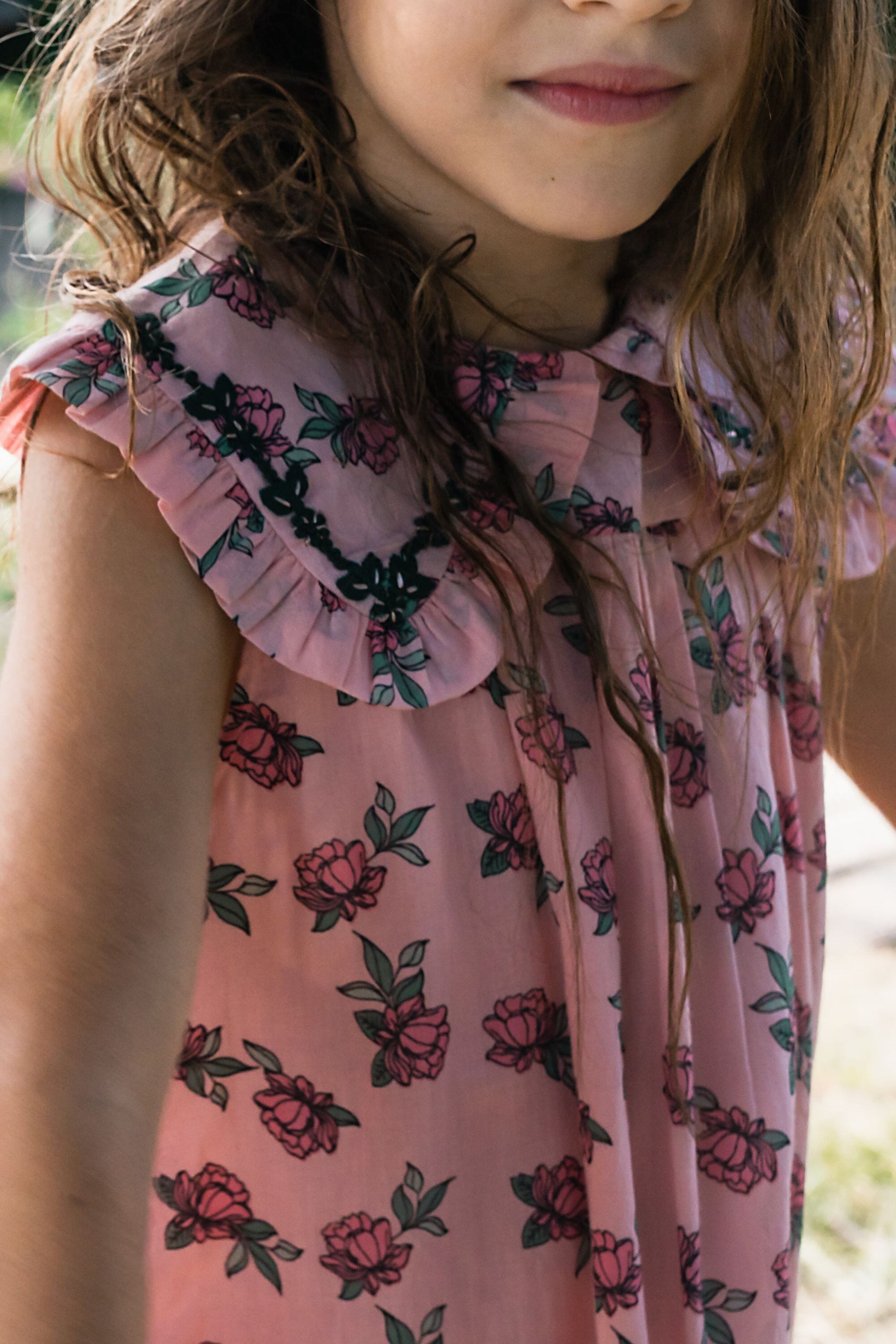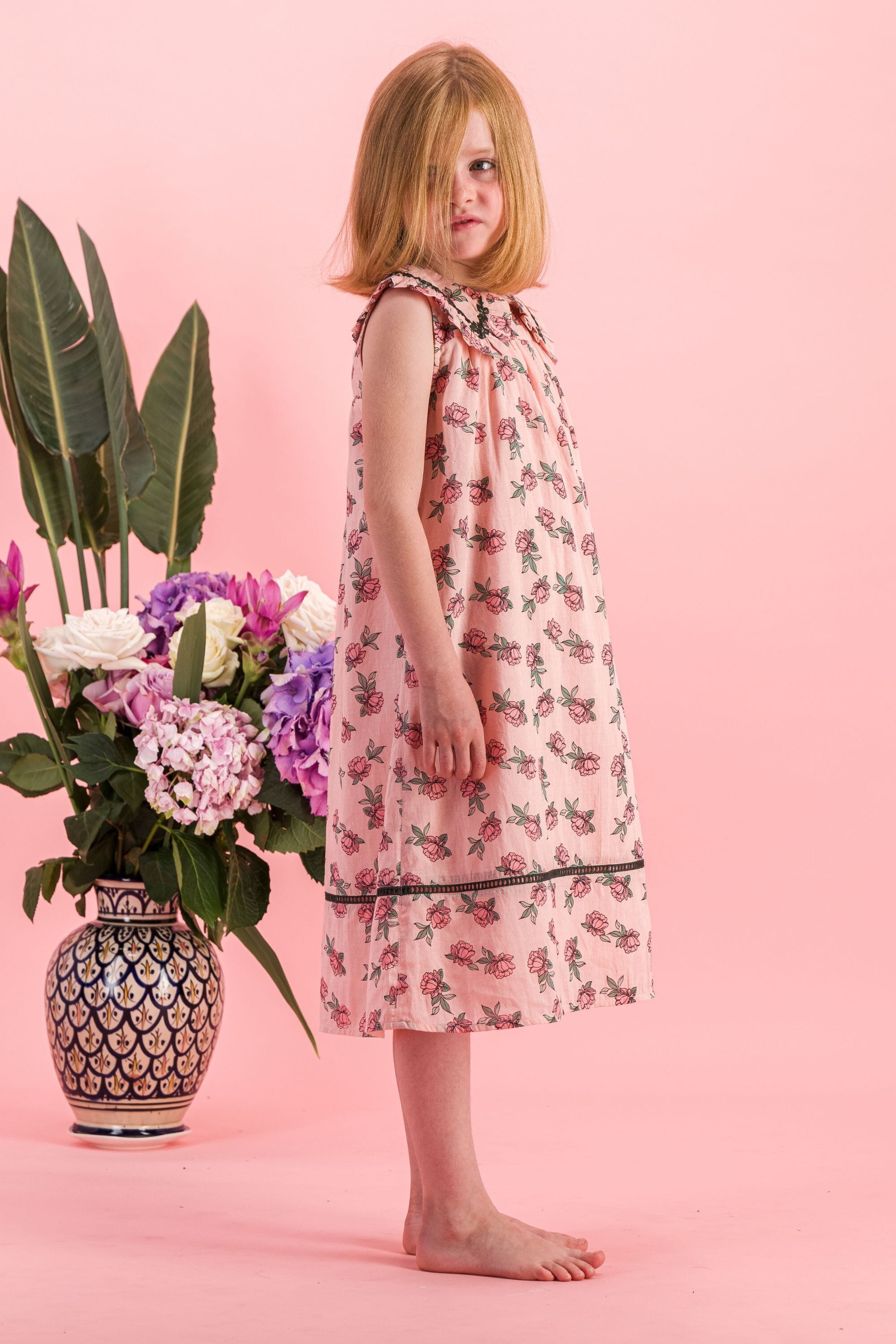 A sleeveless nightdress in 100% organic cotton with hand embroidery on the collar.