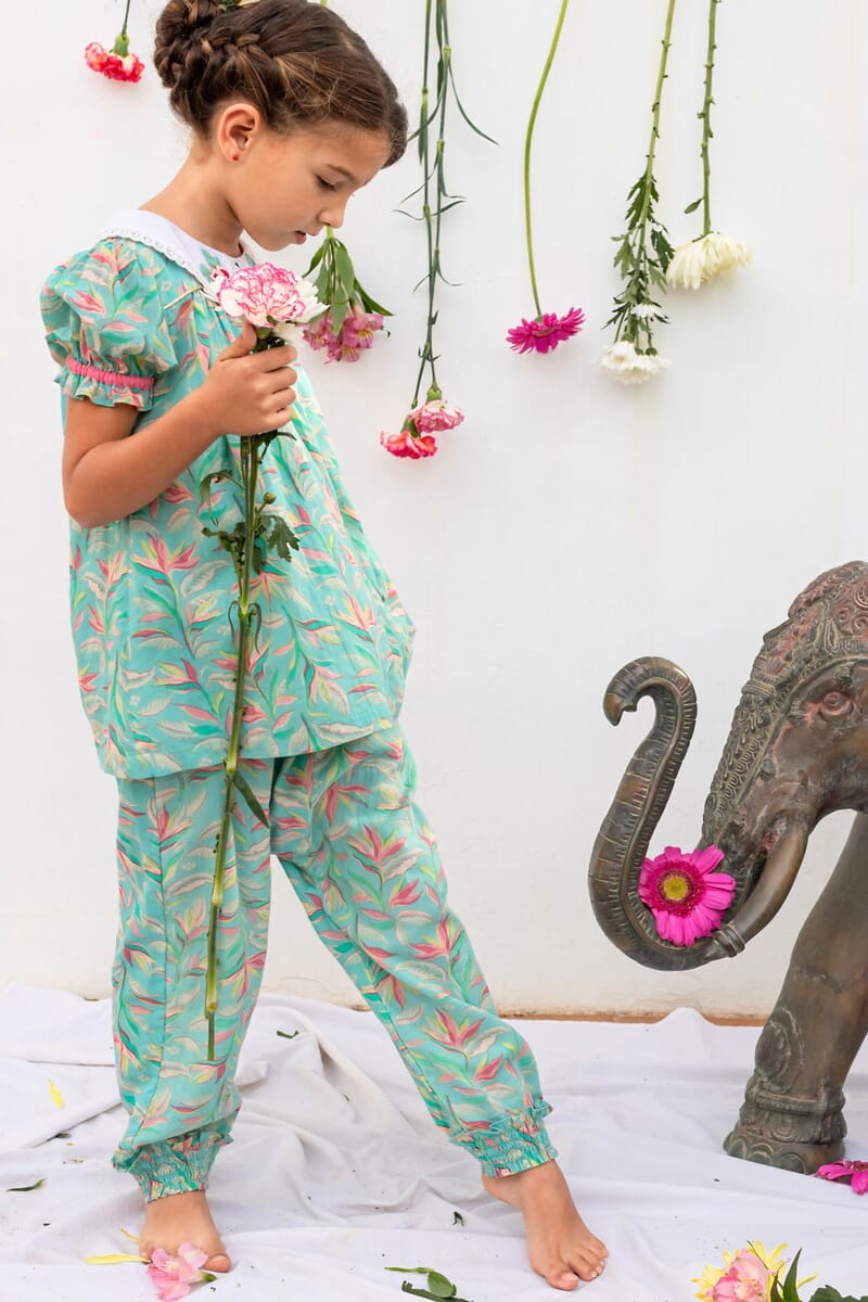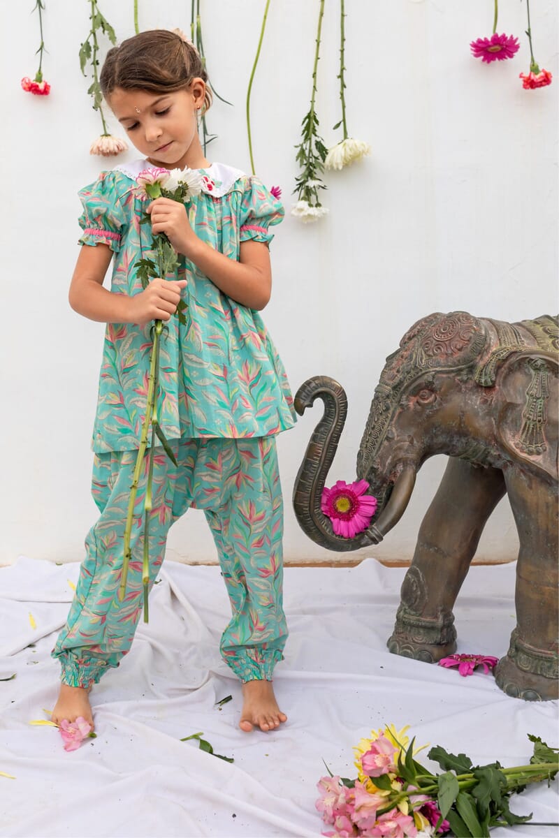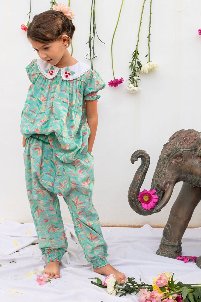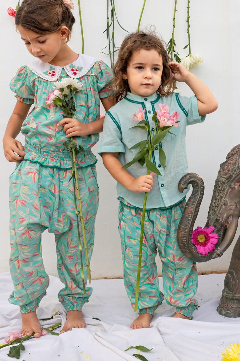 It smocked at the waist and ankles and offers great ease of movement to your child, while giving him a bohemian look.