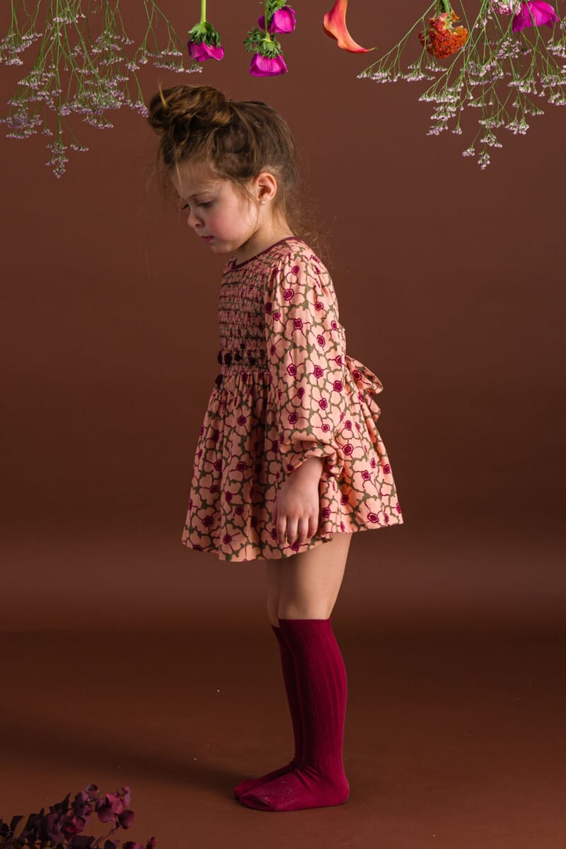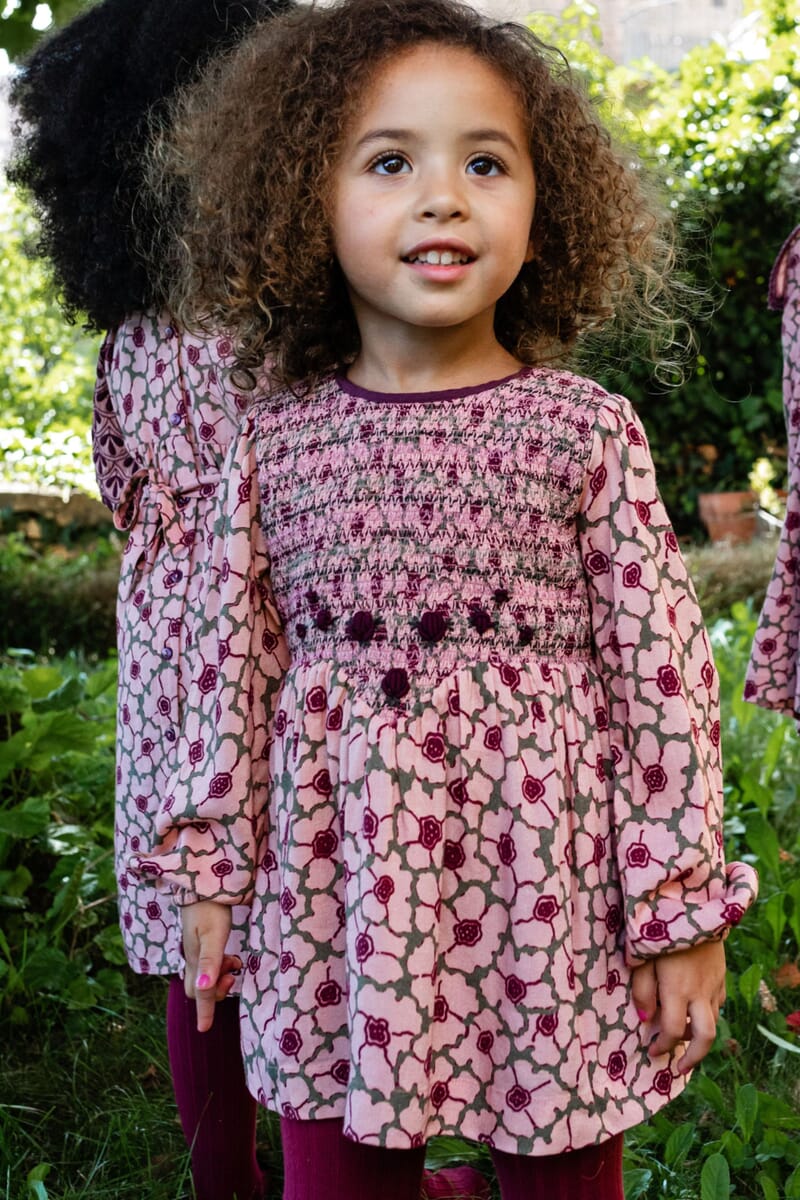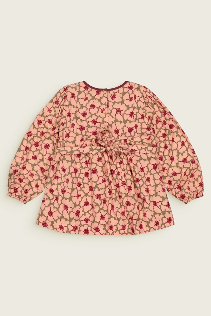 - Blouse/Robe courte, 100% Viscose ECOVERO®, Imprimé Blockprint, Doublure unie en voile de coton bio, Entièrement smockée sur le devant, Broderies main, Manches longues élastiquées, Boutons dorés et ceinture dans le dos.