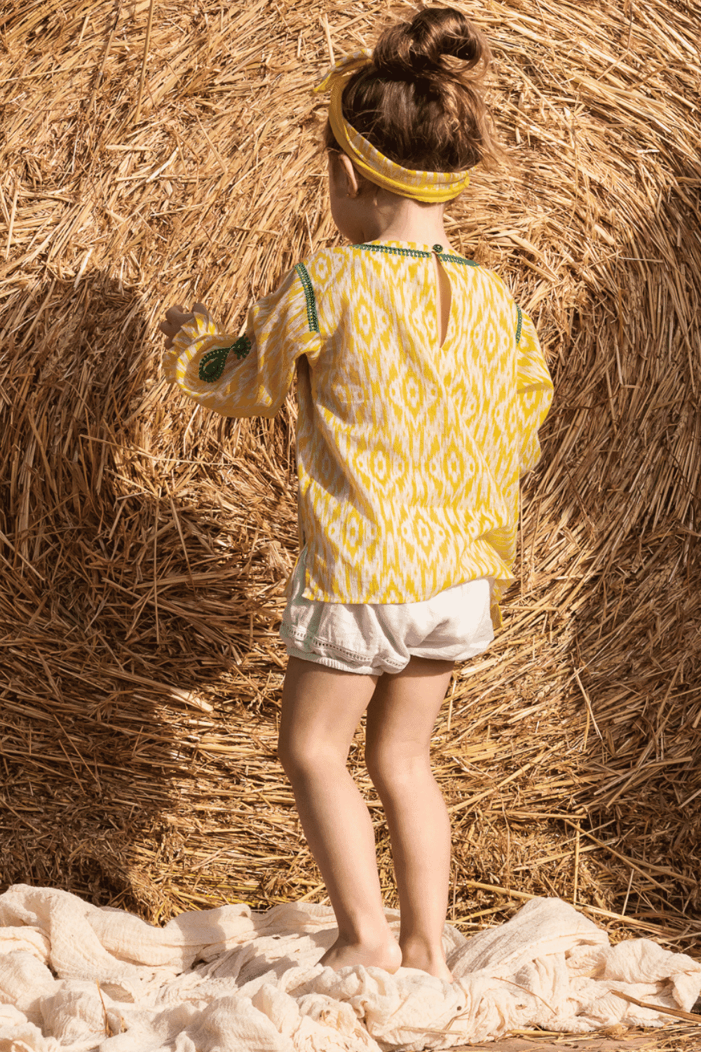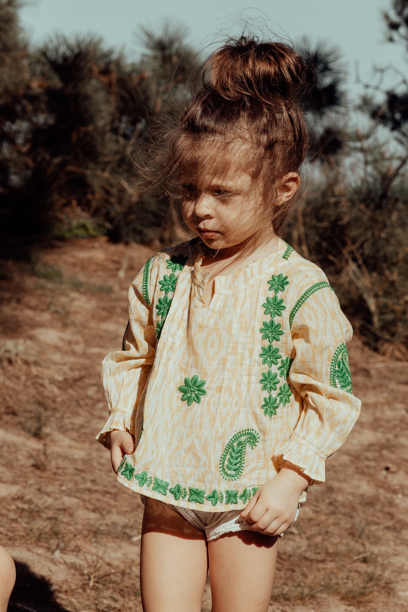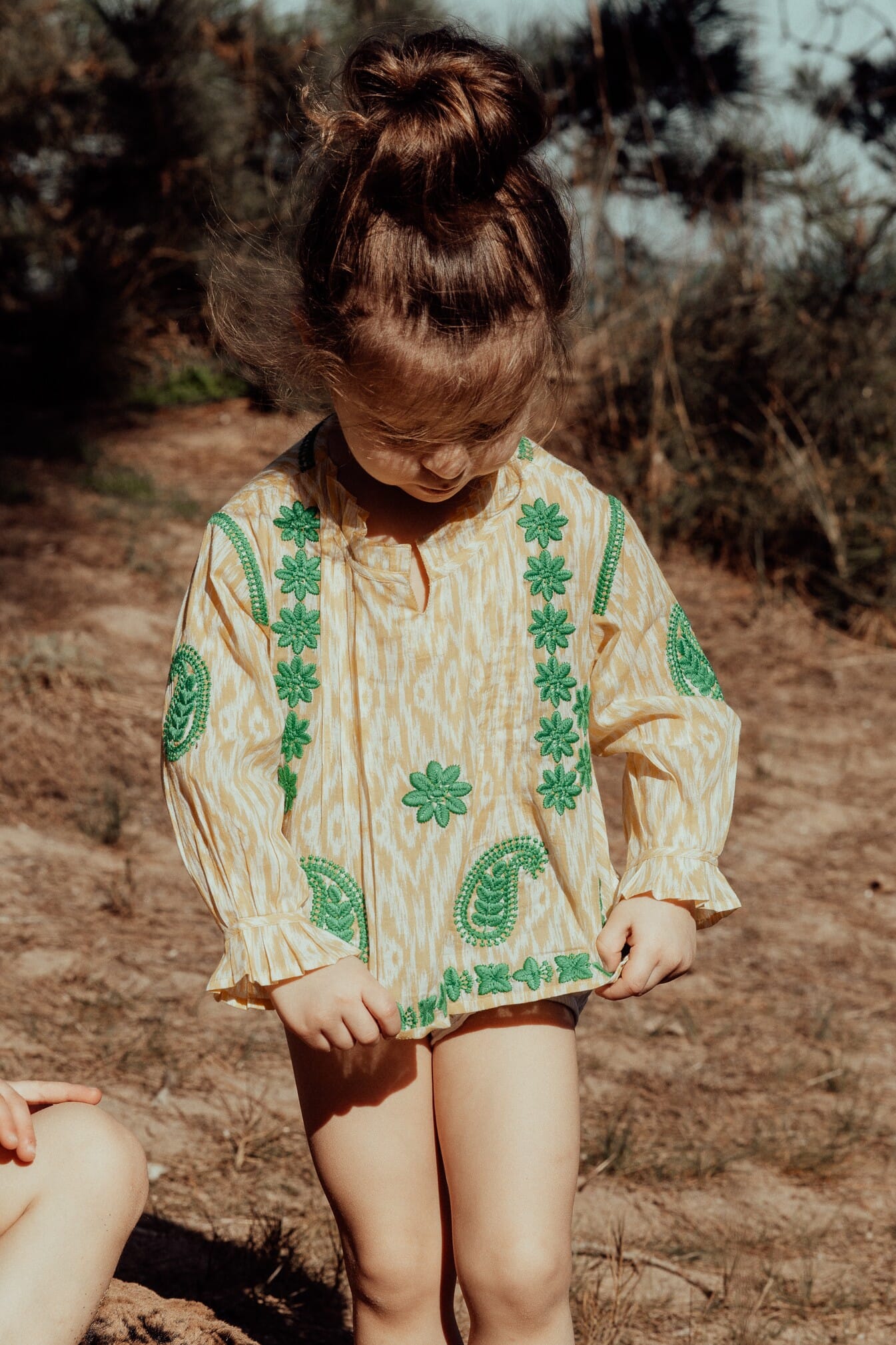 Notre blouse brodée iconique à manche longue en Voile de coton biologique.