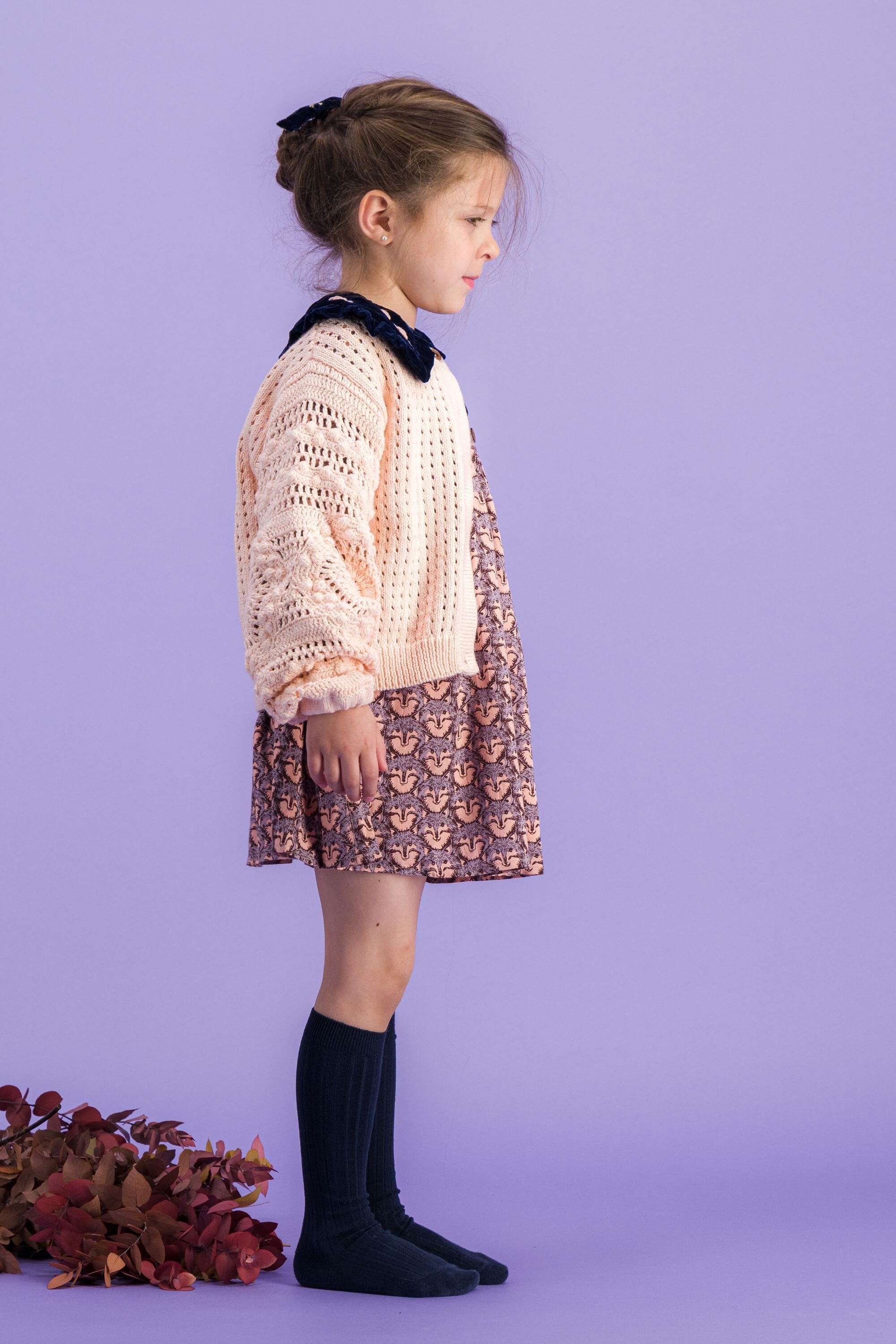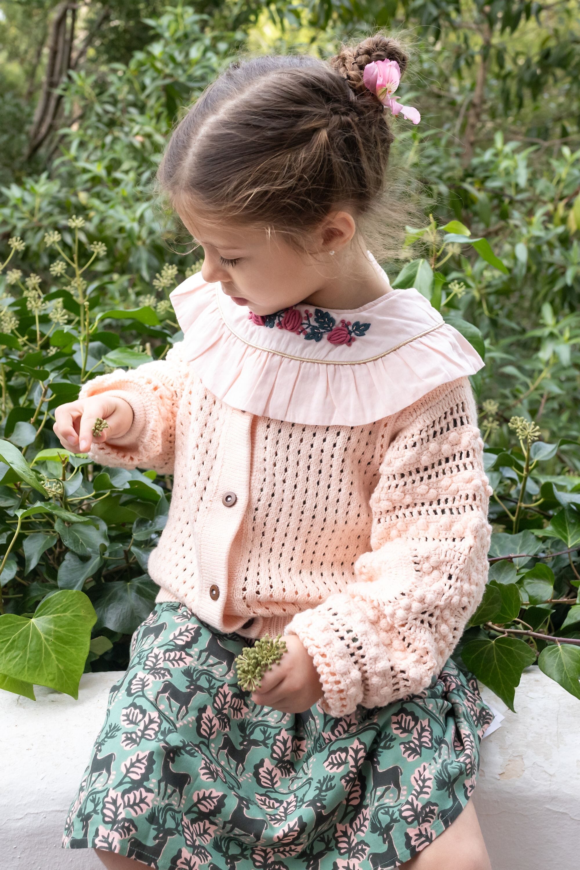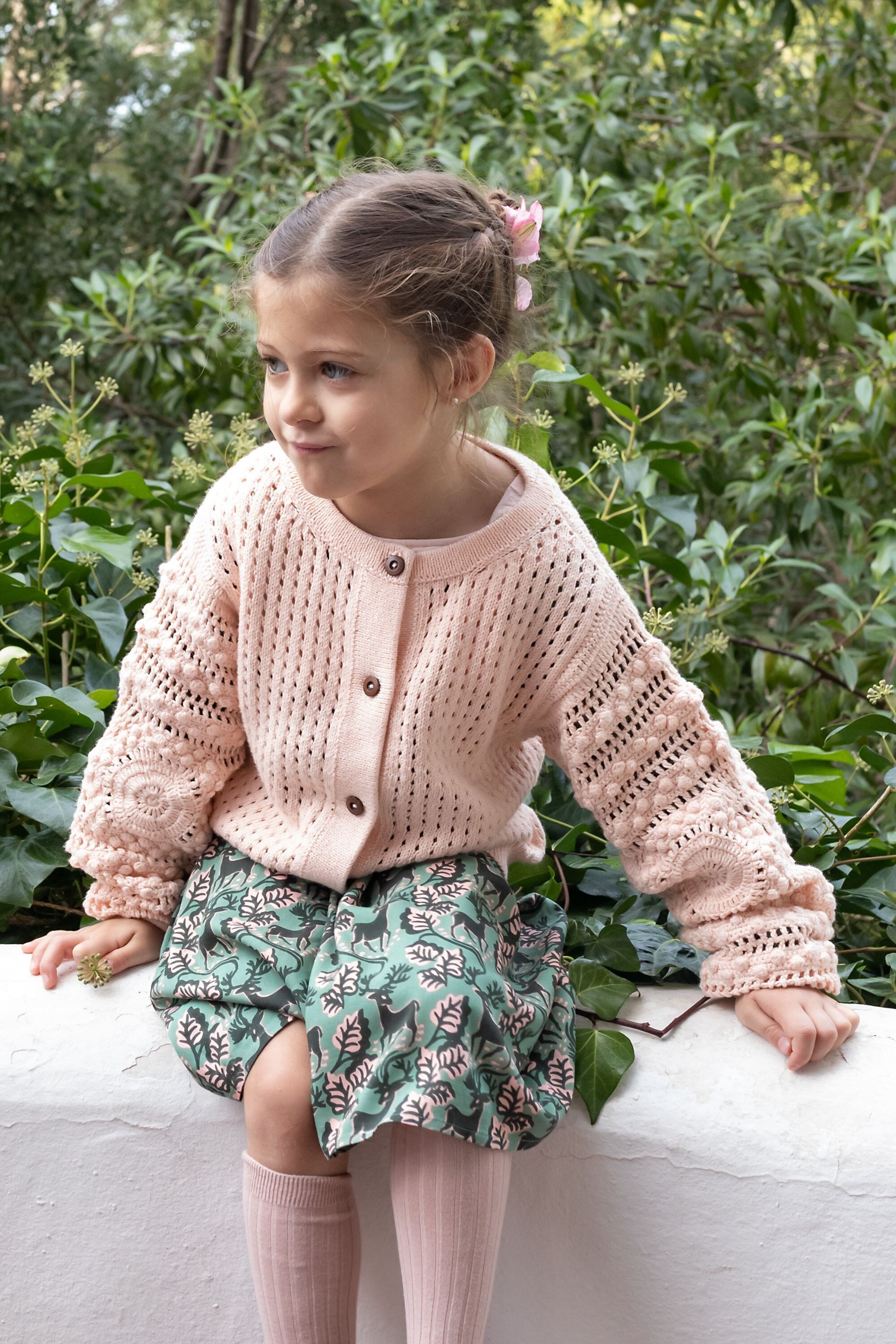 - Cardigan, 100% coton, Light pink, Tricoté main Crochet tricoté main sur les manches, Maille ajourée sur le devant et le derrière, Bouton en bois.