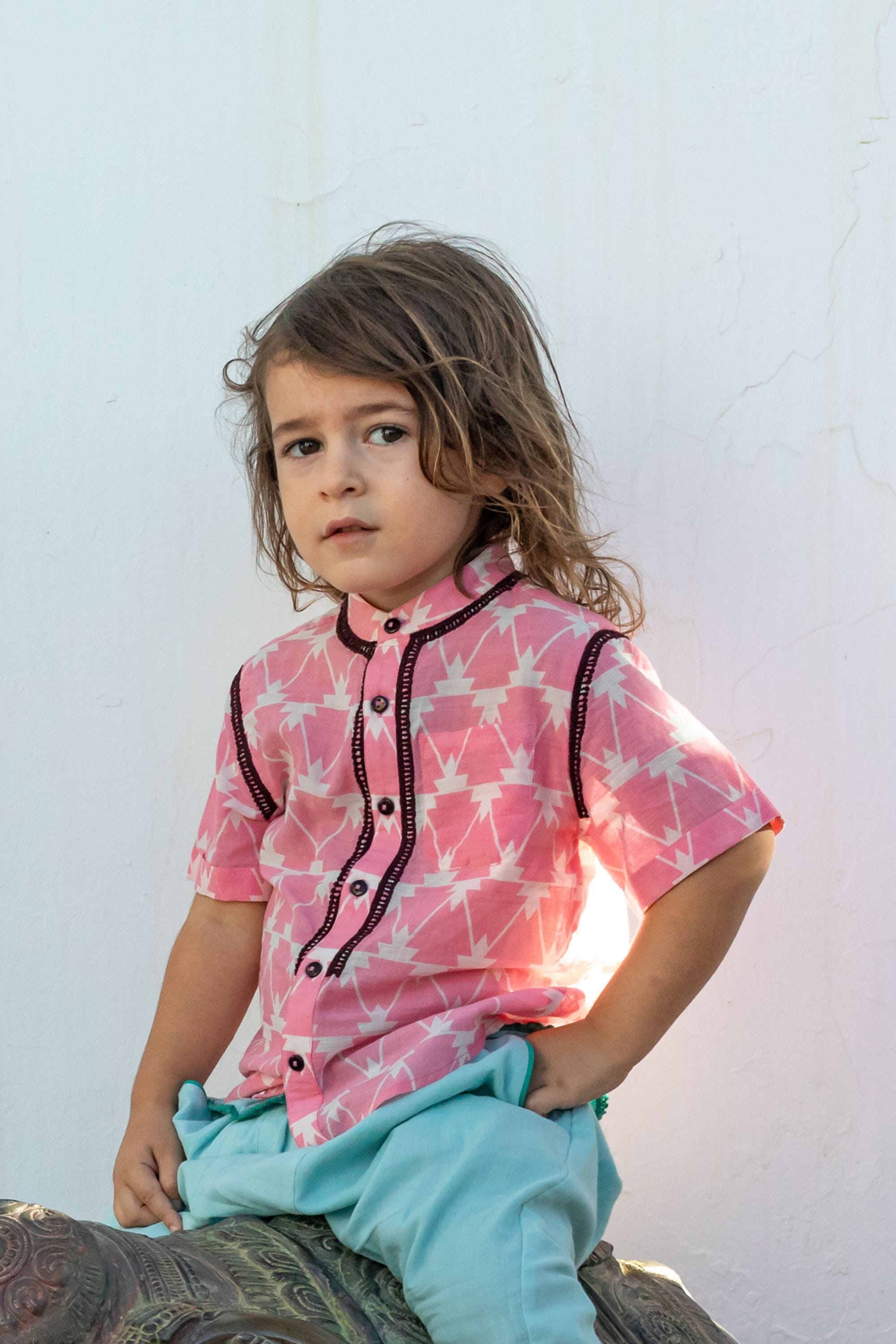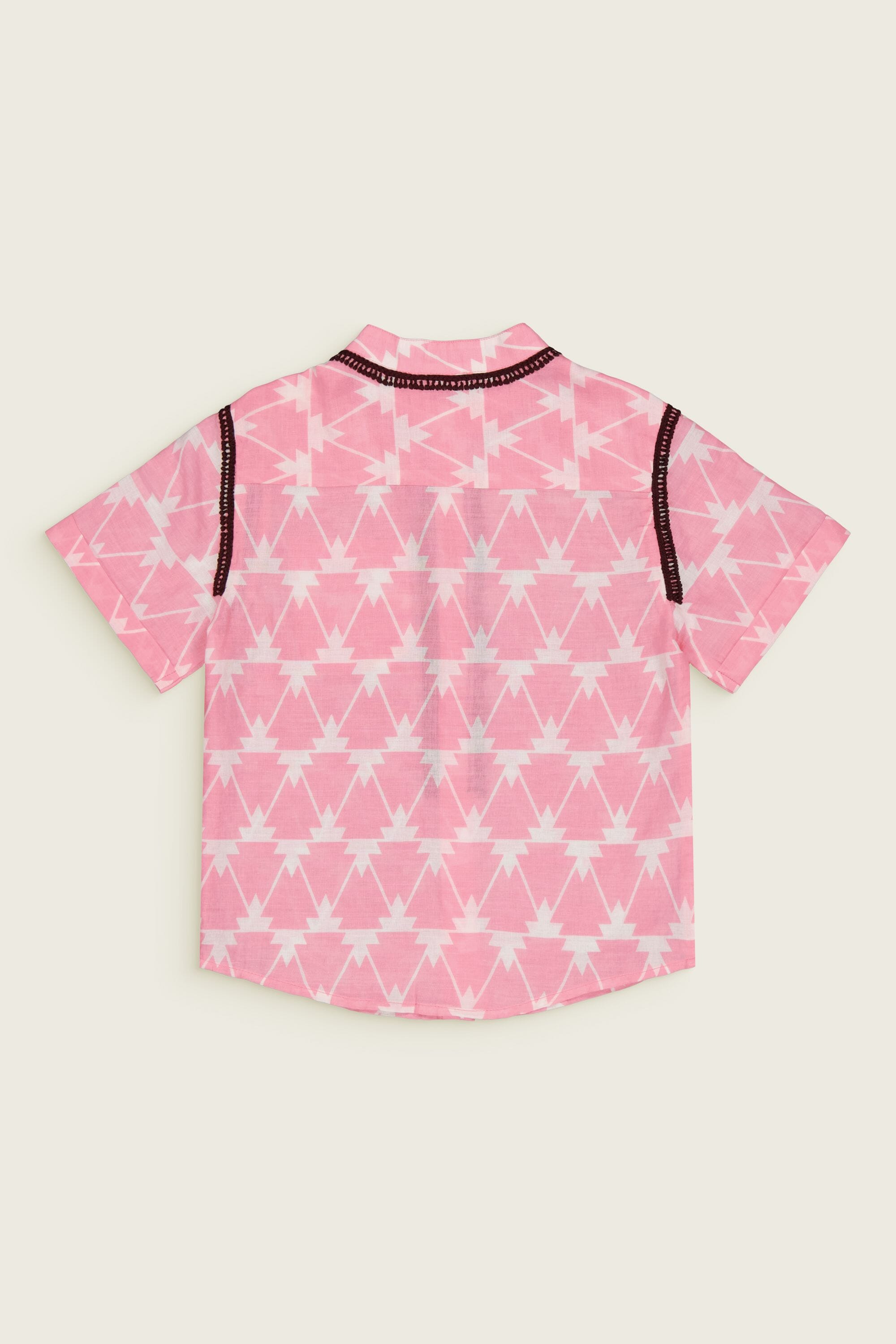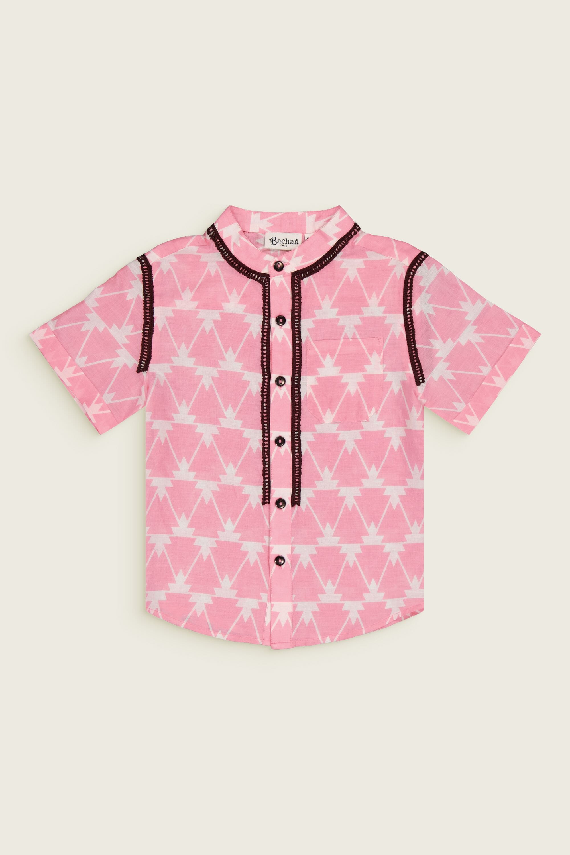 - Chemise, 100% coton bio, Block print, Col officier, Broderies le long du col, de la patte de boutonnage et de l’emmanchure, Poche poitrine, Manches courtes, Boutons contrastés.