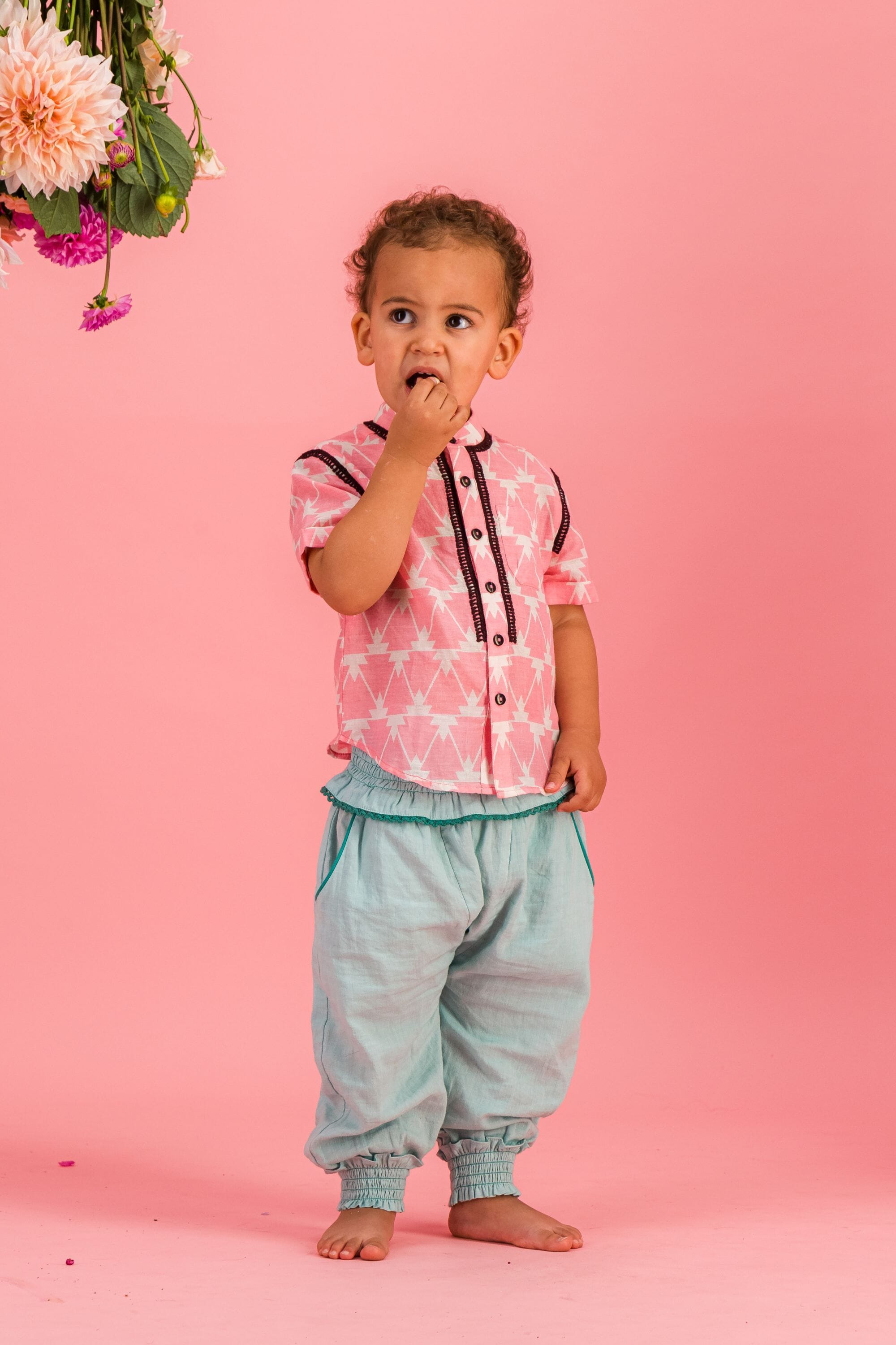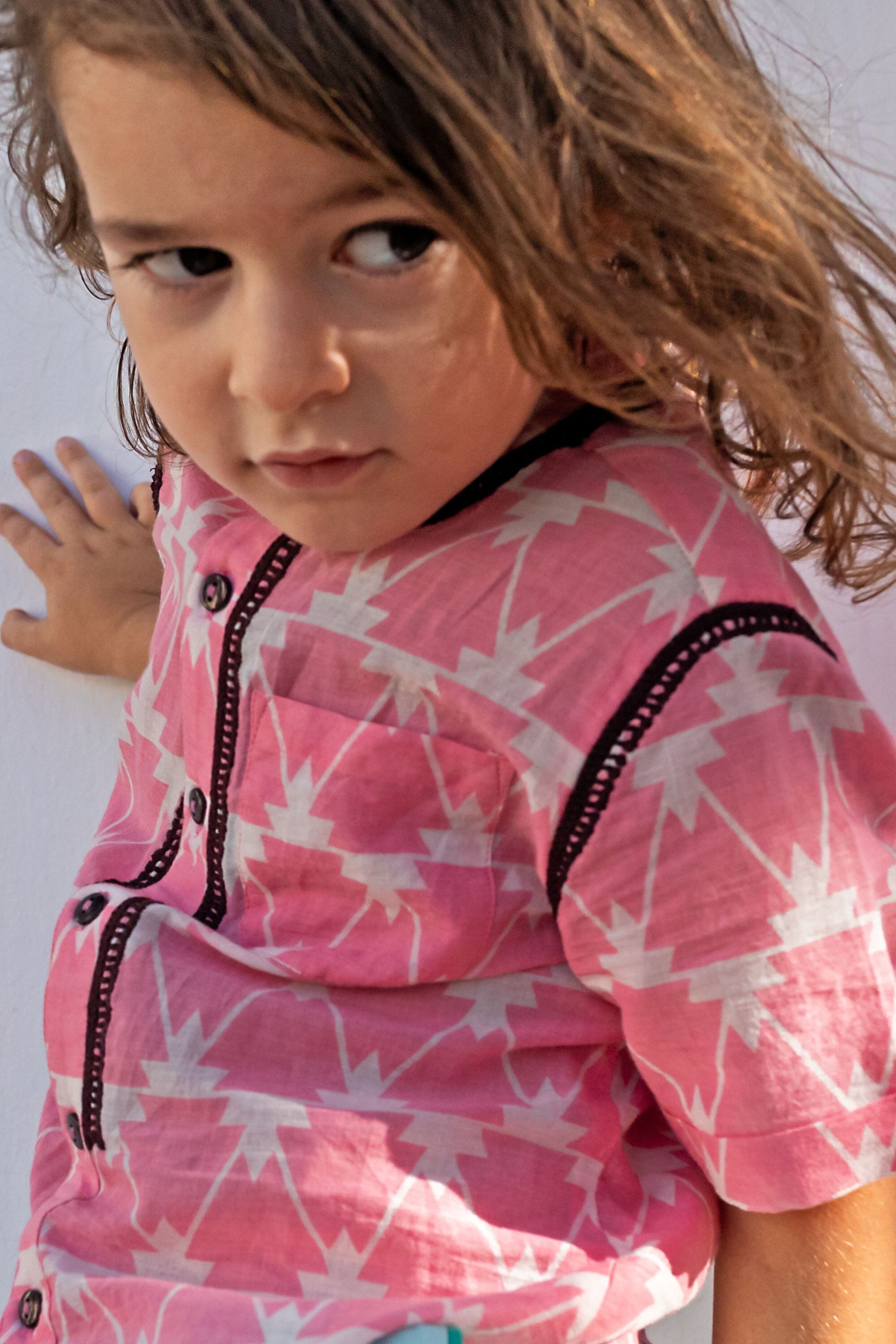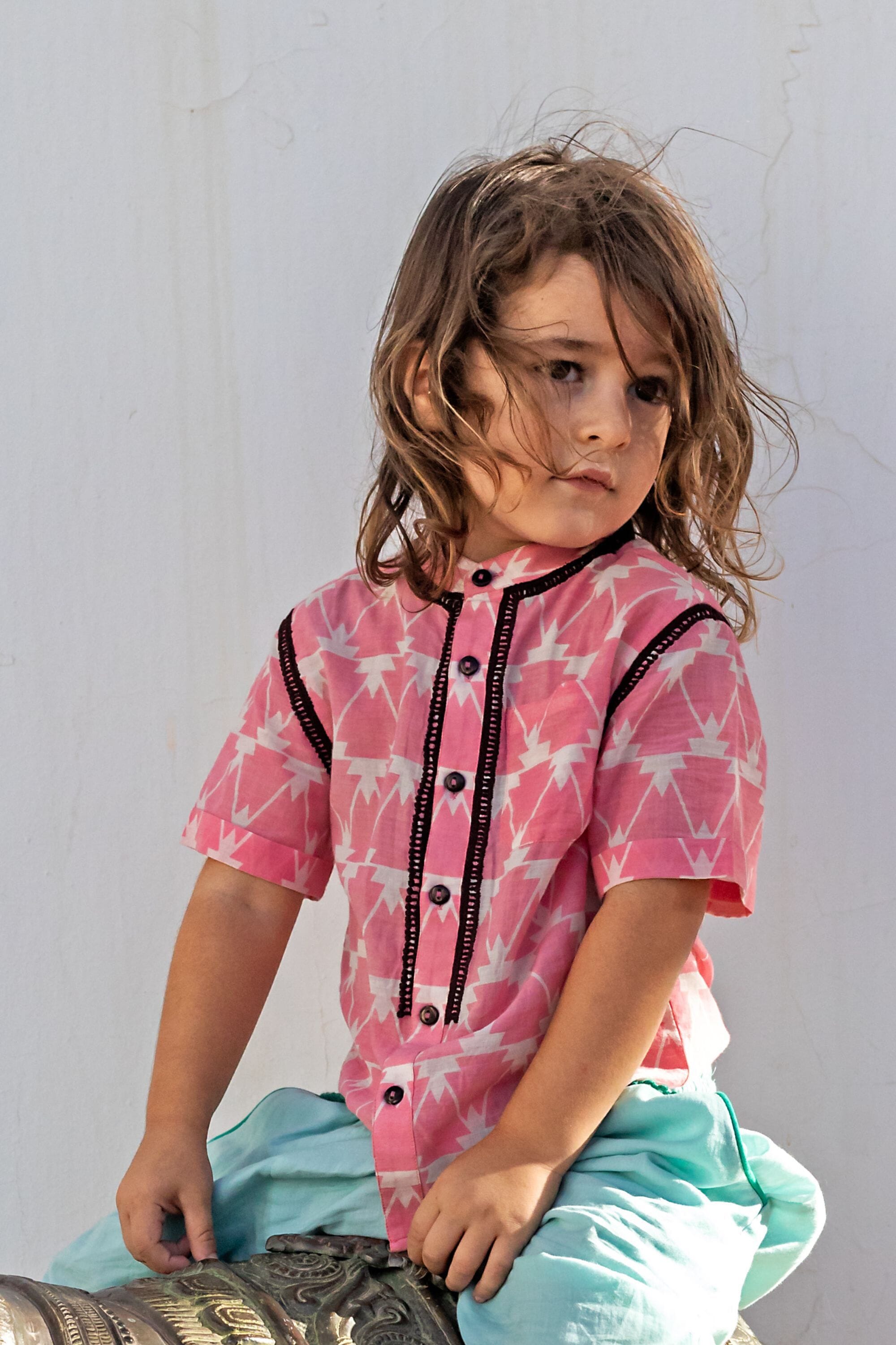 - Chemise, 100% coton bio, Block print, Col officier, Broderies le long du col, de la patte de boutonnage et de l’emmanchure, Poche poitrine, Manches courtes, Boutons contrastés.