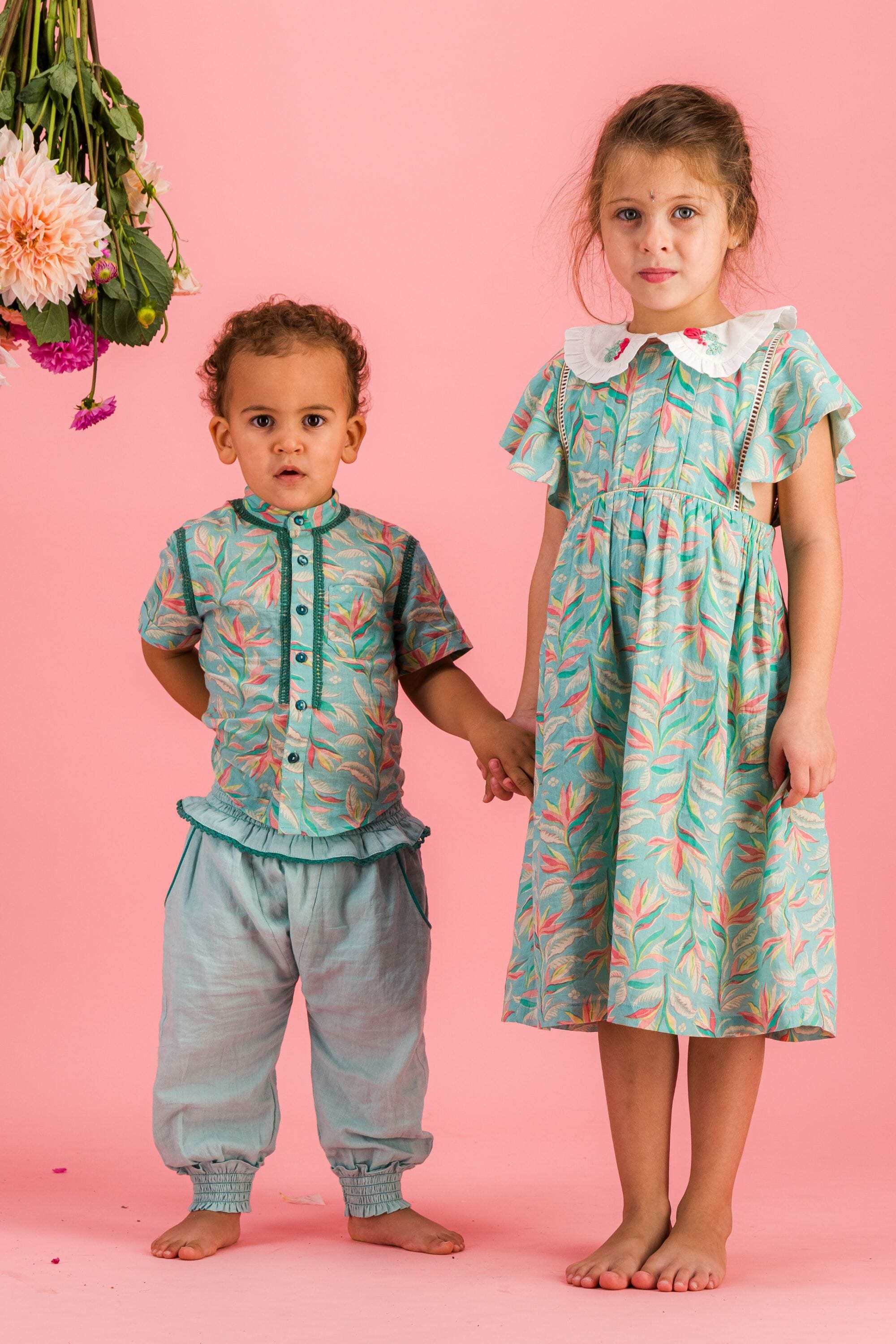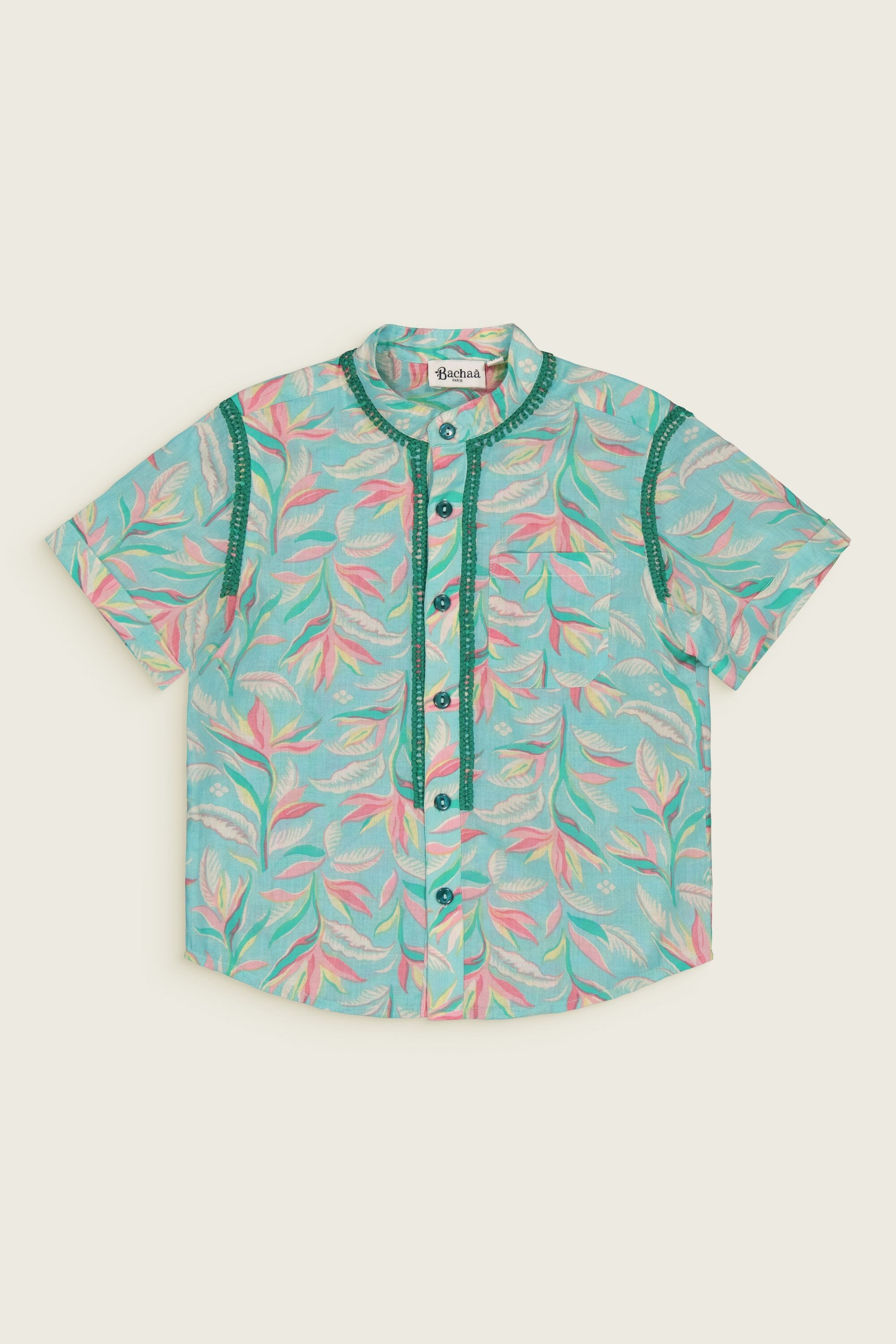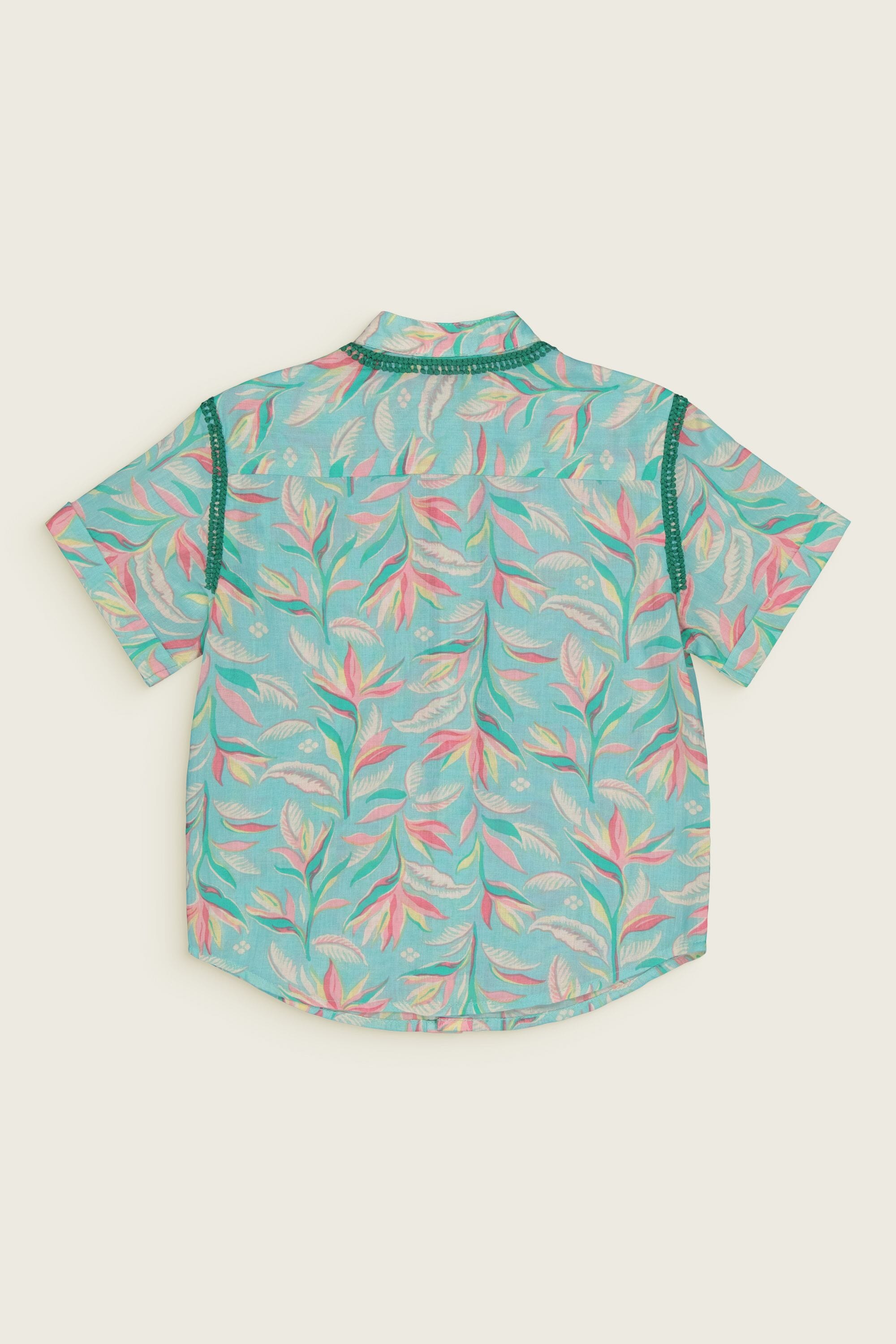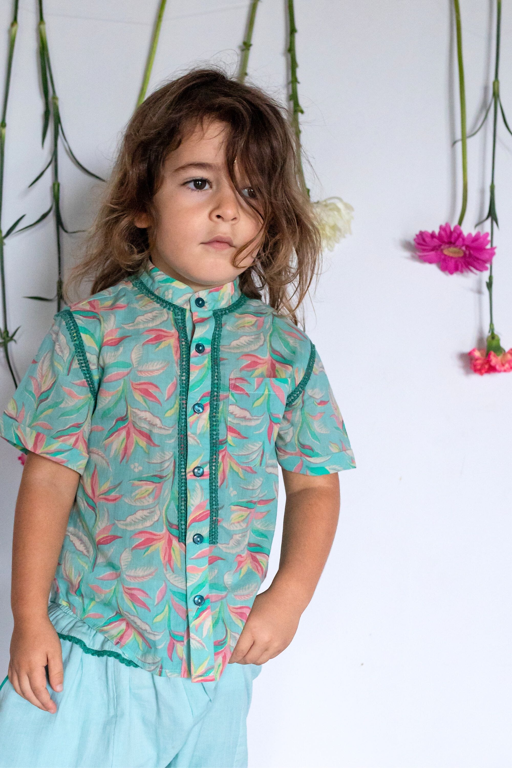 Une chemise en voile de coton bio à la fois élégante et décontractée avec des broderies le long du col, de la patte de boutonnage et de l’emmanchure.