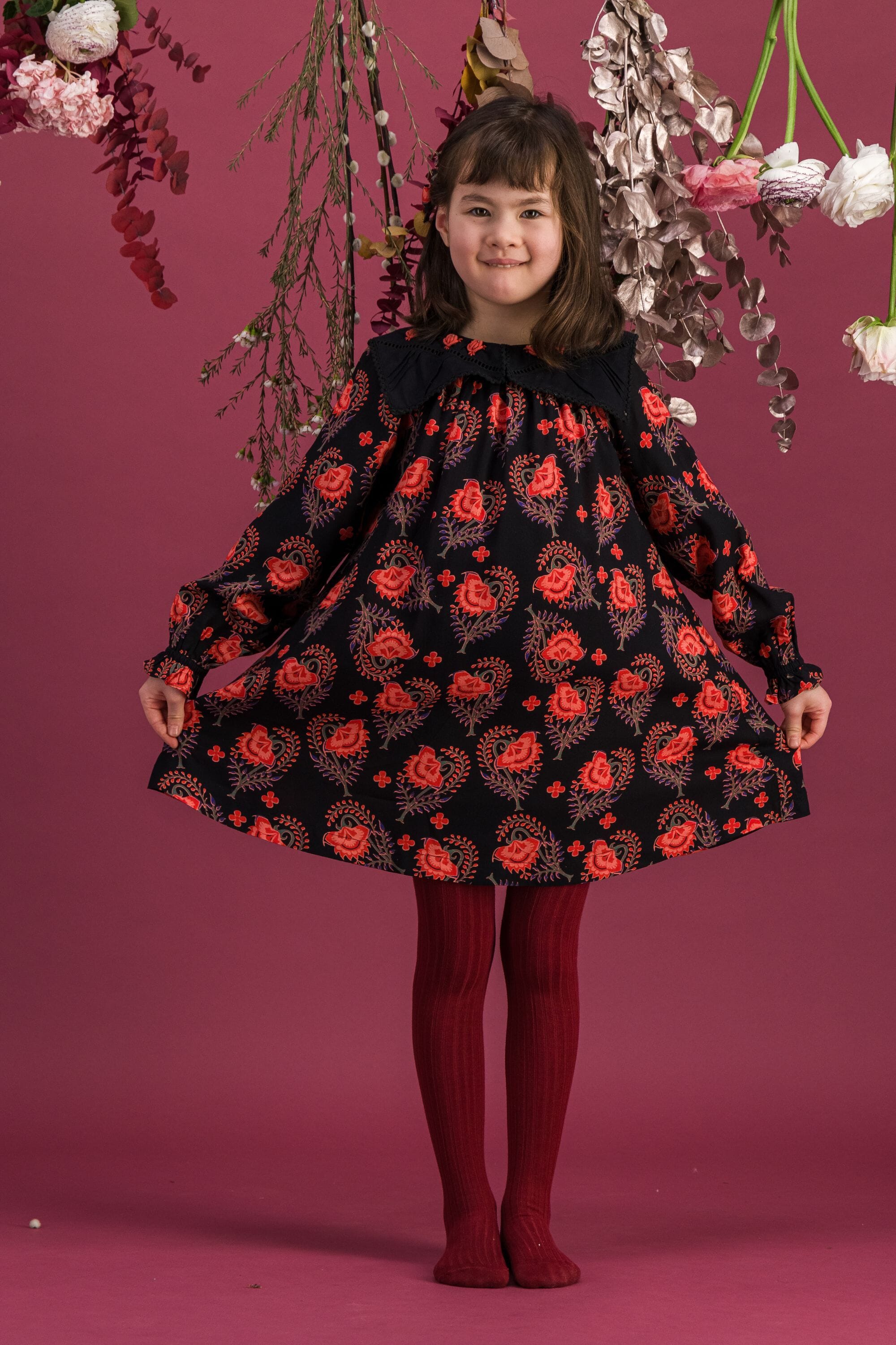 Une Robe en Viscose ECOVERO® avec un col brodé main finition dentelle.
