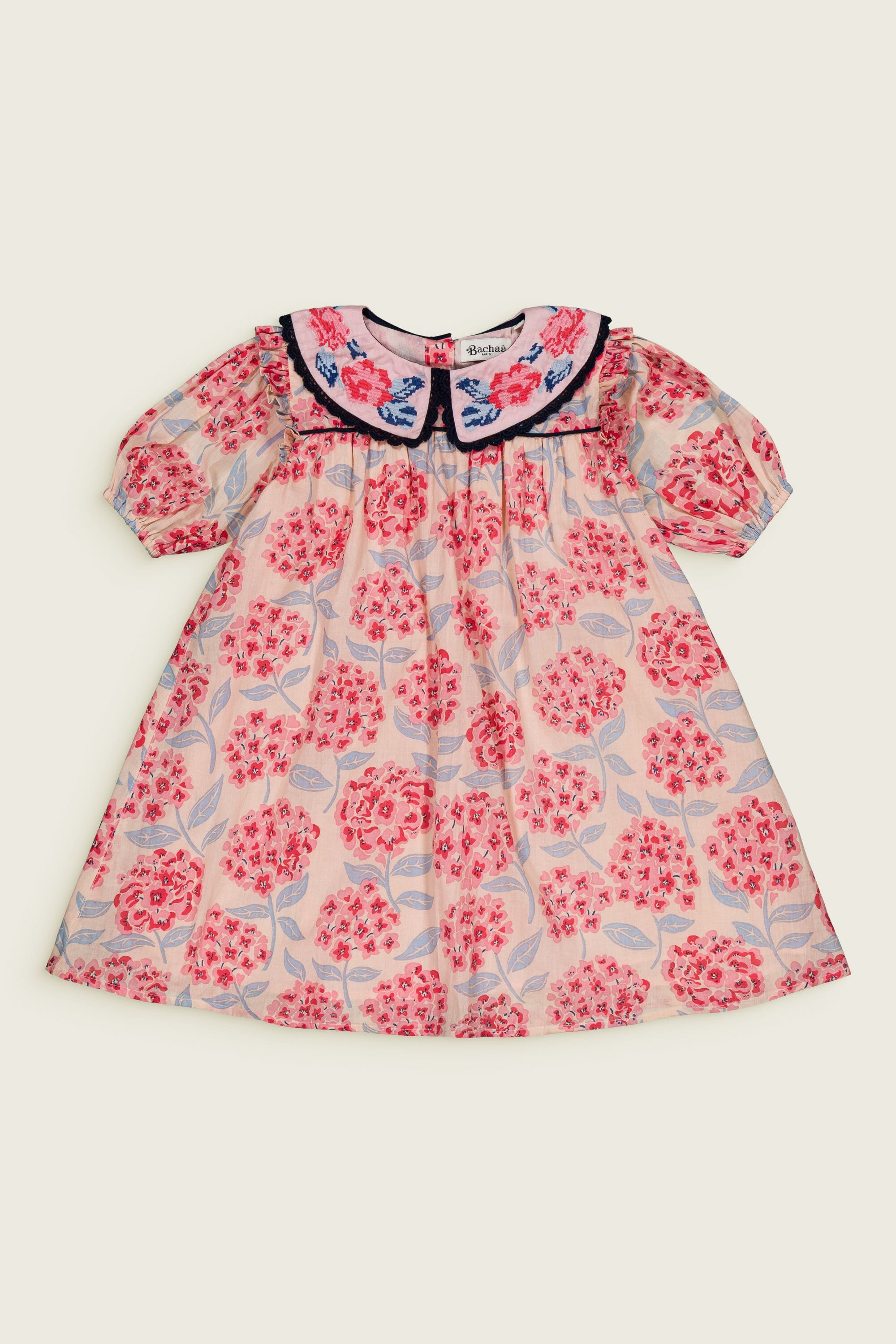 Une Robe en coton bio avec un magnifique col brodé finition dentelle.