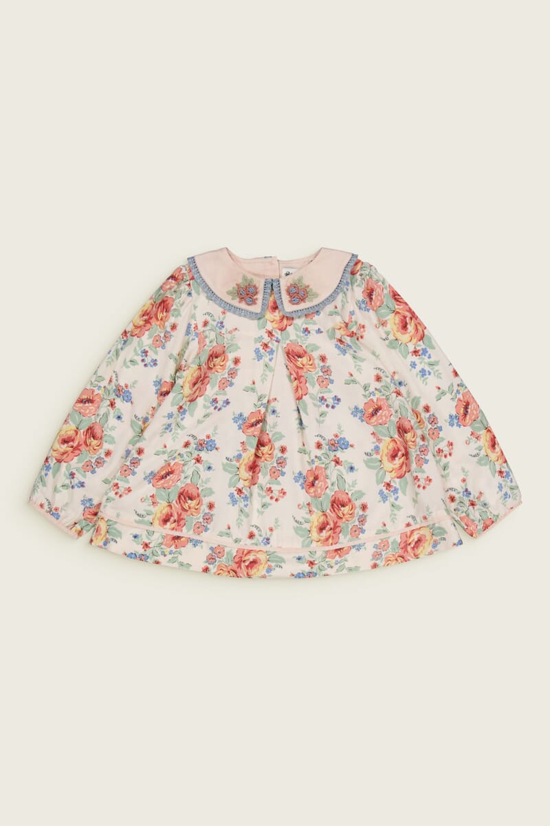 Une blouse en Viscose ECOVERO® avec un magnifique col brodé main finition dentelle.