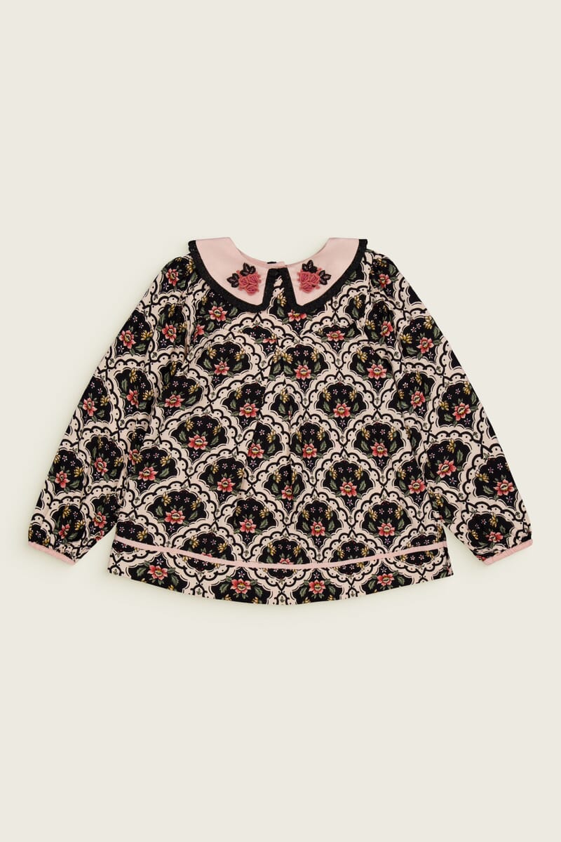 Une blouse en Viscose ECOVERO® avec un magnifique col brodé main finition dentelle.