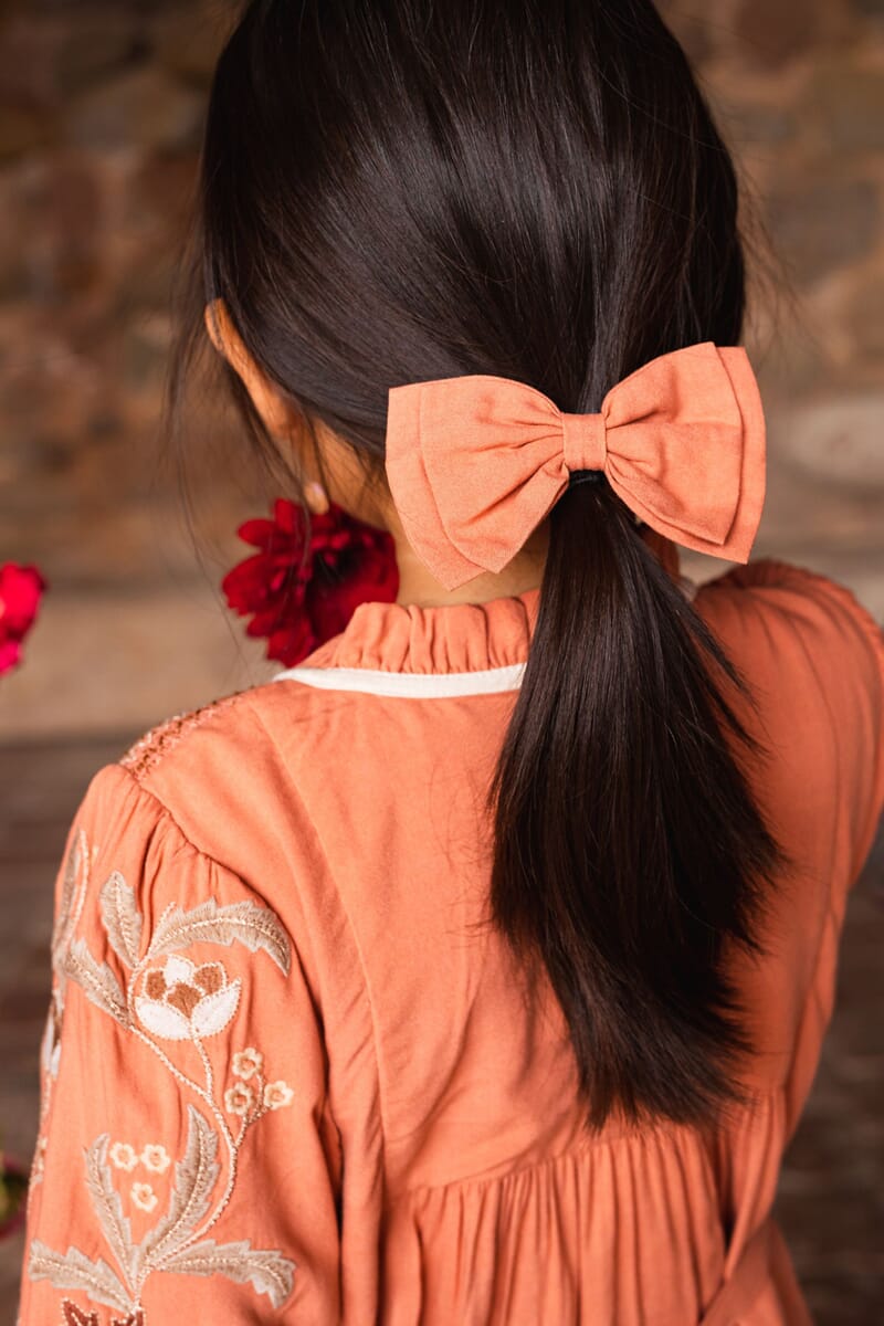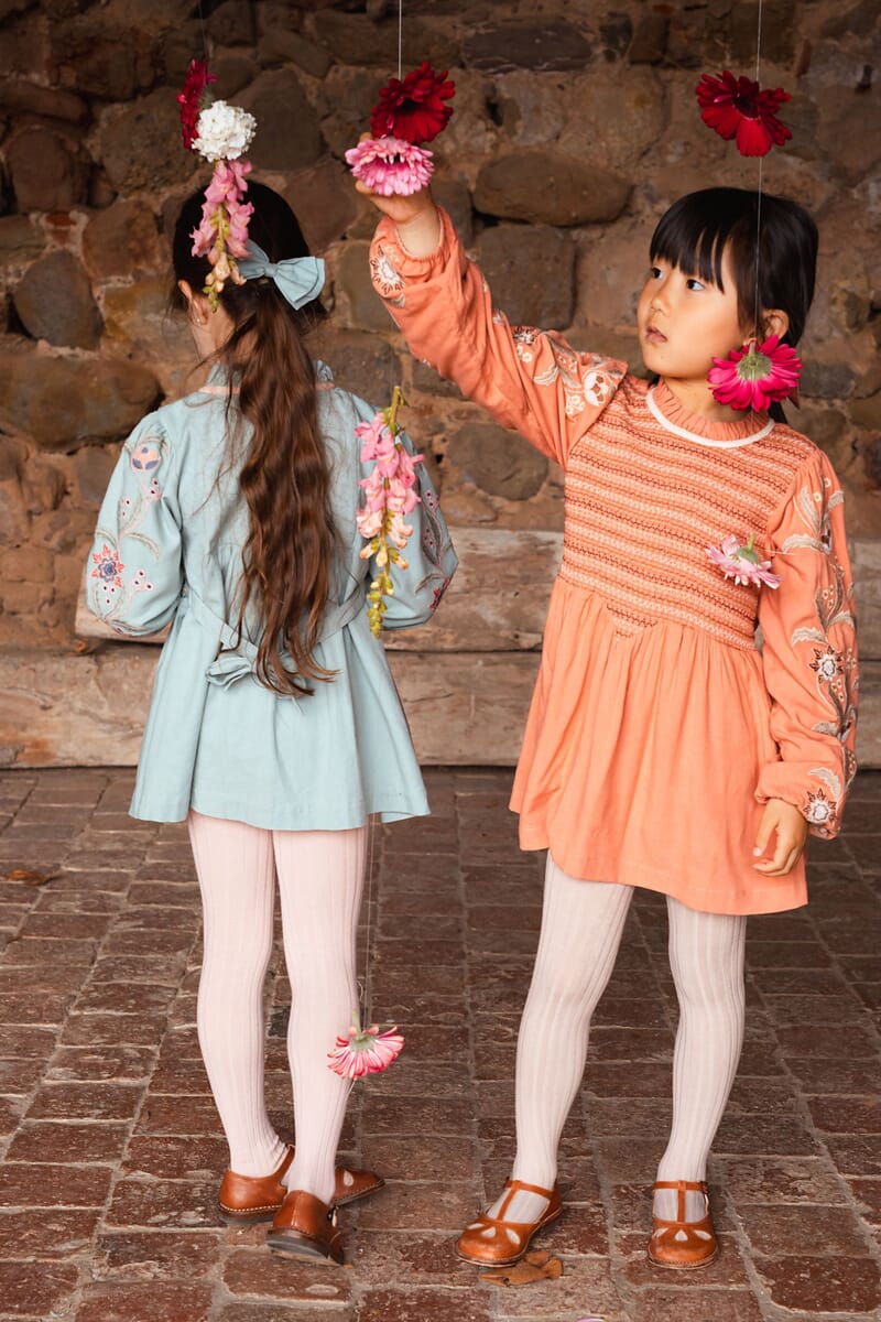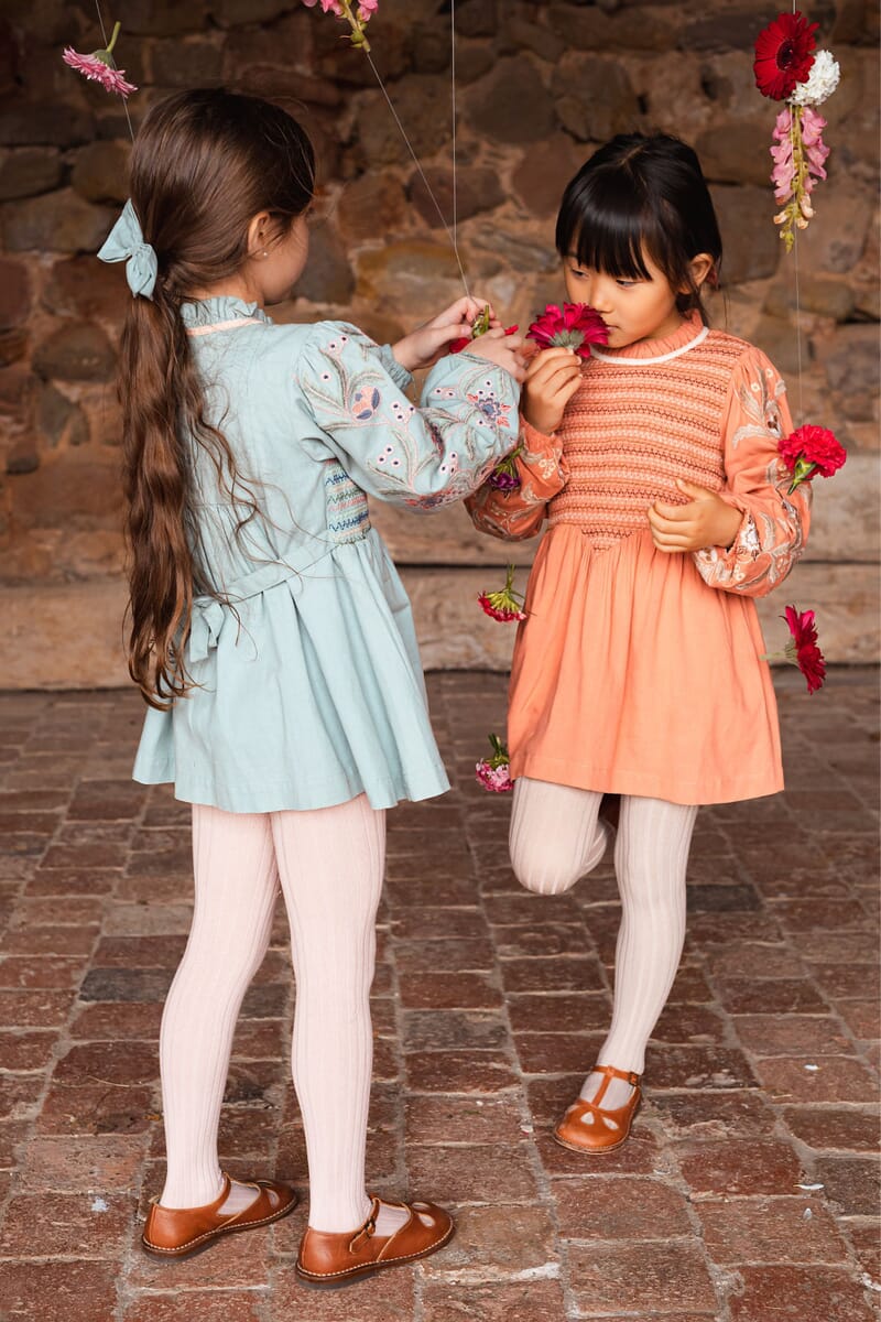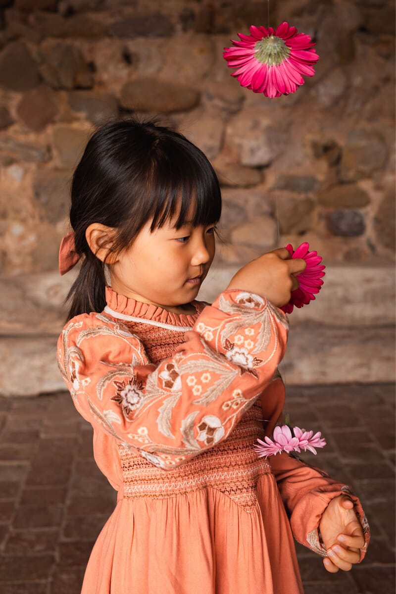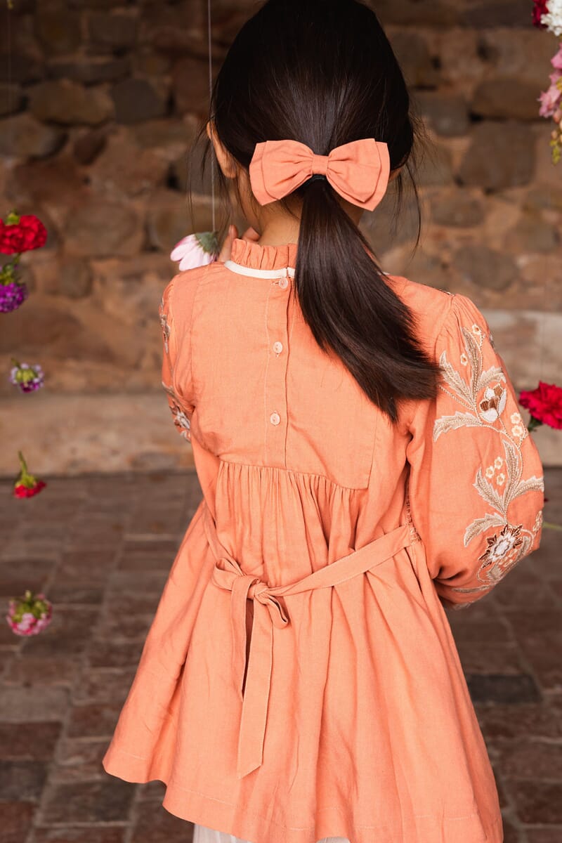 Une ceinture nouée dans le dos permet d’ajuster la robe quelle que soit la morphologie de votre enfant.