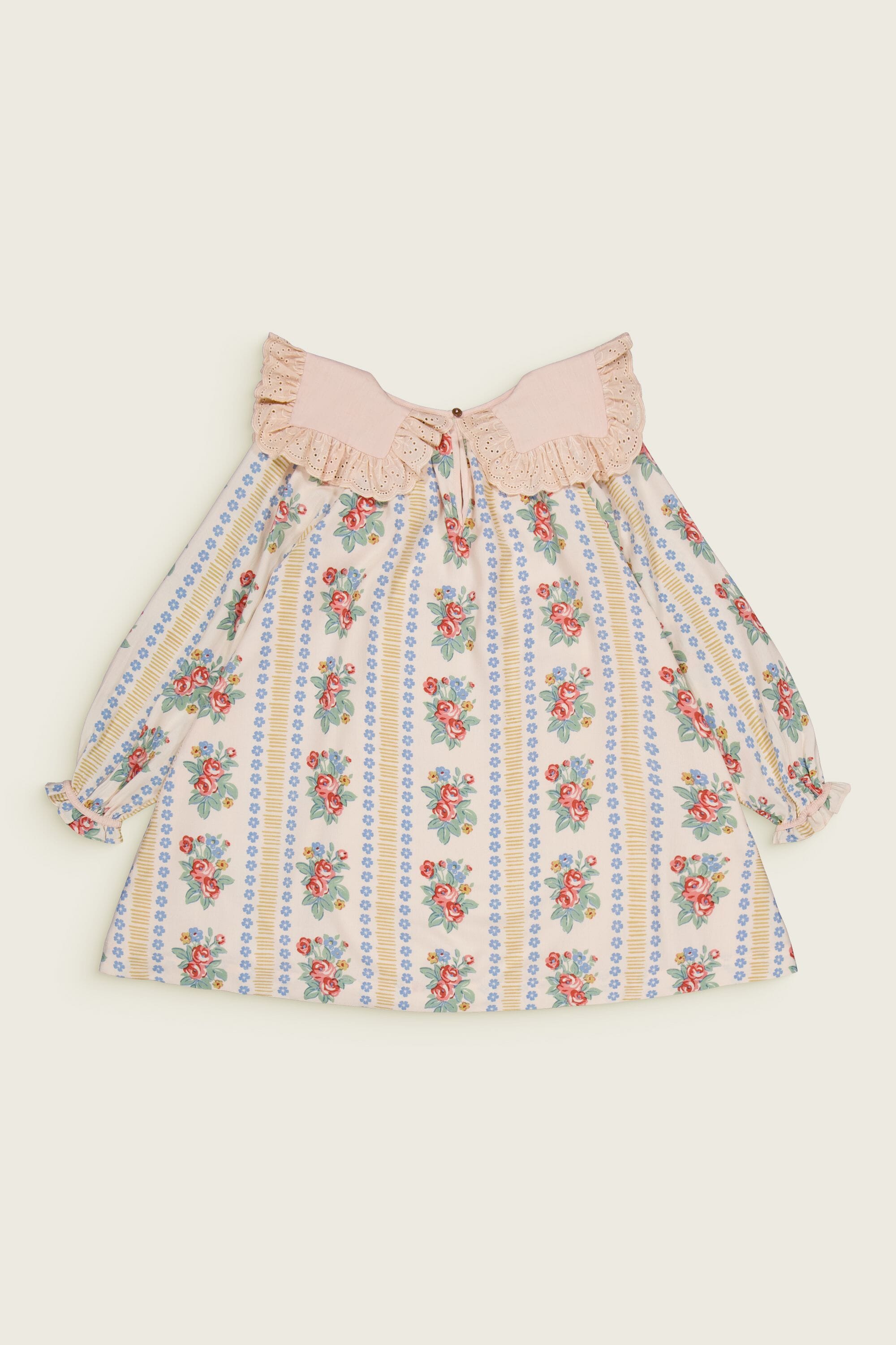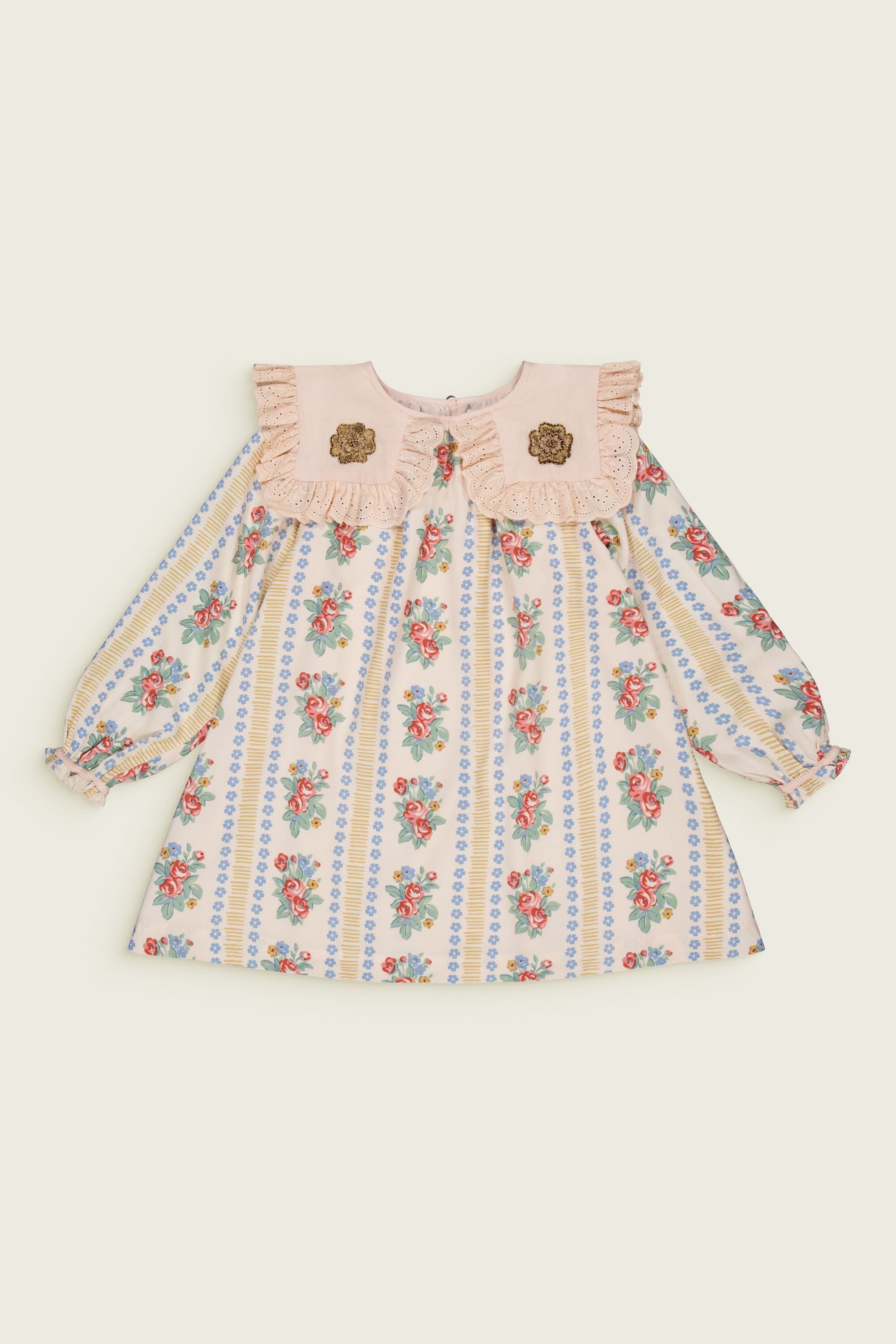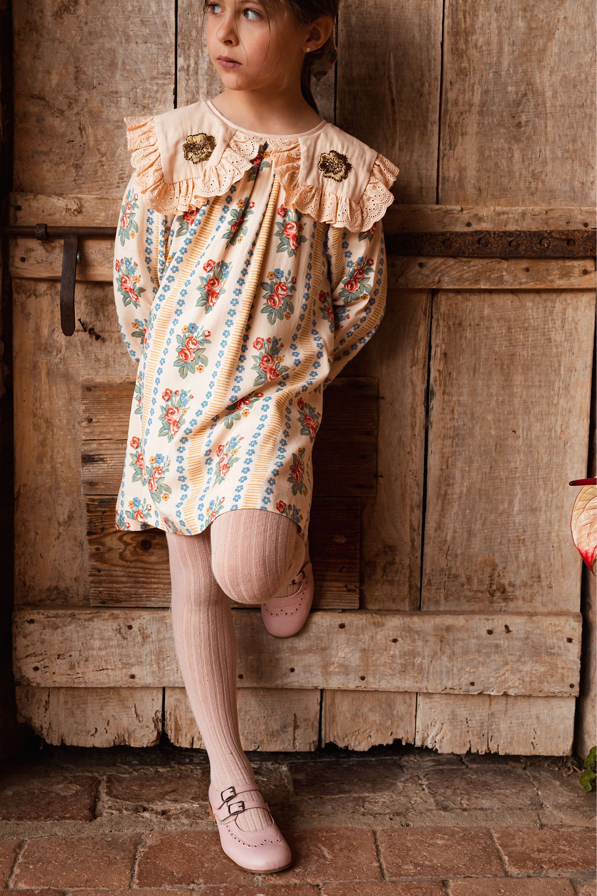 Une Robe en Viscose ECOVERO® avec des broderies main dorées et des broderies anglaises sur le col.