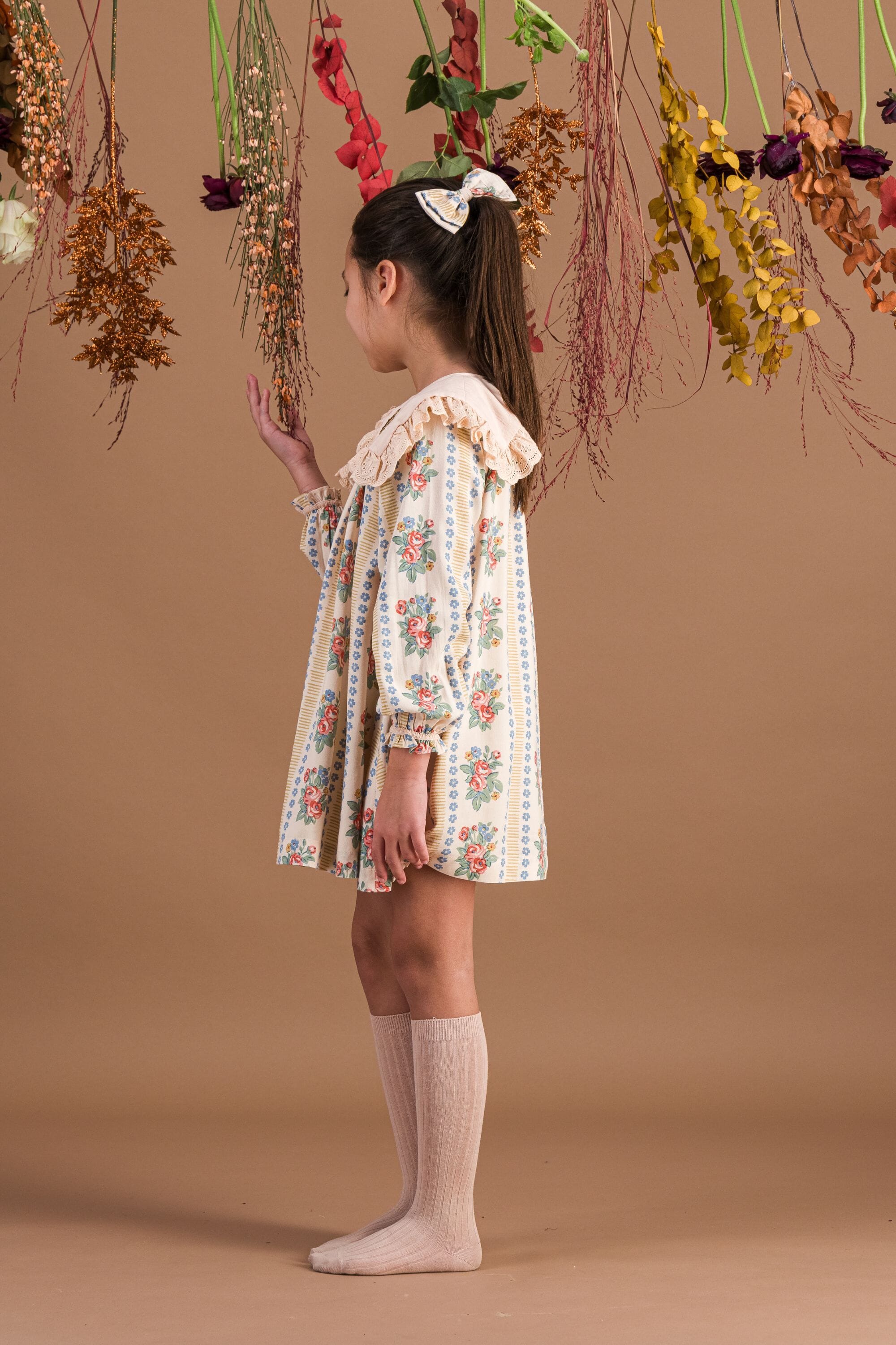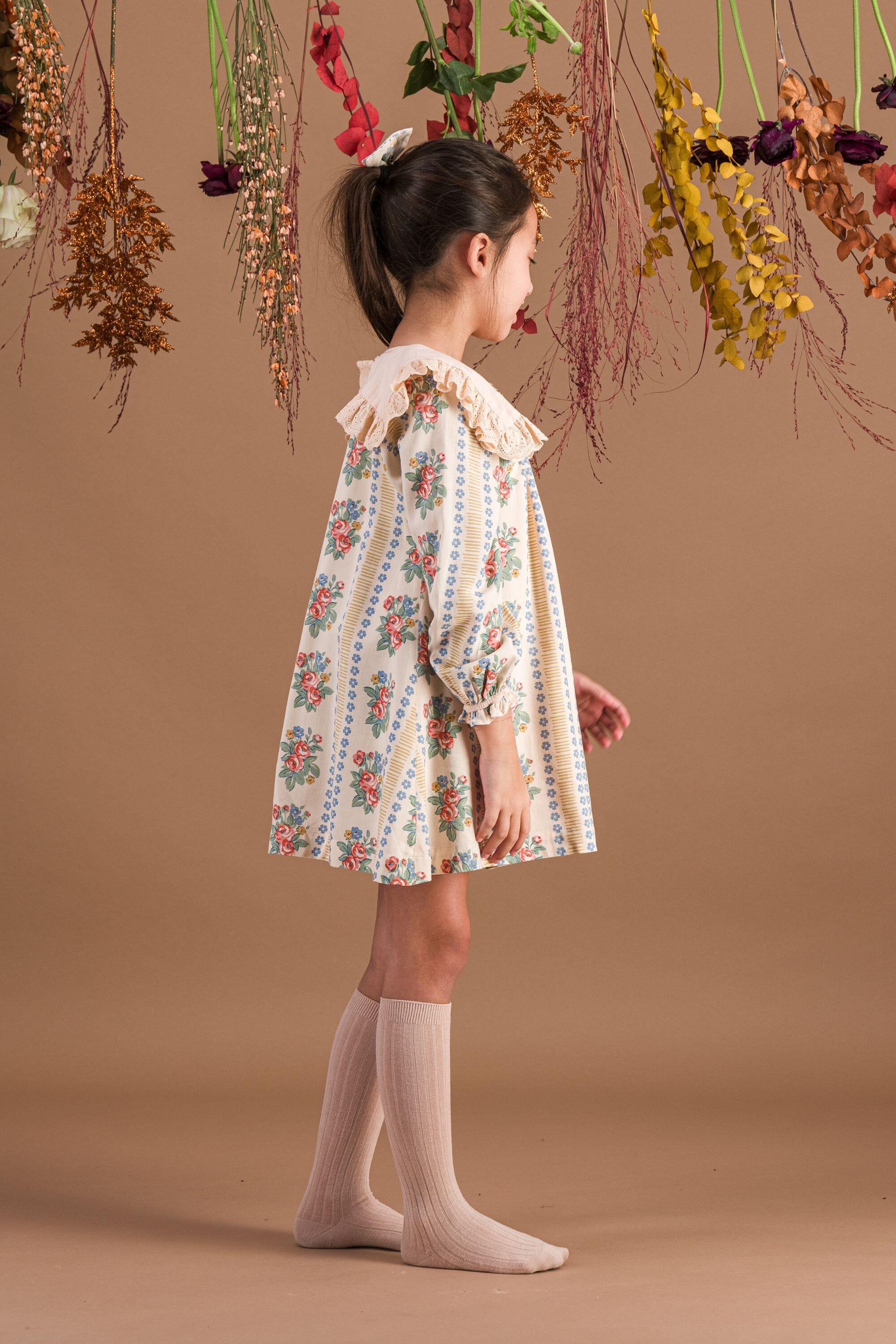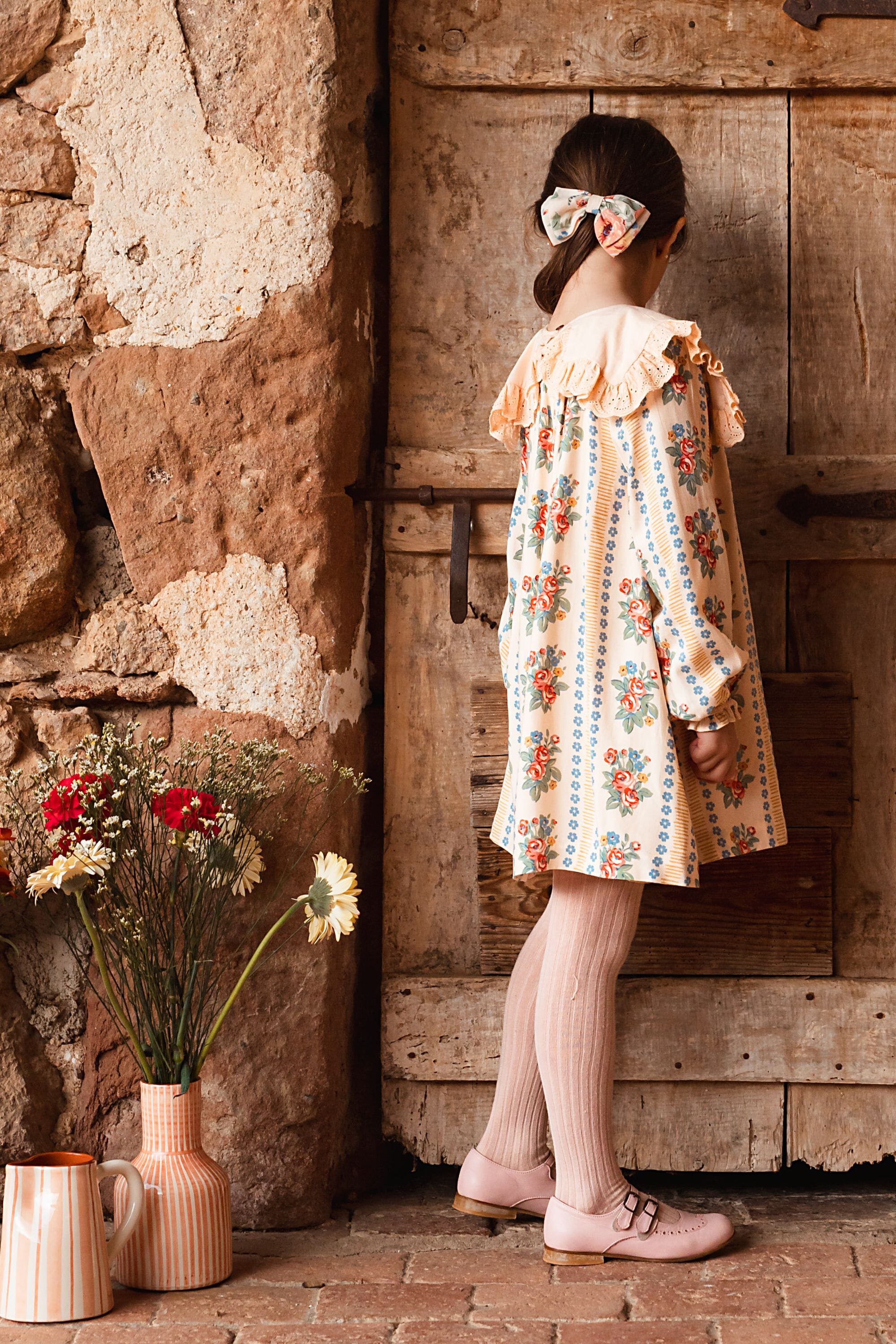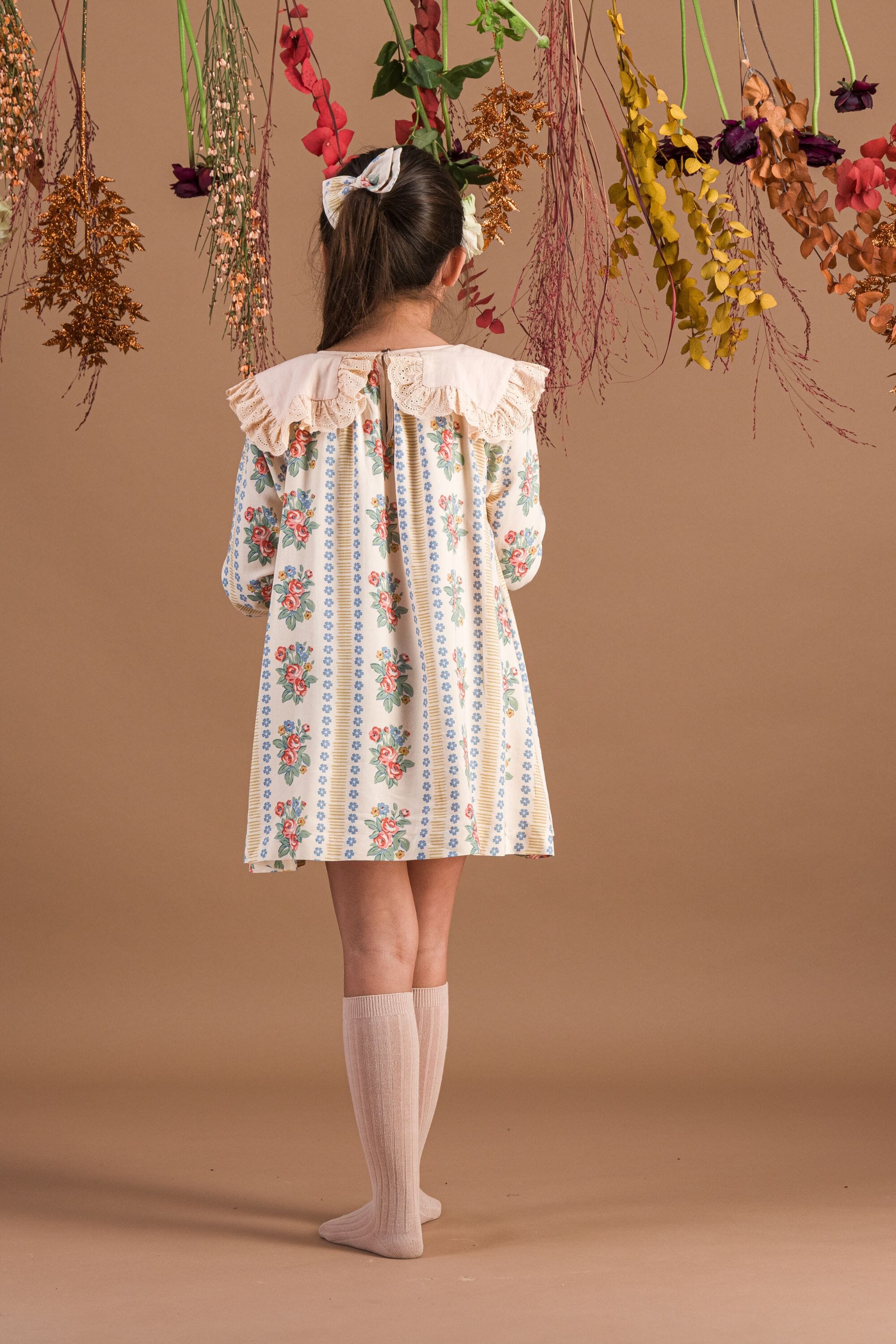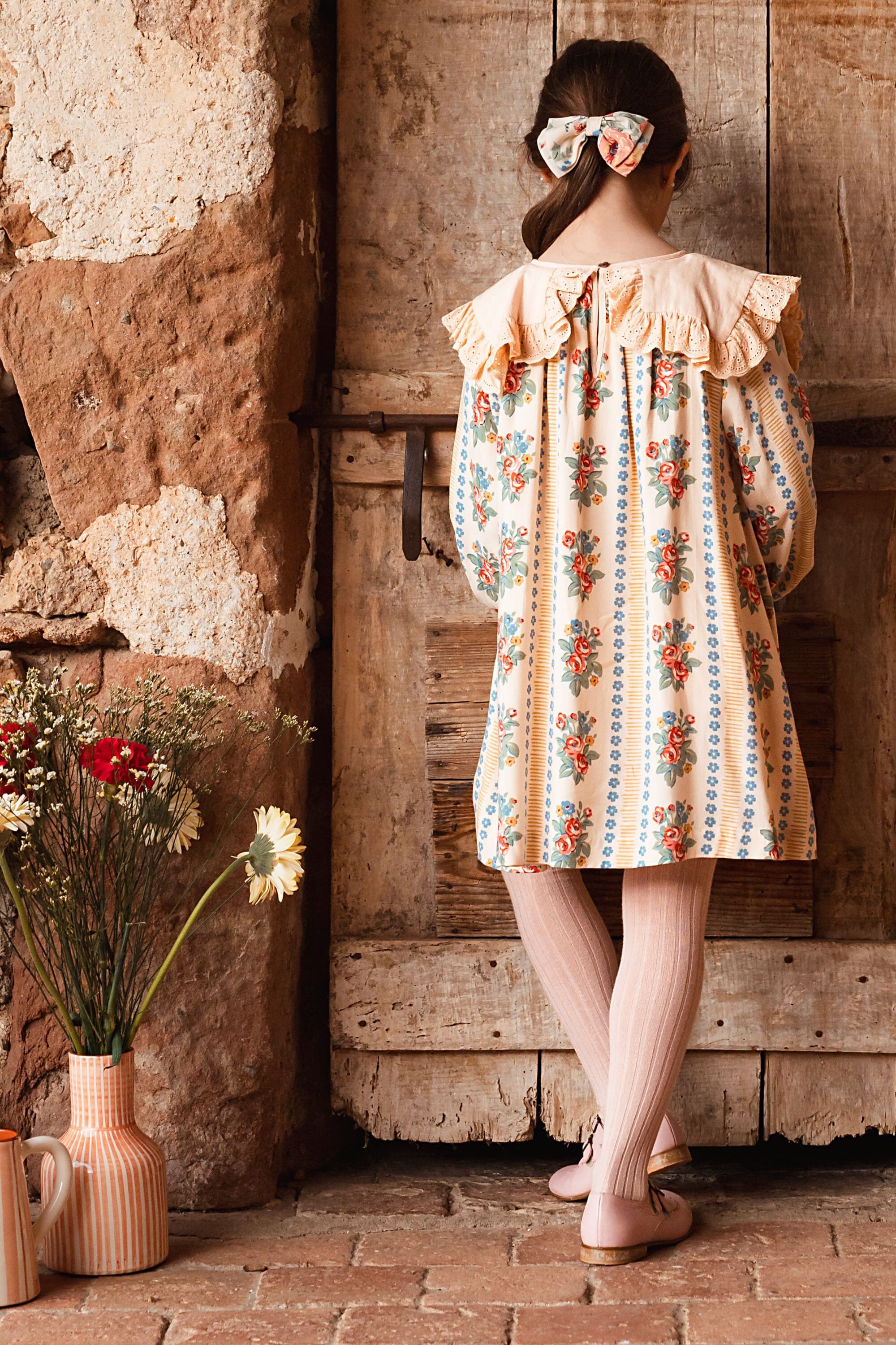 Cette robe est entièrement doublée d’un voile de coton bio uni.
