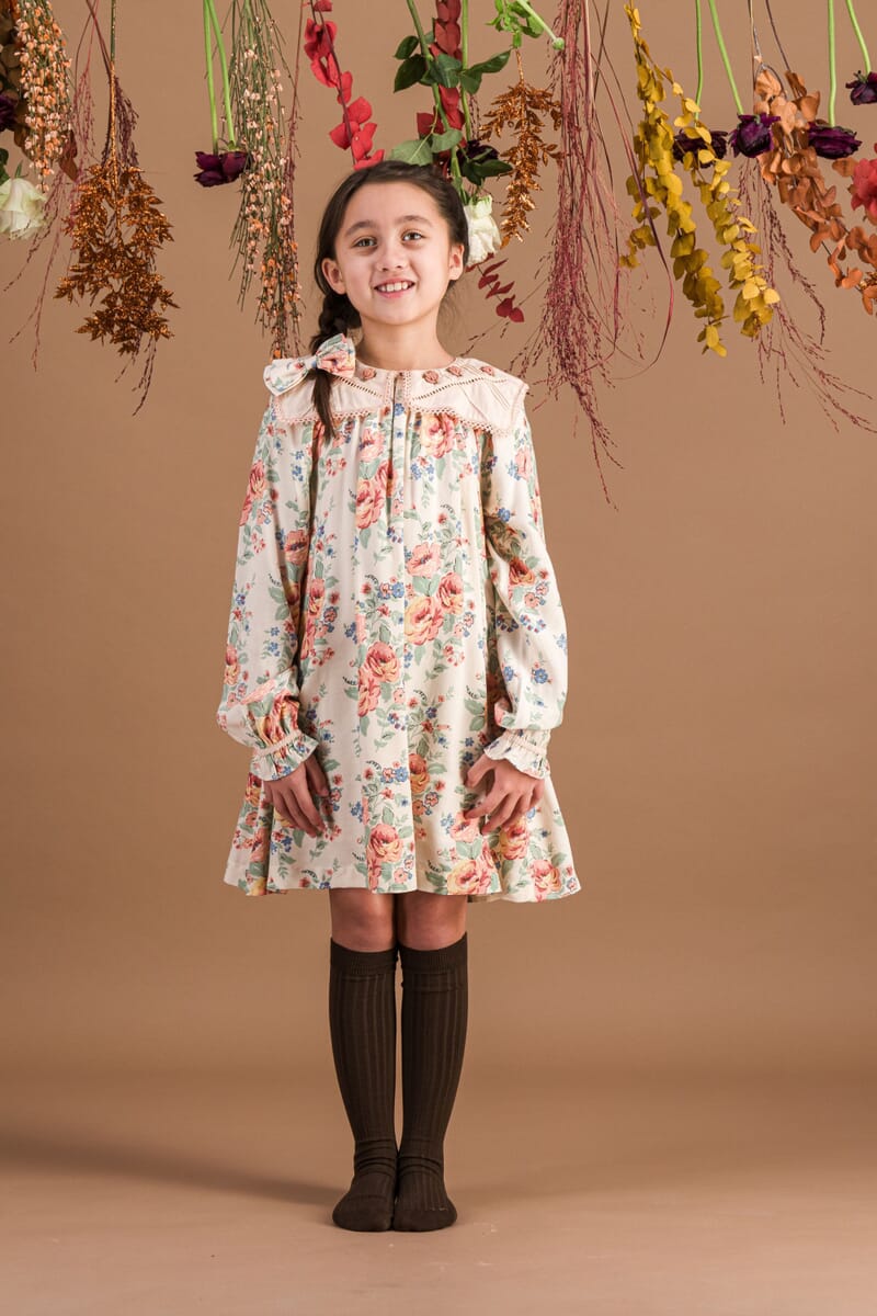 Une Robe en Viscose ECOVERO® avec un col brodé main finition dentelle.