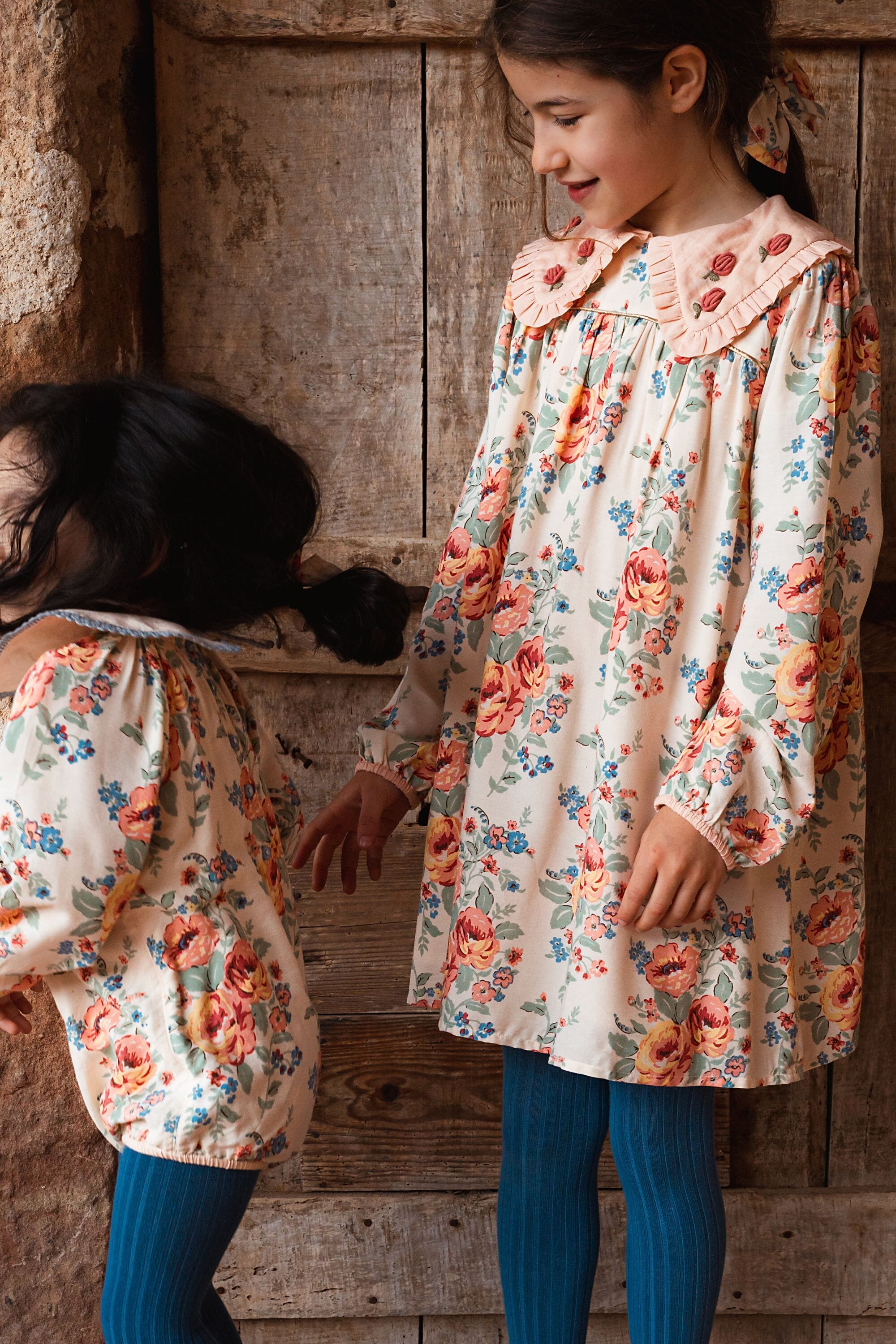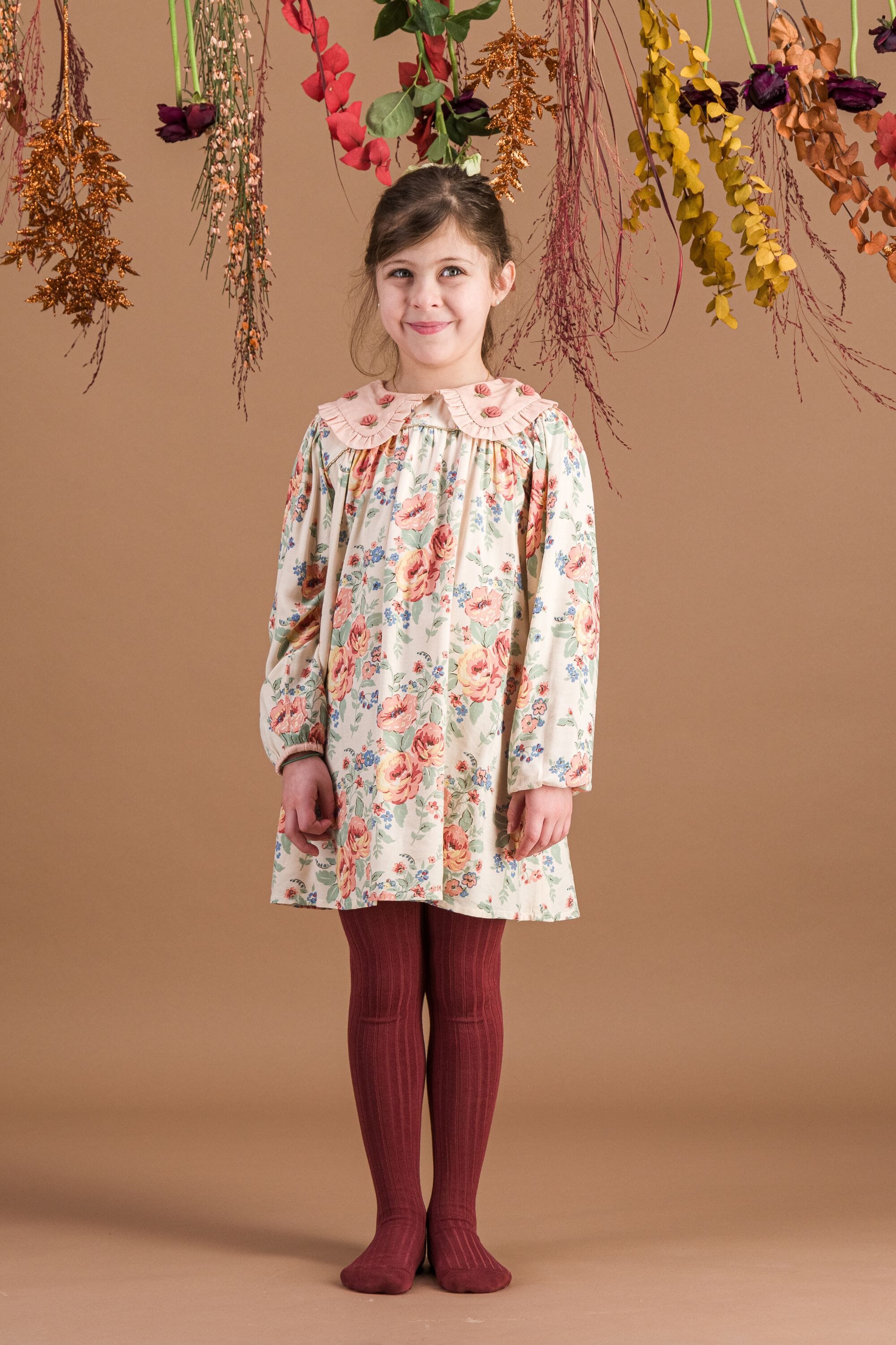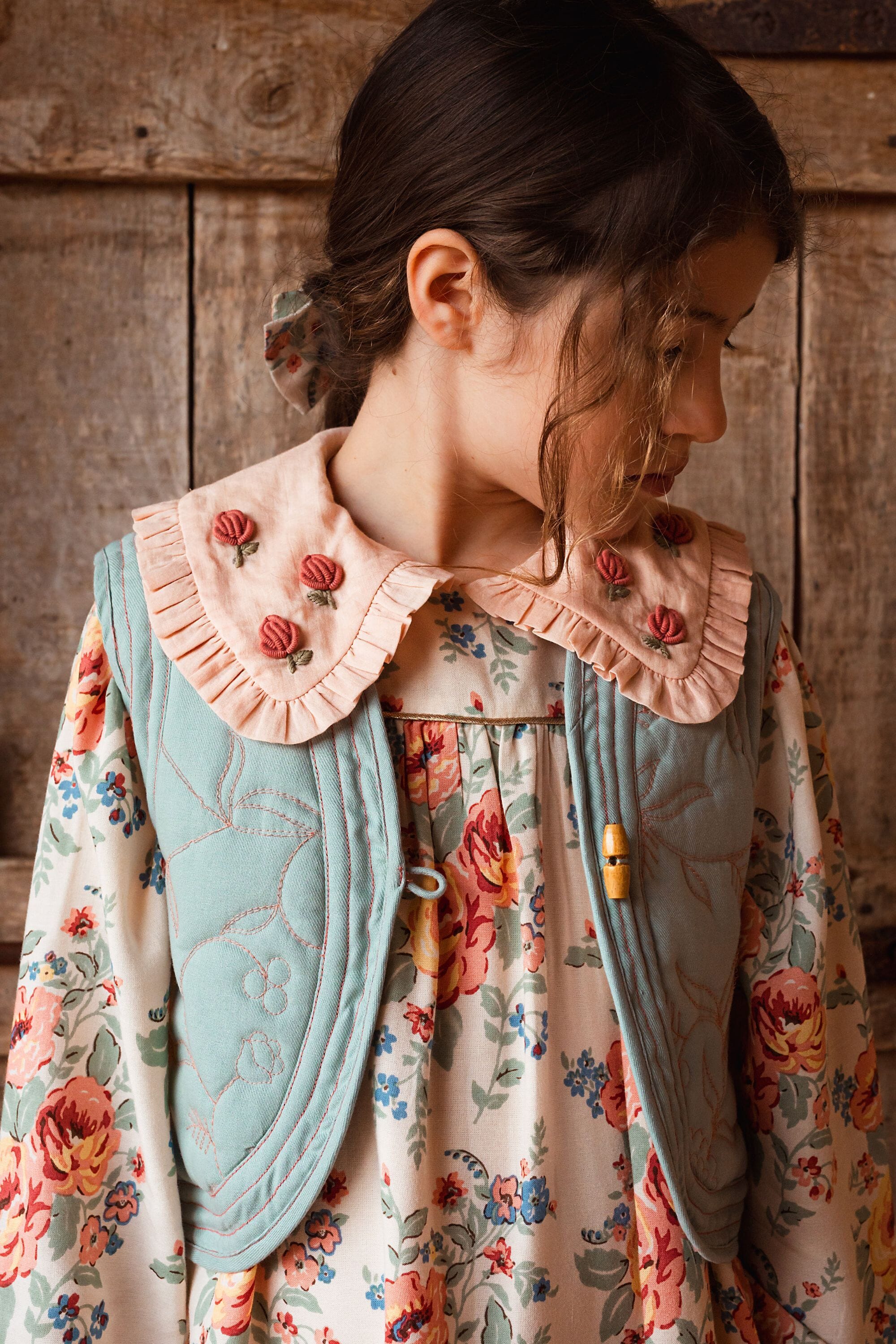 Cette robe est entièrement doublée d’un voile de coton bio uni.