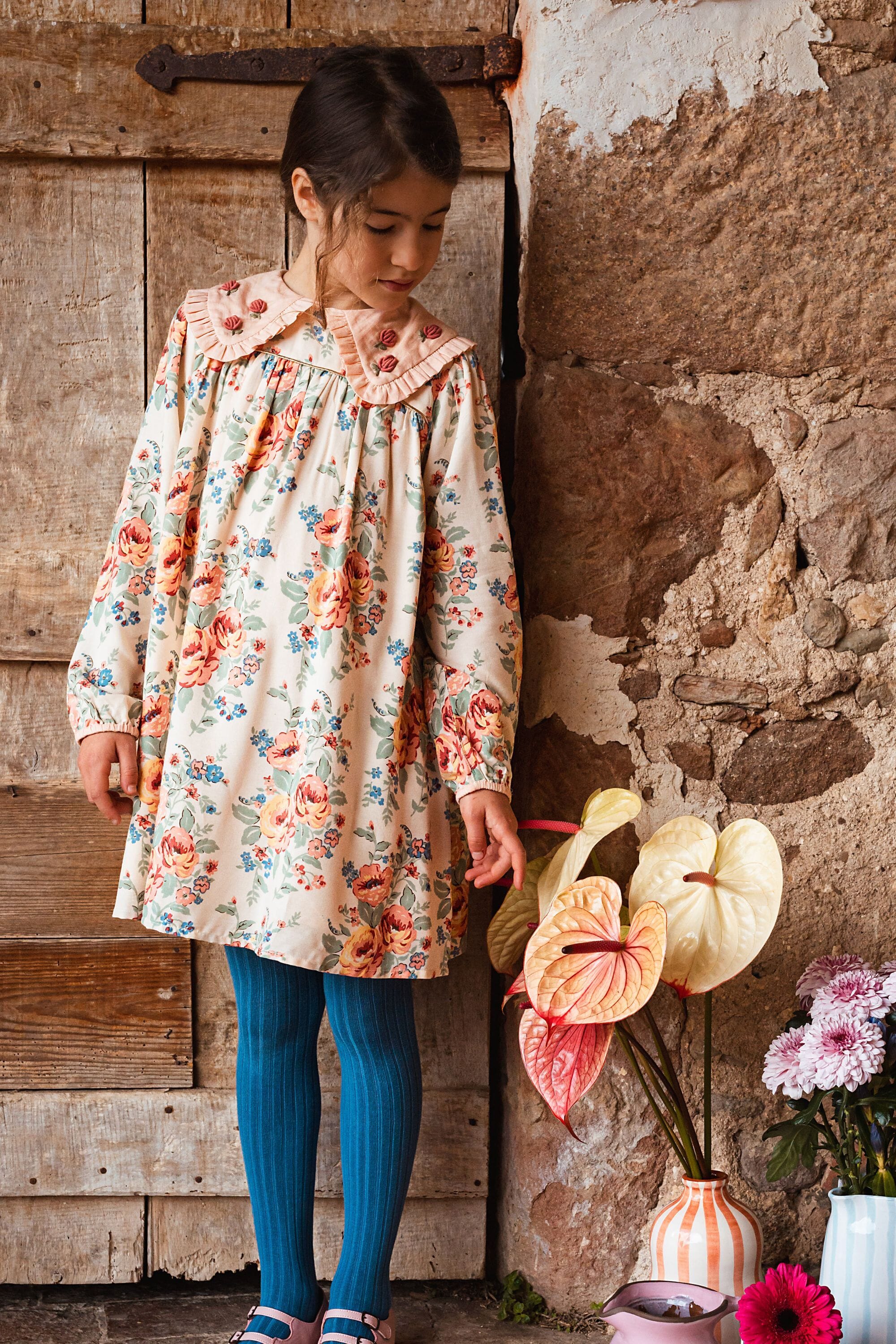 Une Robe en Viscose ECOVERO® avec un col volanté orné de broderies main florales.