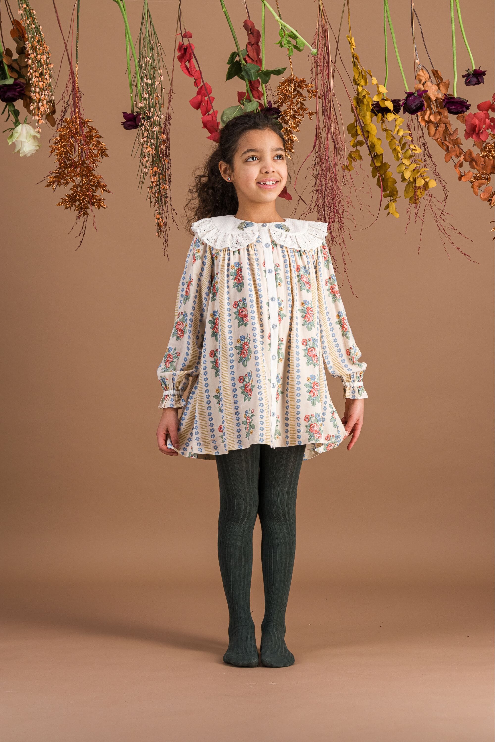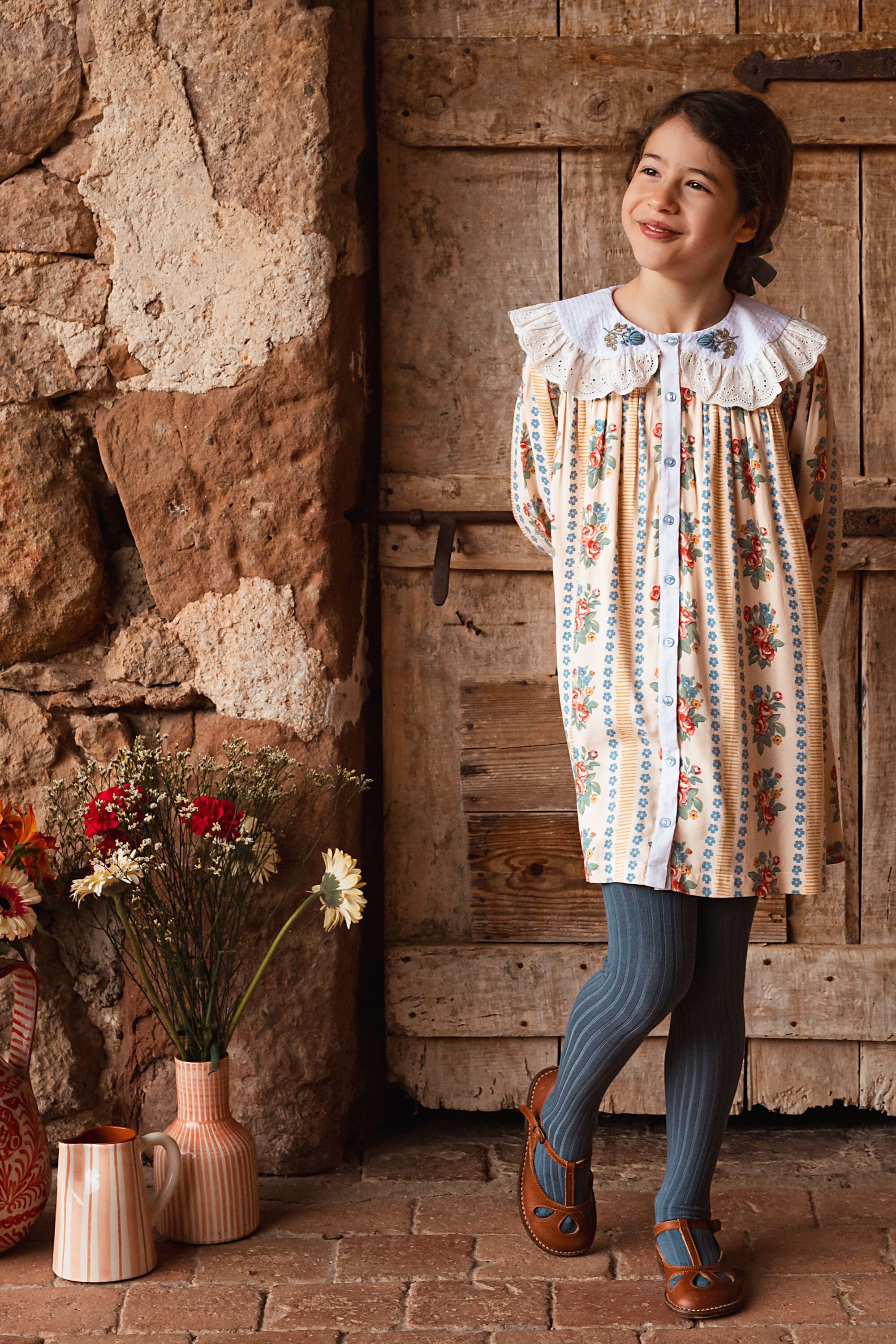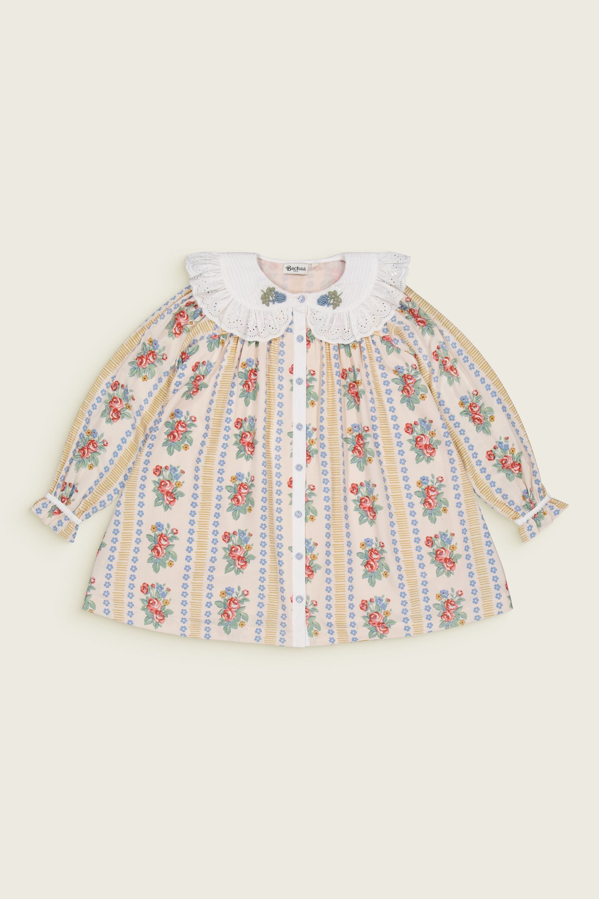 Une robe chemise en Viscose ECOVERO® avec des broderies main florales et des broderies anglaises sur le col.